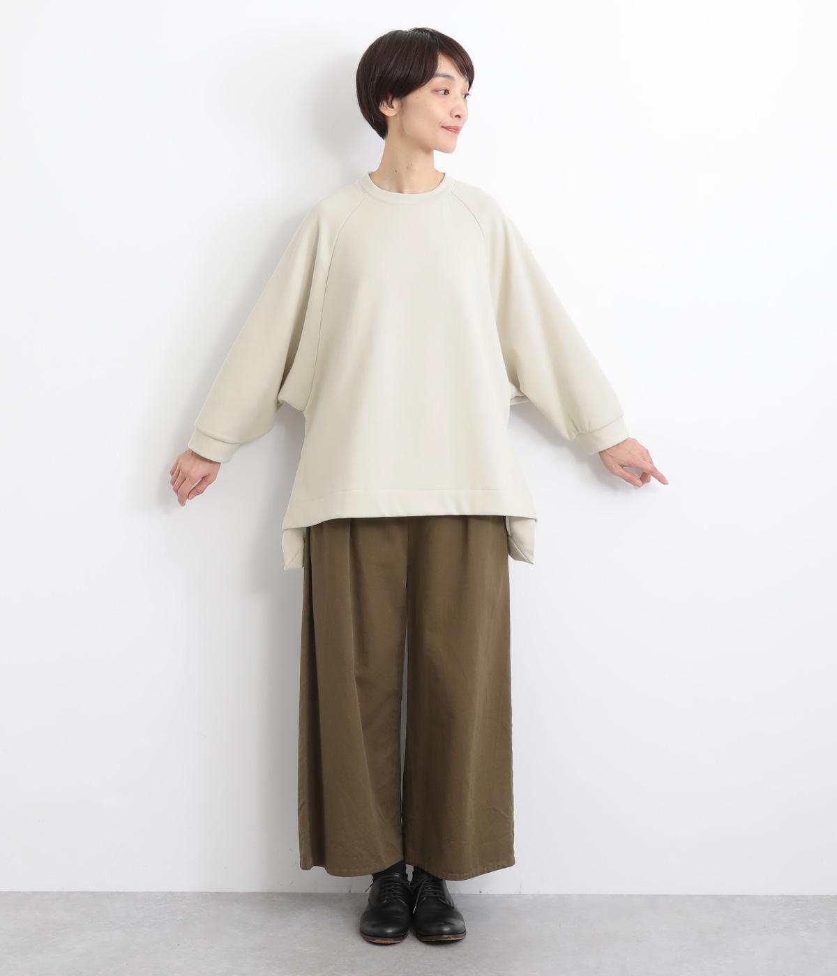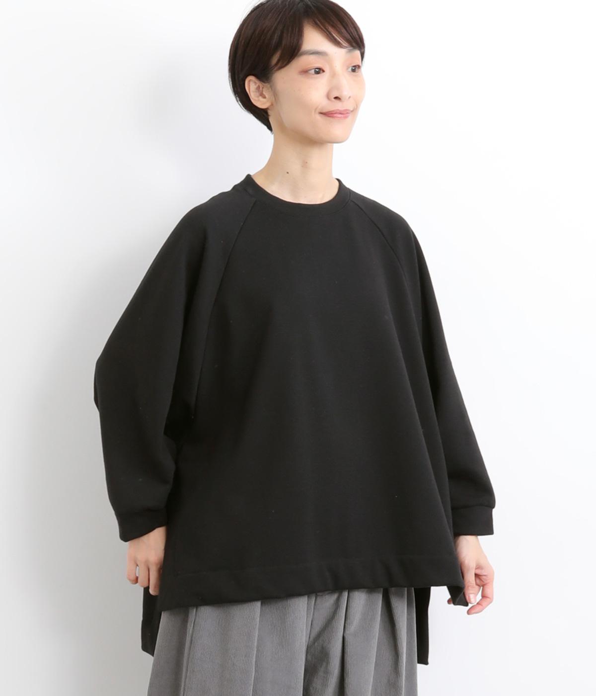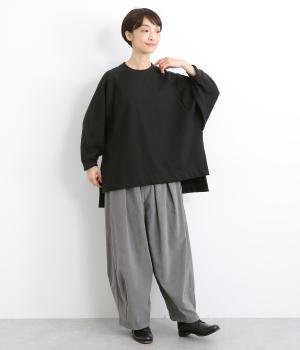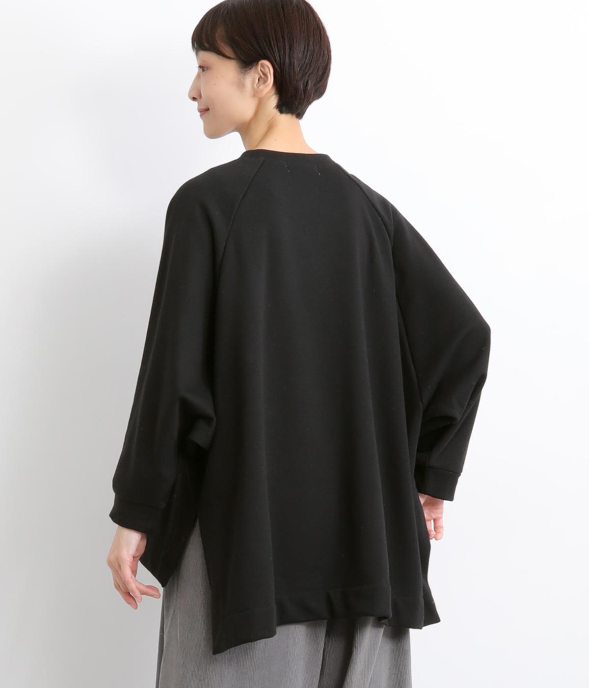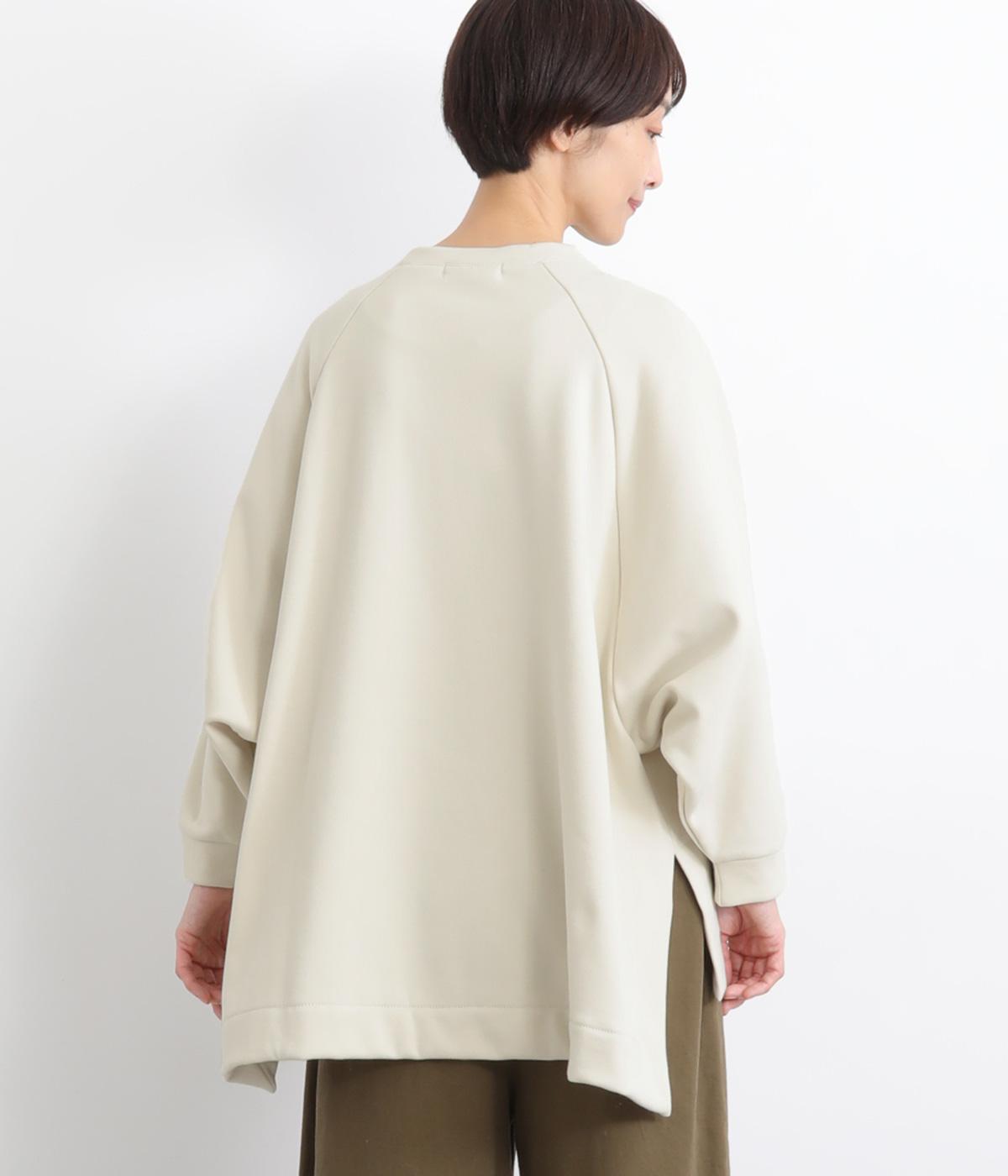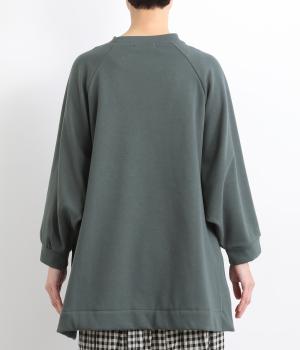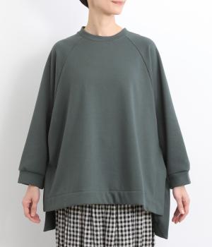 大胆に前後差をつけたスクエアのヘムラインが特徴的な一枚。ゆったりとしたラグランのドルマン袖にオーバーサイズでリラックス感のある仕上がりです。スリットが入っているのでボトム合わせもすっきり決まります。