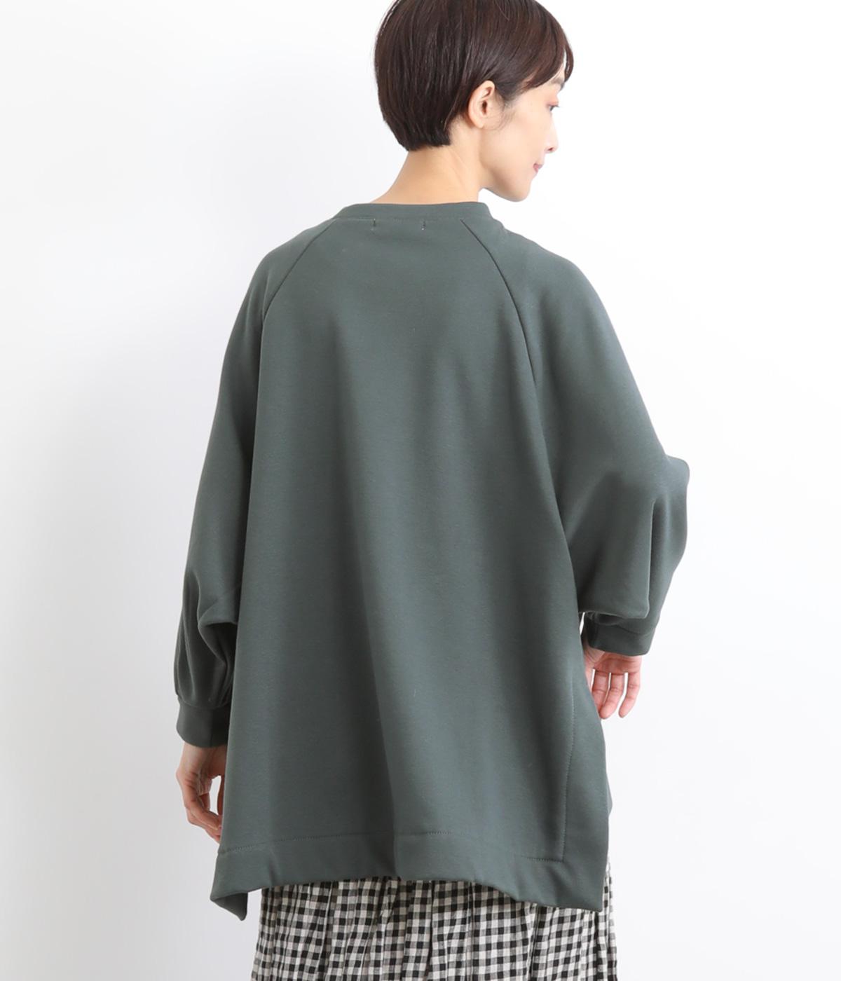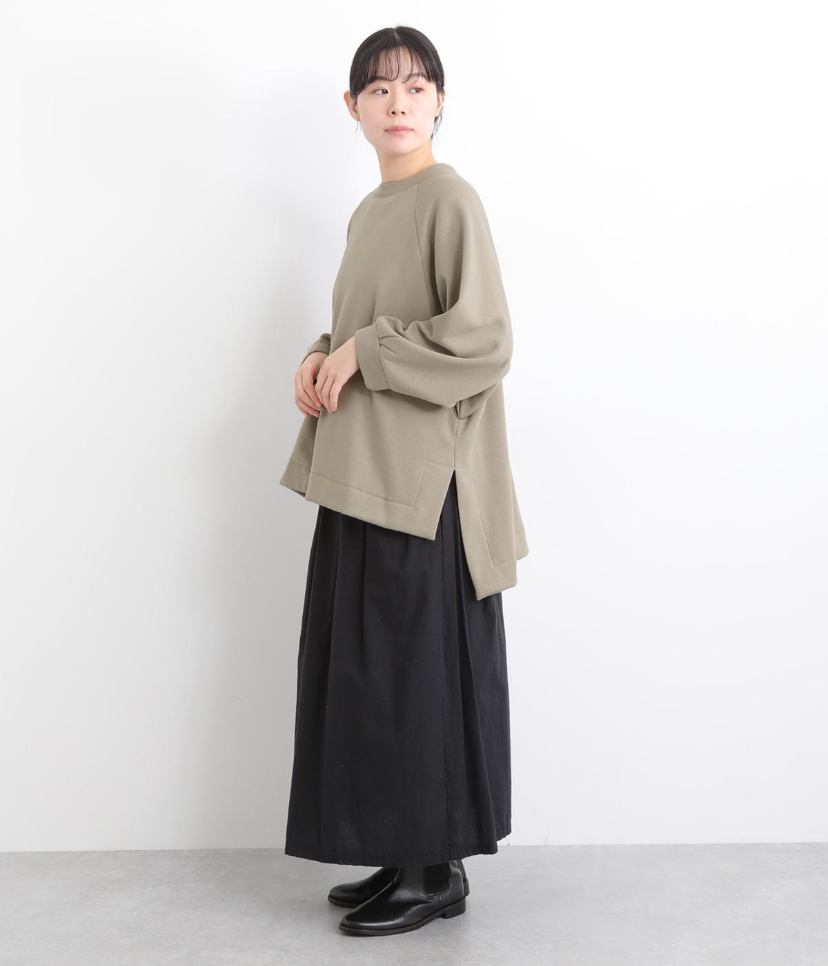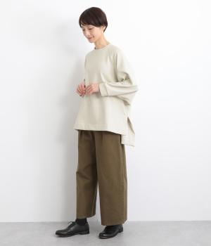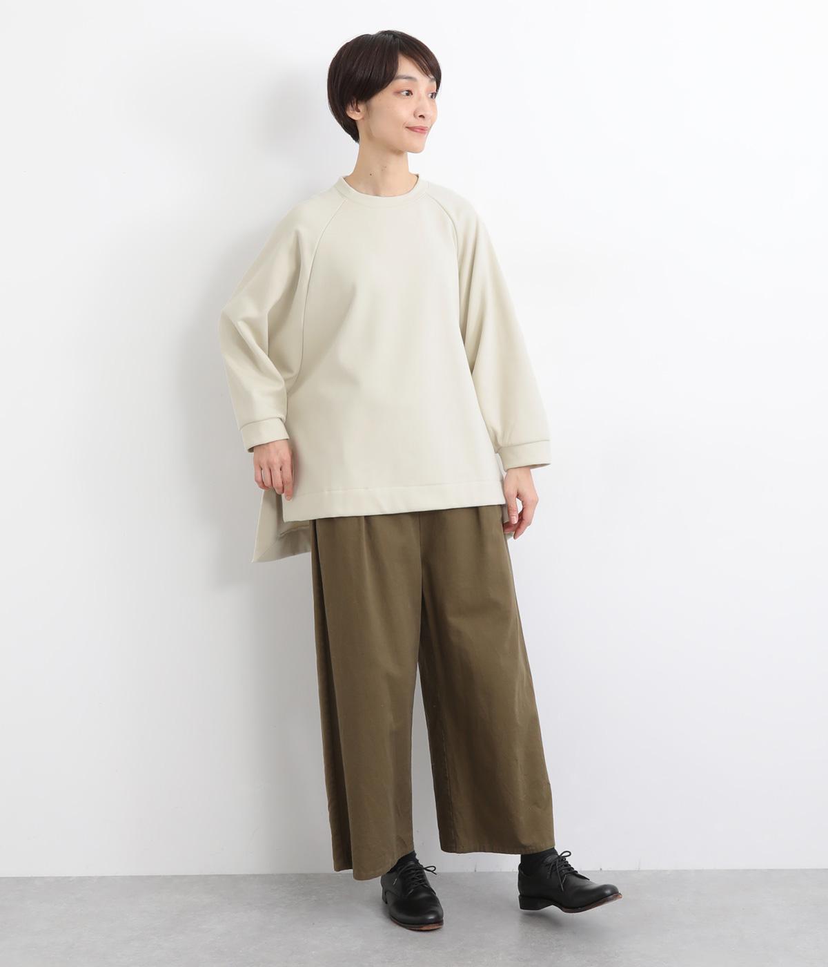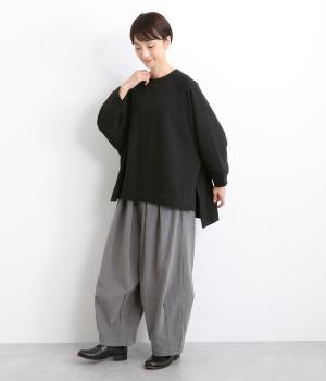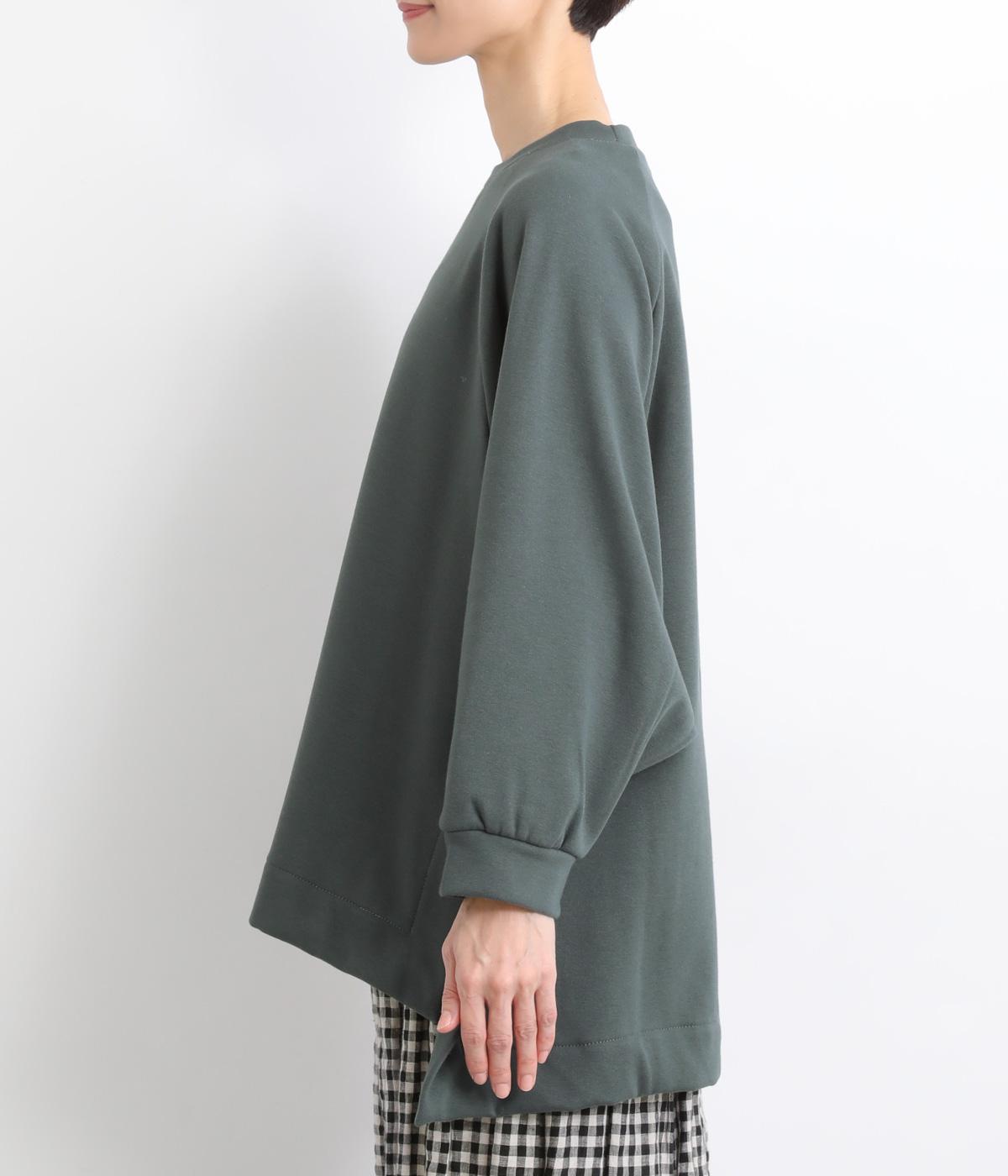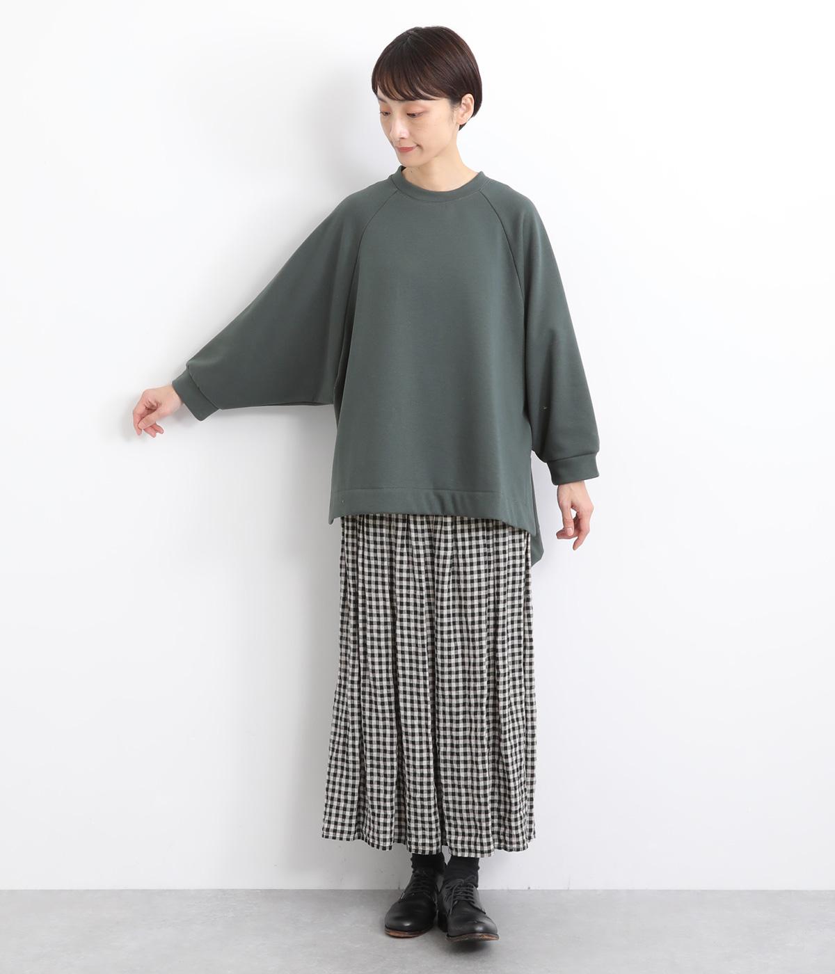 大胆に前後差をつけたスクエアのヘムラインが特徴的な一枚。ゆったりとしたラグランのドルマン袖にオーバーサイズでリラックス感のある仕上がりです。スリットが入っているのでボトム合わせもすっきり決まります。