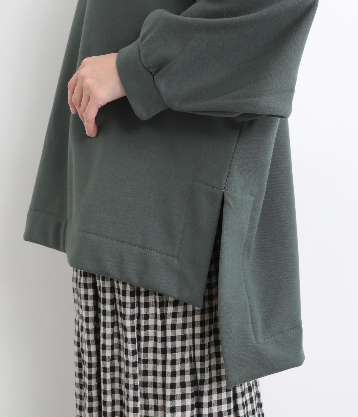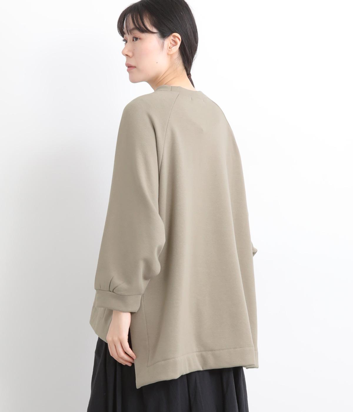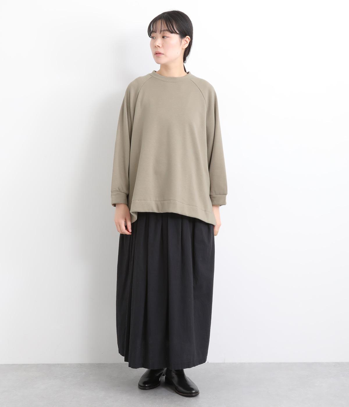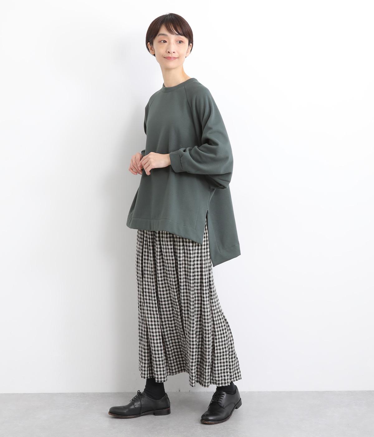大胆に前後差をつけたスクエアのヘムラインが特徴的な一枚。ゆったりとしたラグランのドルマン袖にオーバーサイズでリラックス感のある仕上がりです。スリットが入っているのでボトム合わせもすっきり決まります。