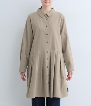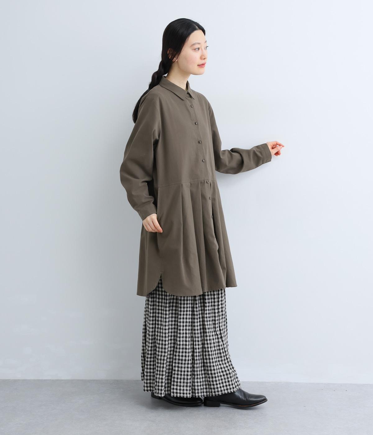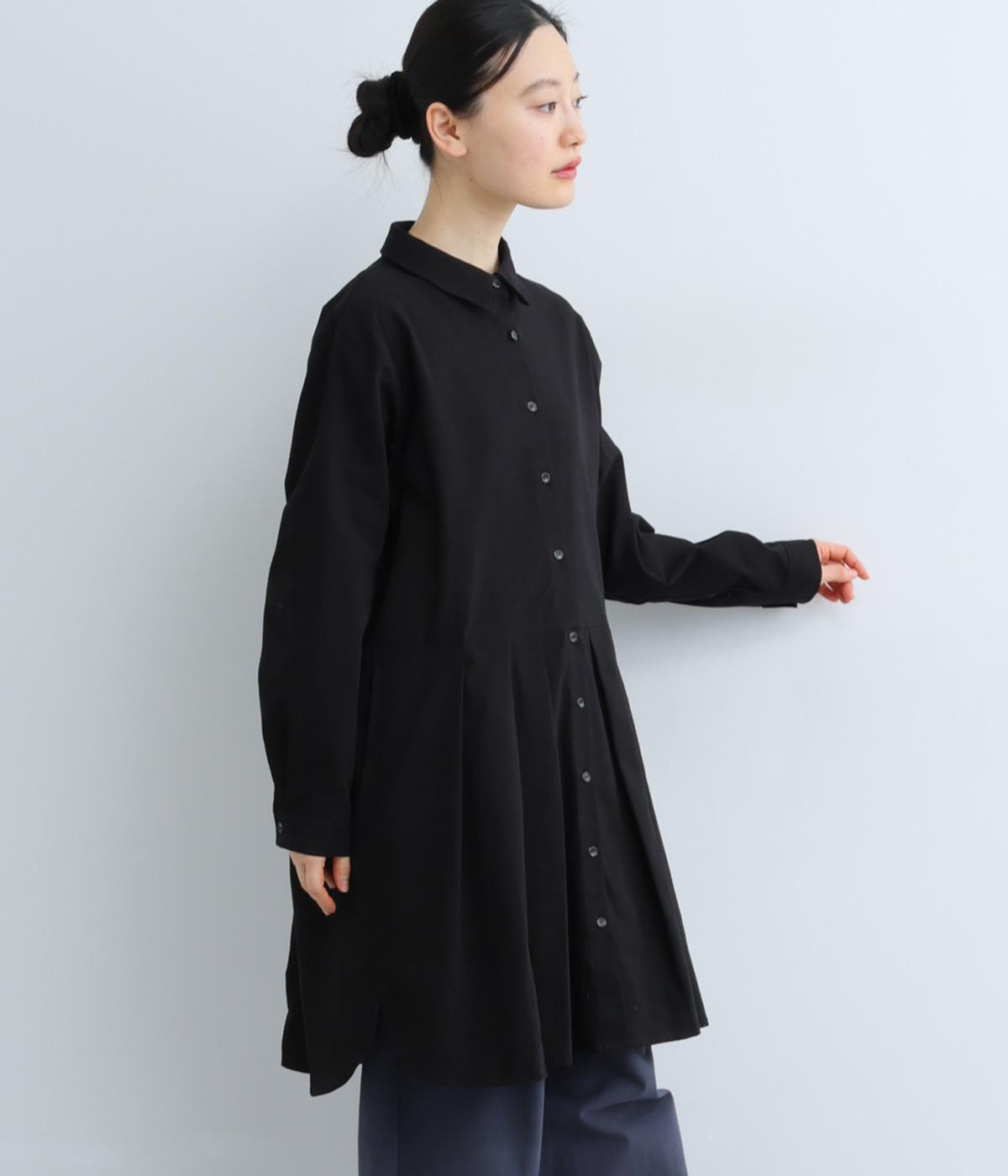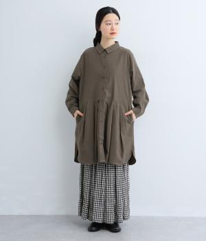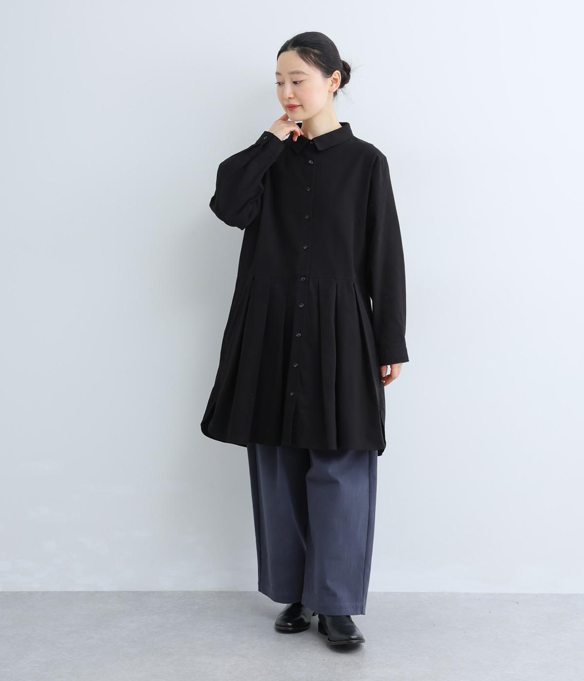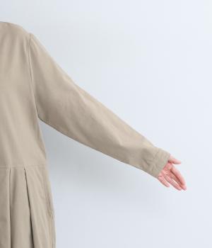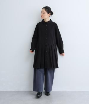 ウエストからほどこしたプリーツが体型をカバーしつつ華やかさを演出。ボリュームをおさえたほどよい落ち感ですっきりしたスタイリングを叶えます。袖口のプリーツやラウンドヘムが女性らしいアクセントになっています。