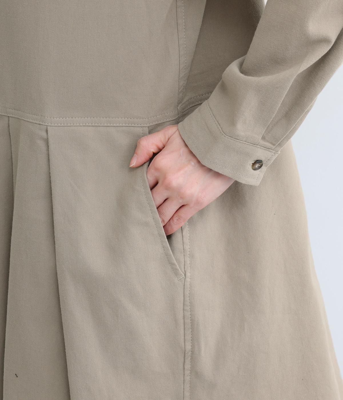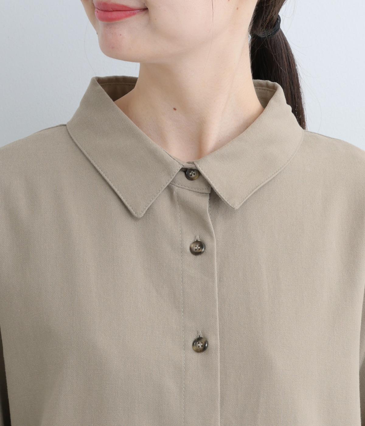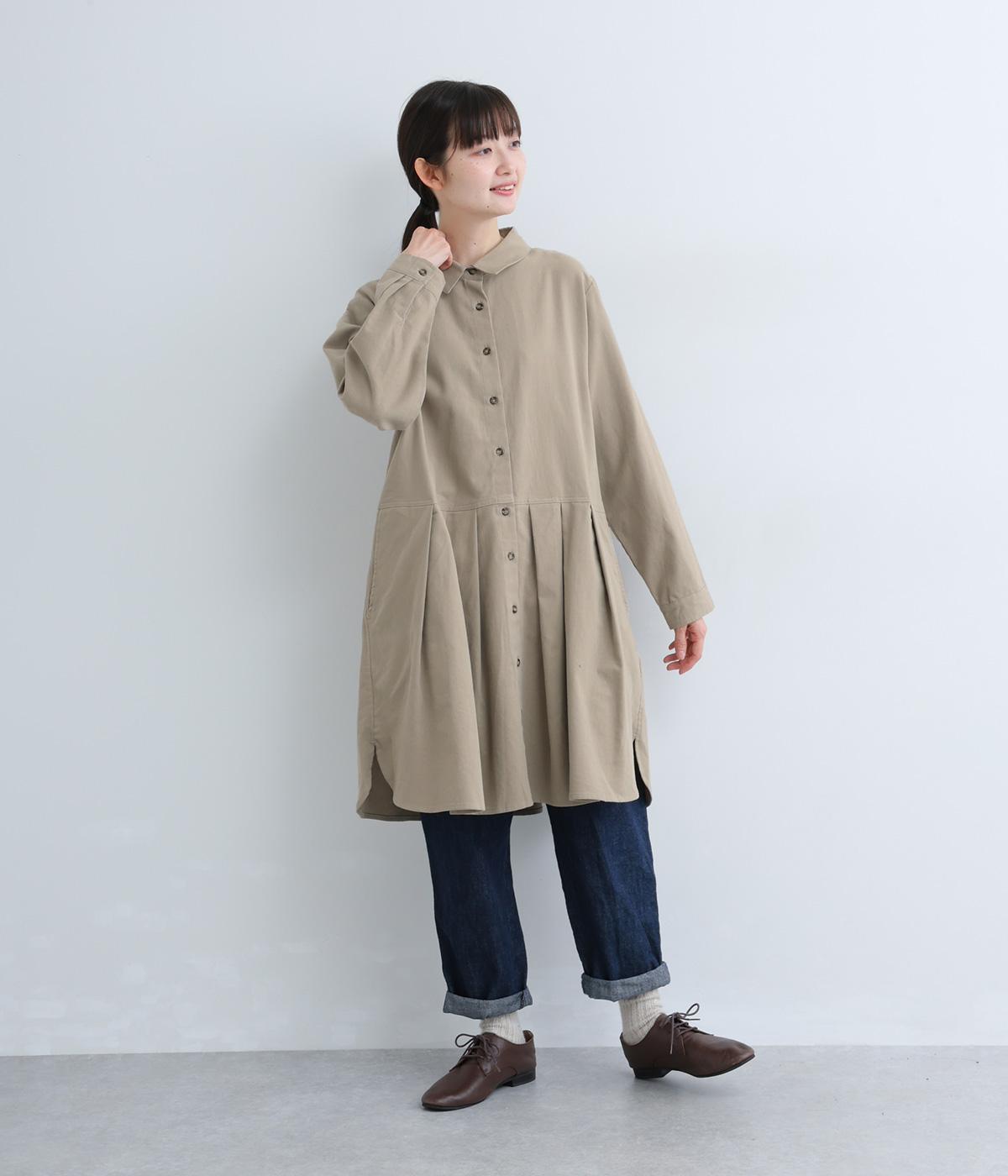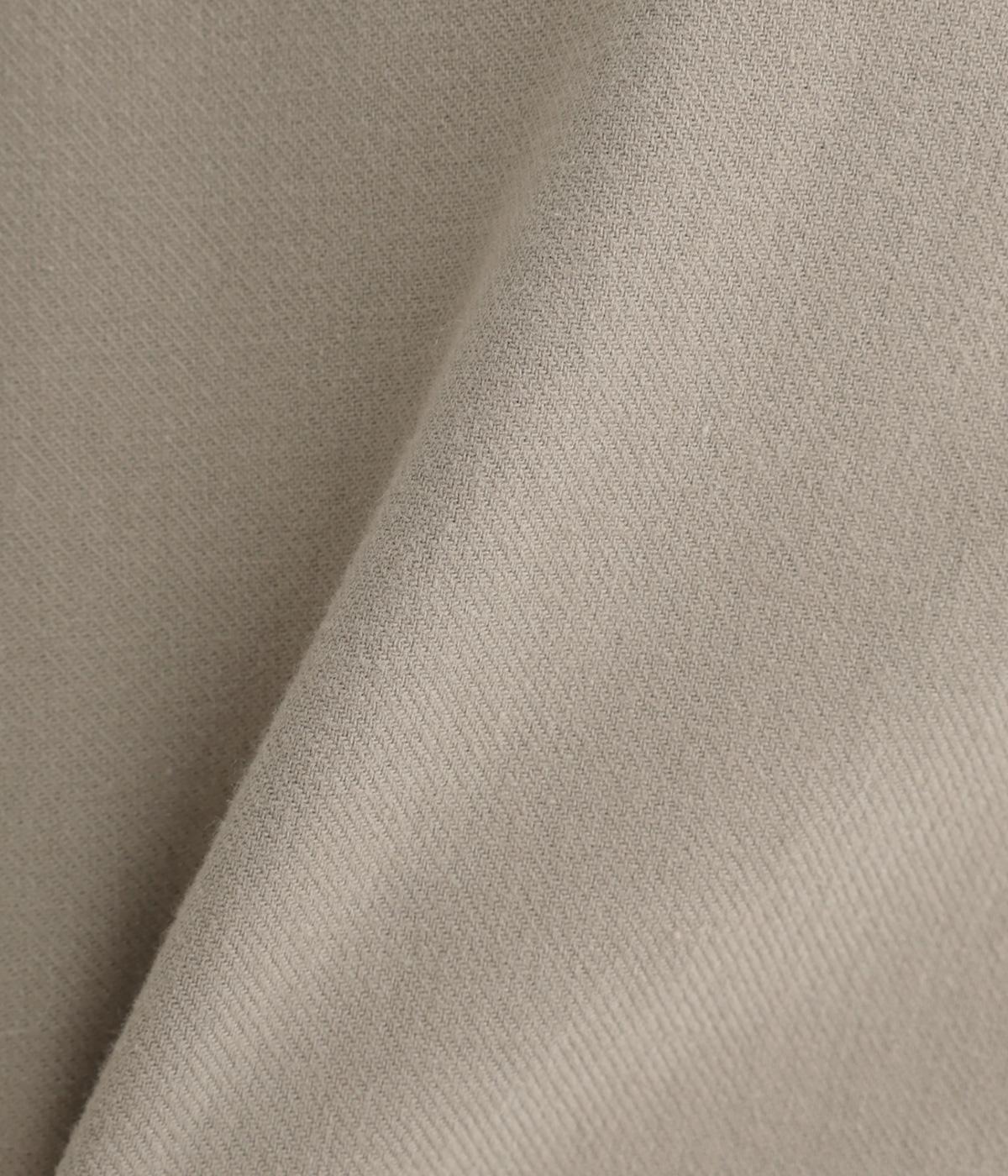 ほどよい厚みでしなやかなハリ感が魅力のコットンツイル生地です。ほのかに起毛した優しい雰囲気で、着るほどに深みを増していく味わいのある素材感です。