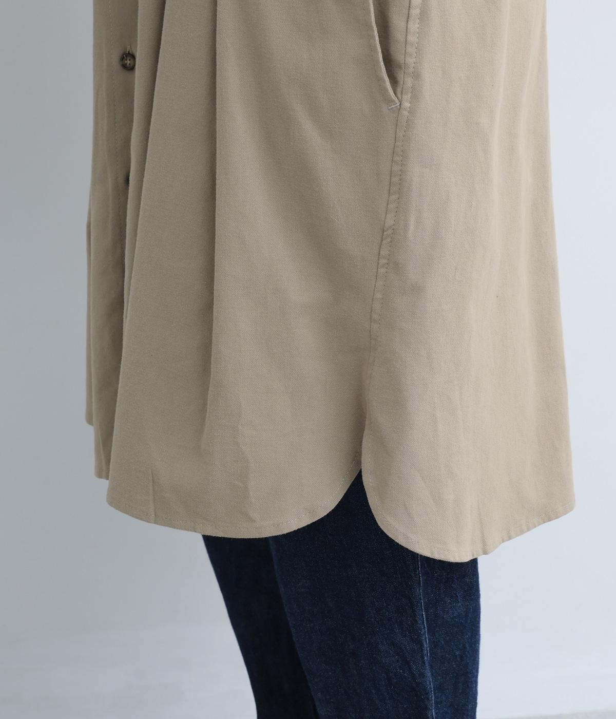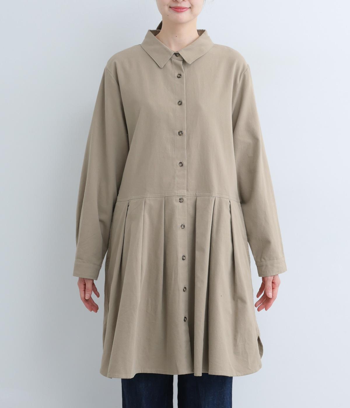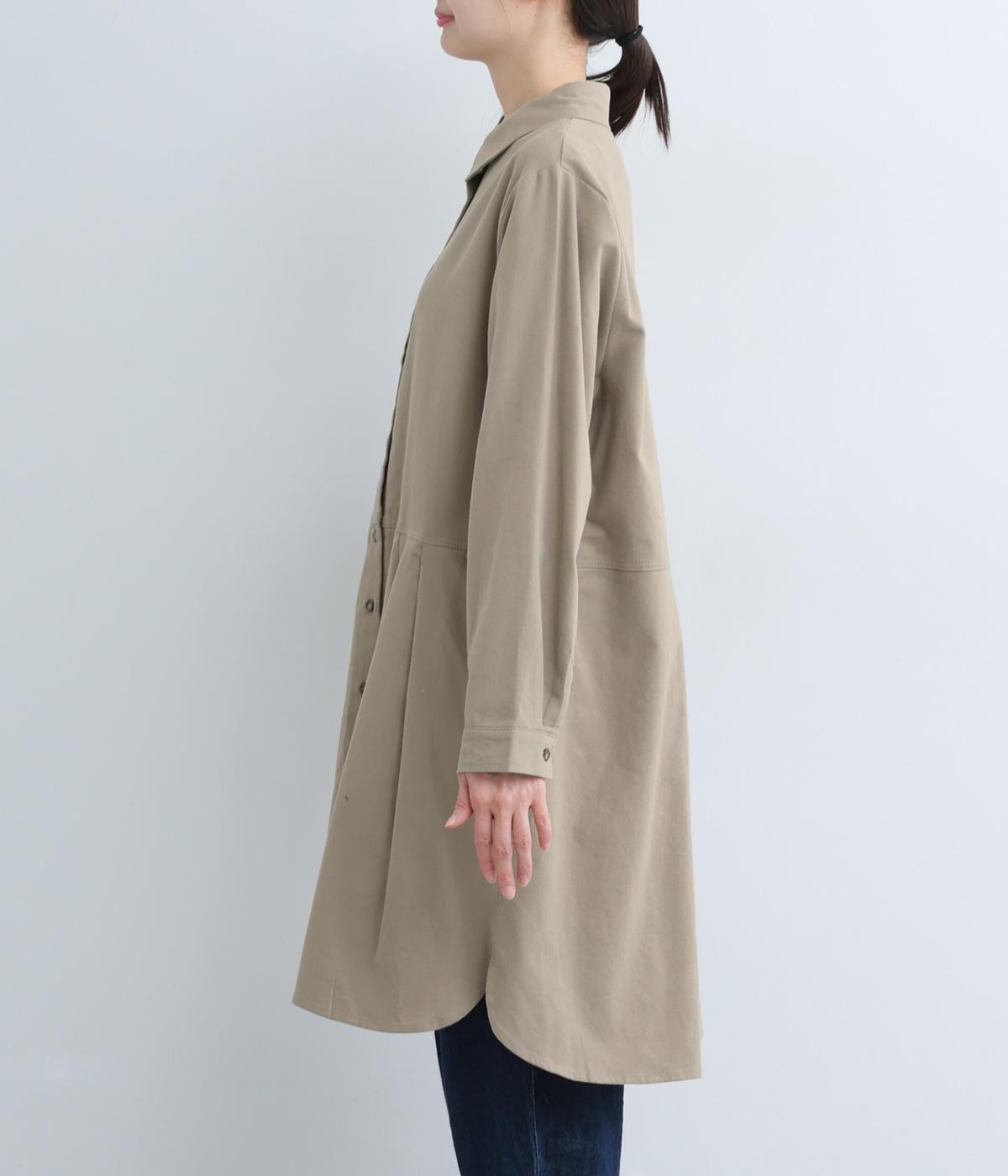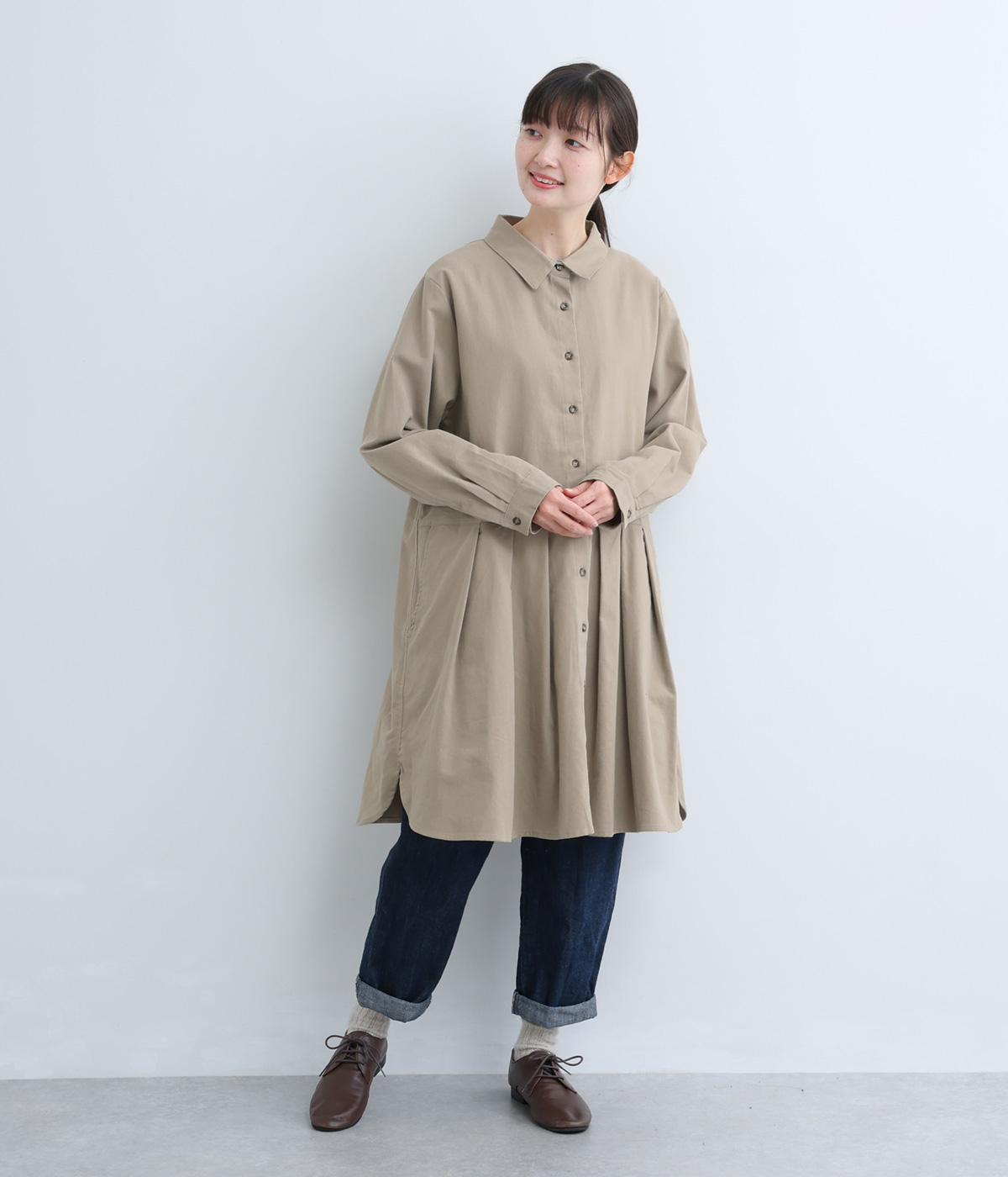 ほどよい厚みでしなやかなハリ感が魅力のコットンツイル生地です。ほのかに起毛した優しい雰囲気で、着るほどに深みを増していく味わいのある素材感です。