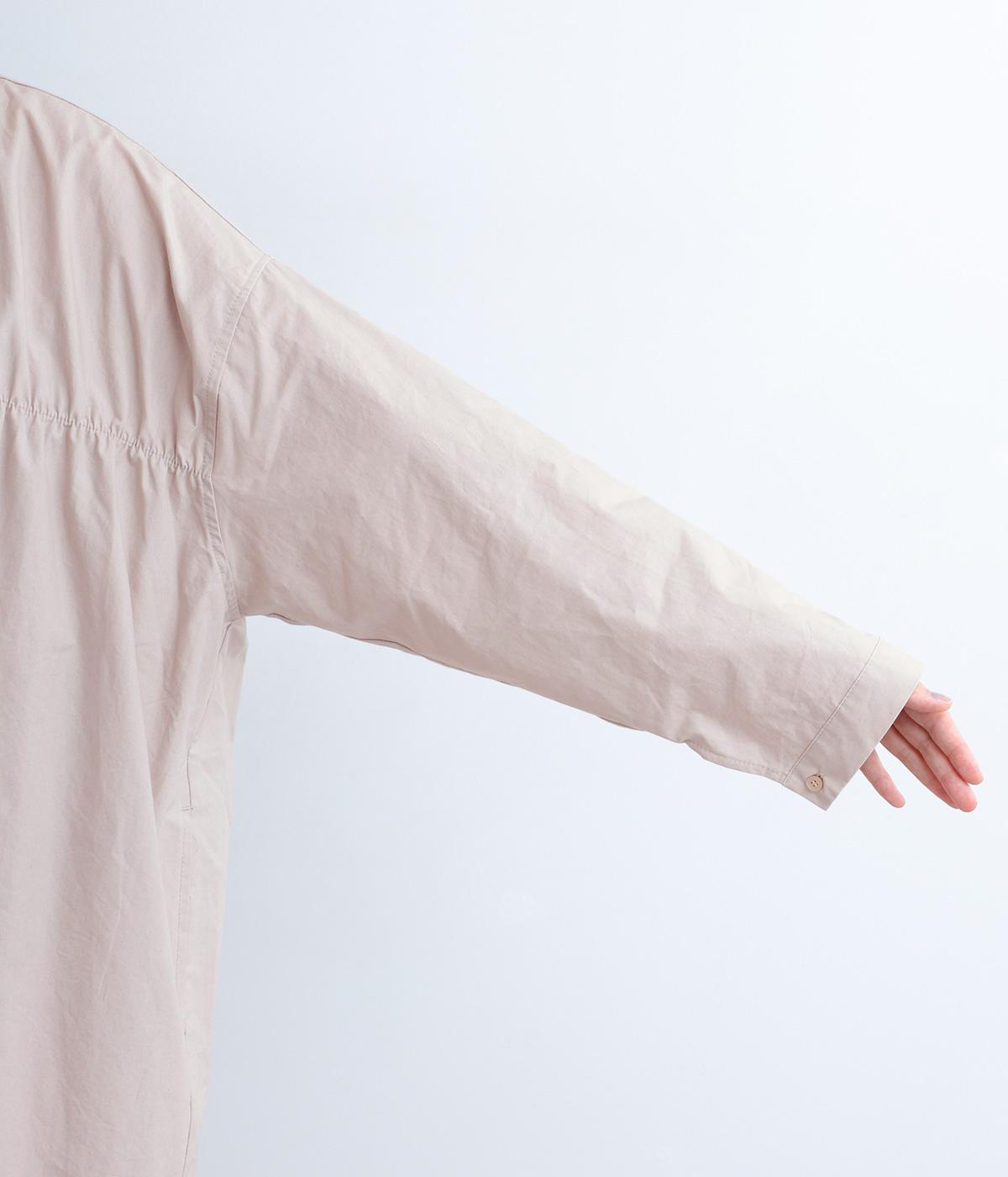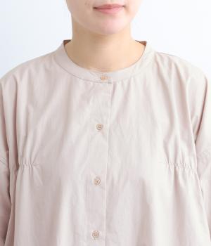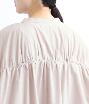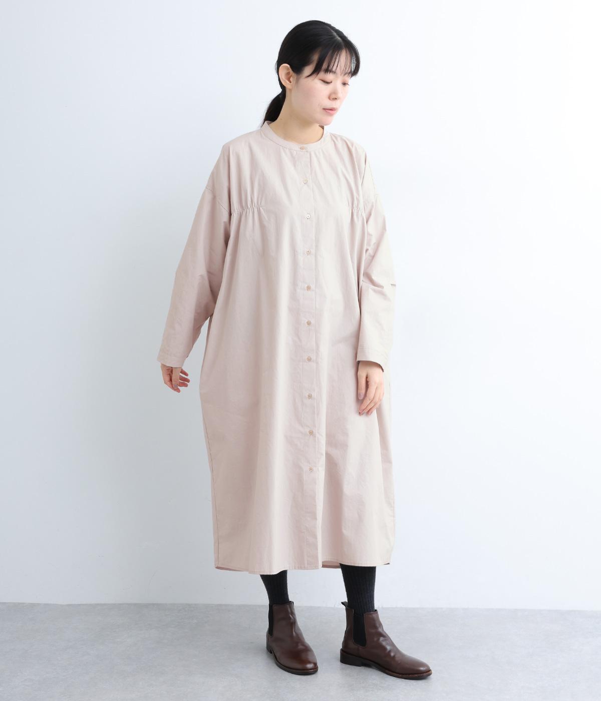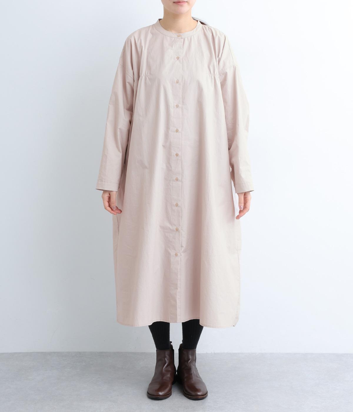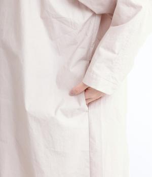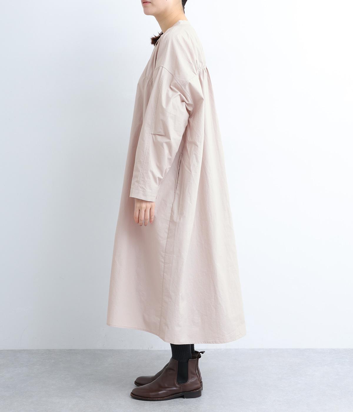 脇や後ろにギャザーを寄せてさり気なくニュアンスをもたせた、ワイドシルエットのワンピースです。ボトムとのレイヤードもたのしめるロング丈で、前をあけた羽織り使いもおすすめ。顔まわりはラウンドネックで品よくまとめました。