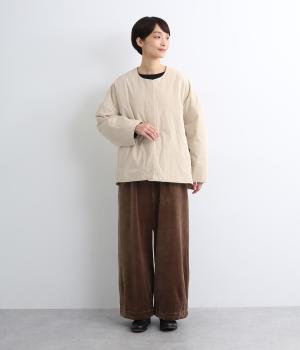 コットンとナイロンのマットな表面感が上品でカジュアル過ぎない印象を与えます。中綿入りであたたかく、軽量仕上げでデイリーに活躍。すべりのいい総裏地つきも◎。