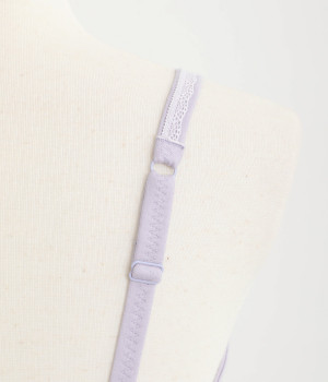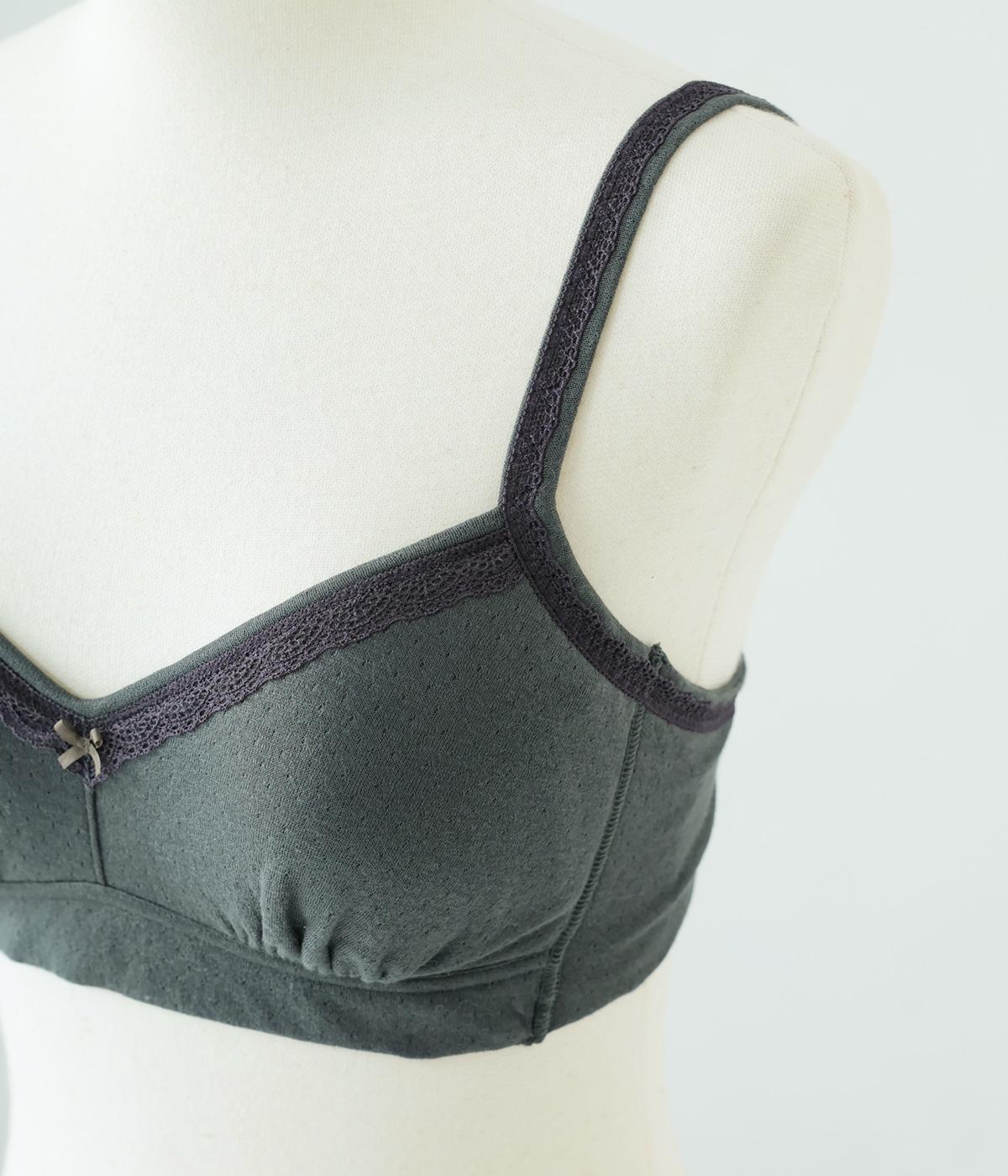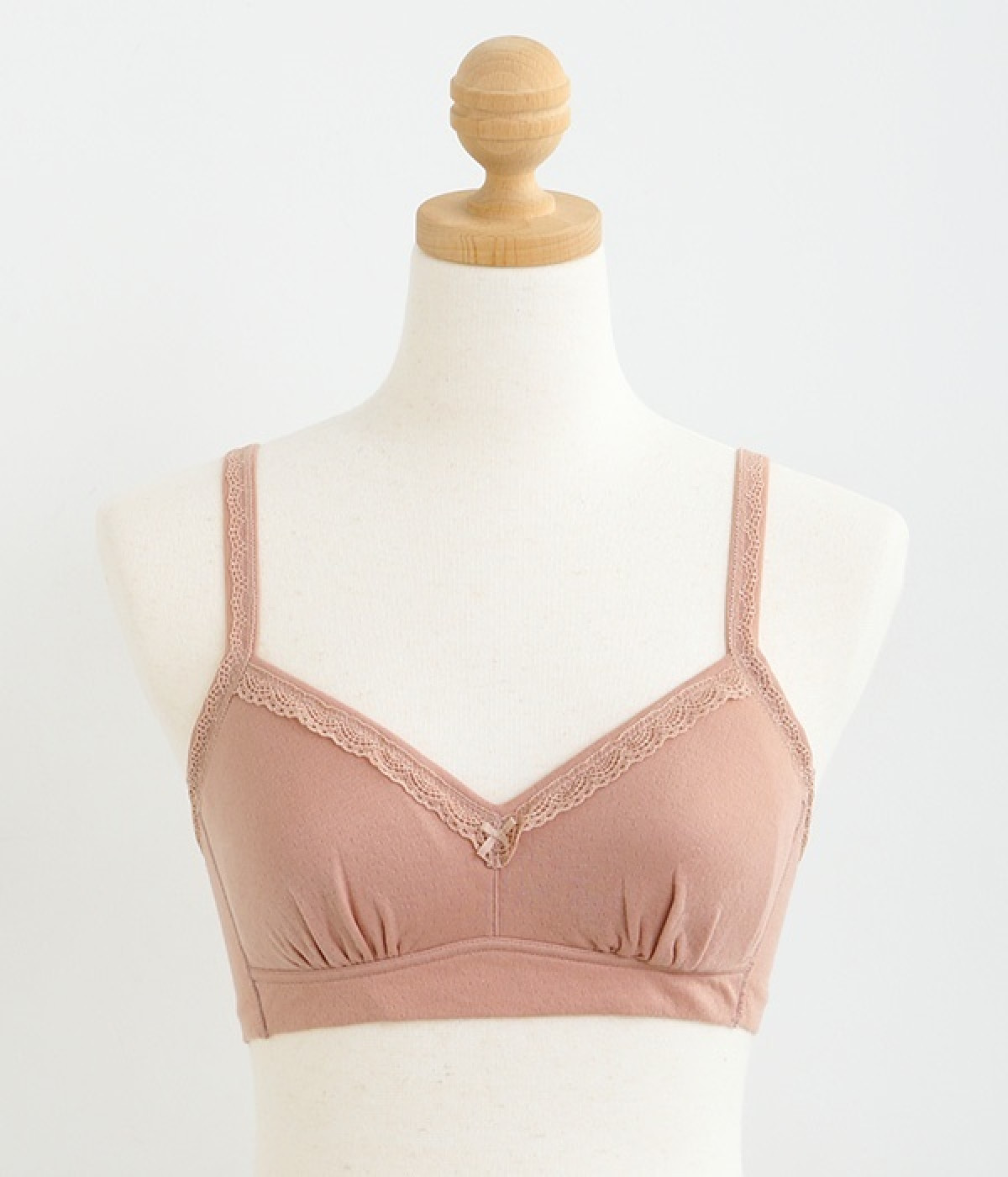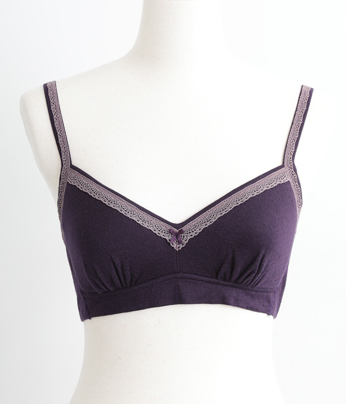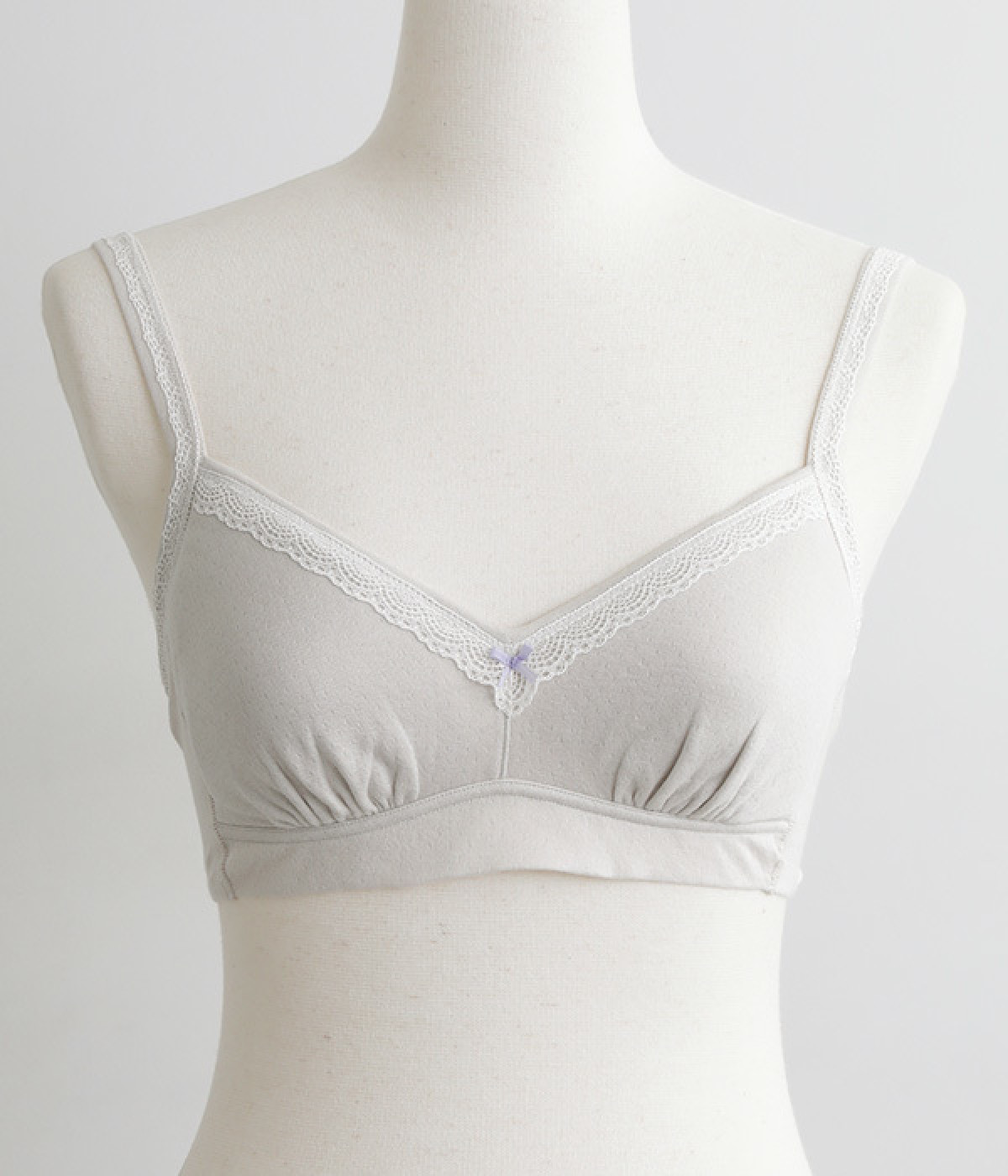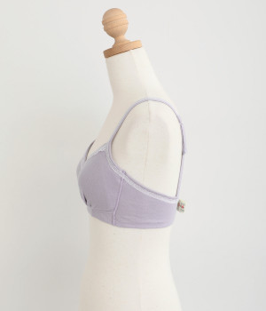つけ心地のよさとおしゃれな見た目を両立させたブラジャー。ほどよくバストをサポートするサイドパネルつきで、ノンワイヤーブラを普段つけない方にもおすすめです。大人の愛らしさを添える控えめなレースとリボンもポイントに。共生地のストラップは調節可能です。