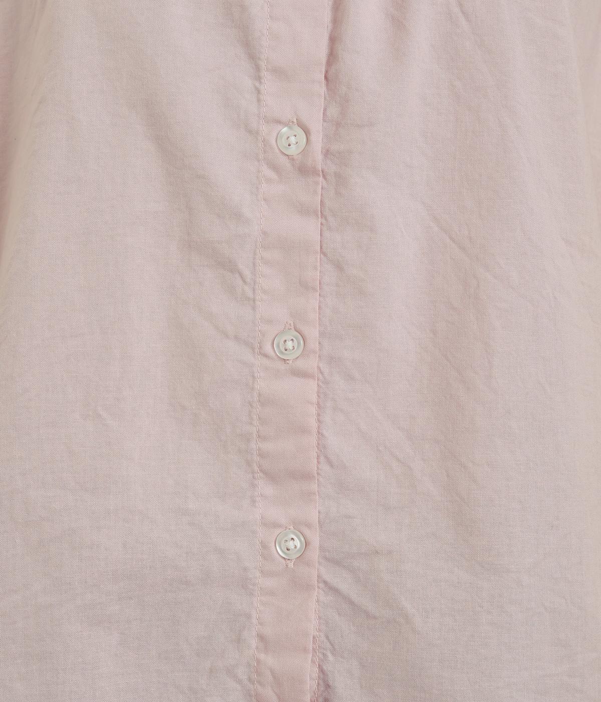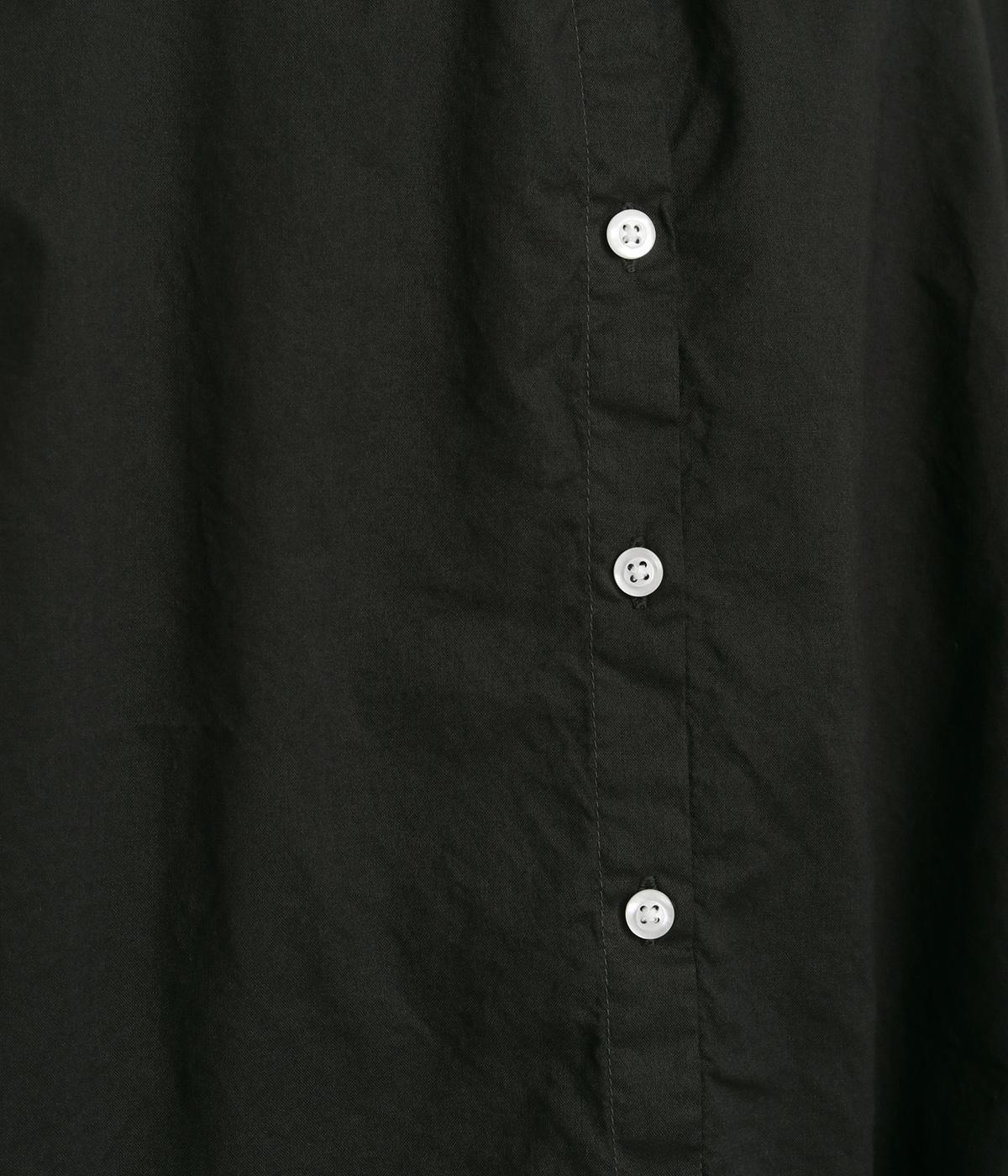 職人の手仕事による製品染めで、コットン平織りの生地にゆたかな風合いをプラスしました。洗い加工でくったりやわらかく、肌あたりもやさしい仕上がり。自然なシワ感が表情をつくり、毎日の装いにそっとなじむ素材感です。