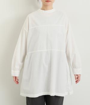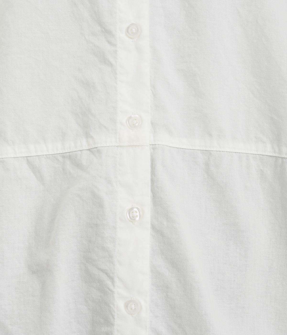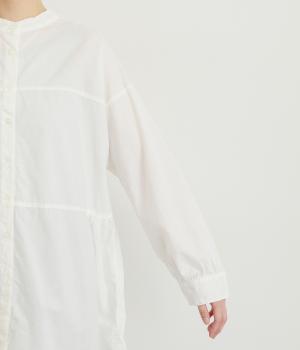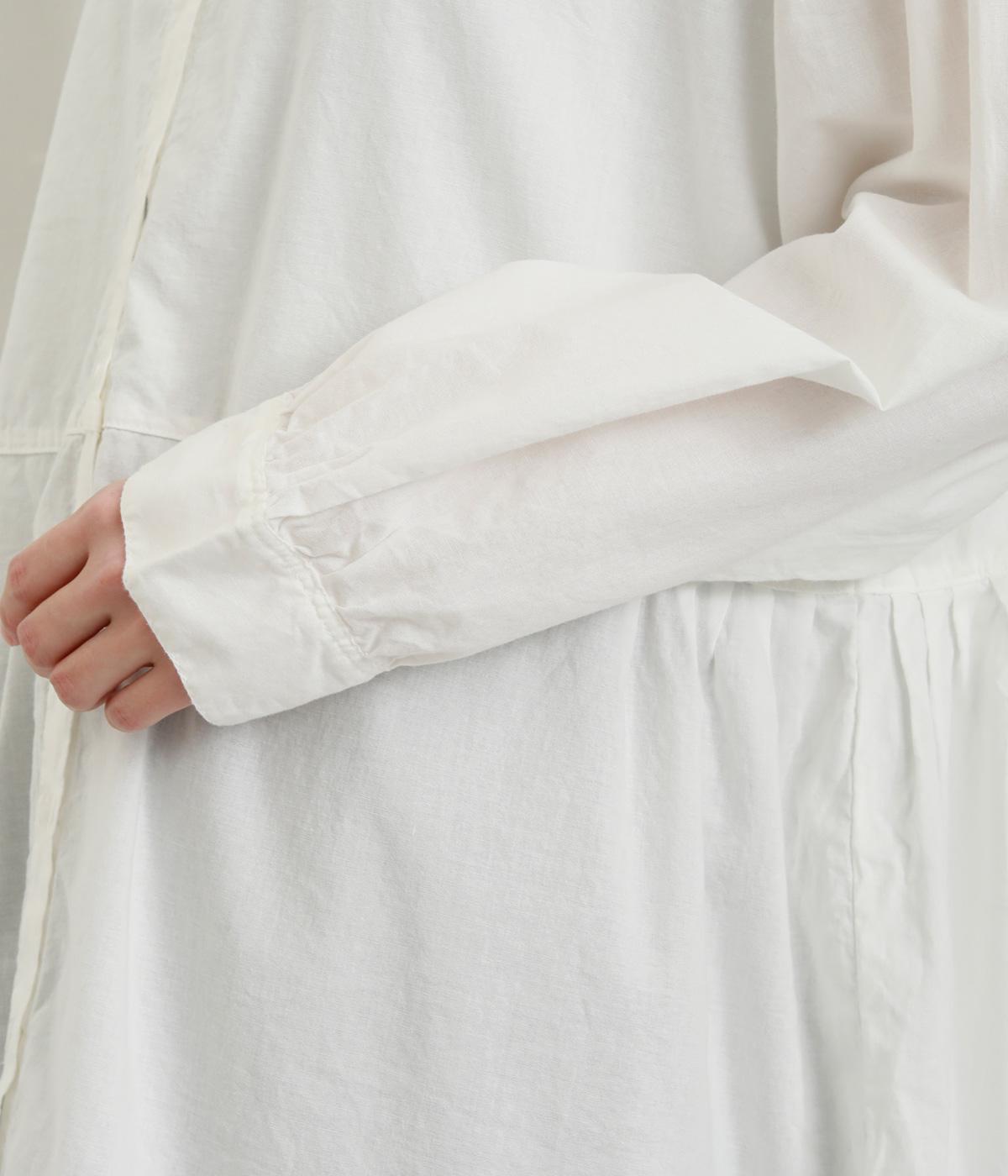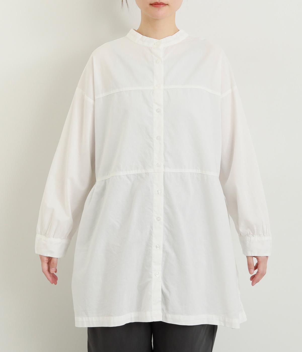 職人の手仕事による製品染めで、コットン平織りの生地にゆたかな風合いをプラスしました。洗い加工でくったりやわらかく、肌あたりもやさしい仕上がり。自然なシワ感が表情をつくり、毎日の装いにそっとなじむ素材感です。