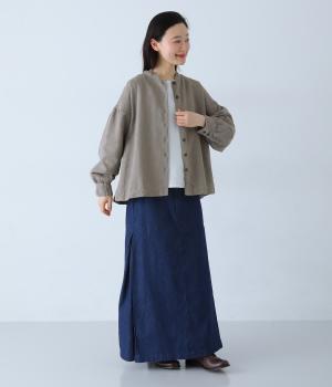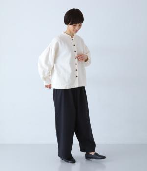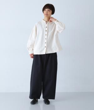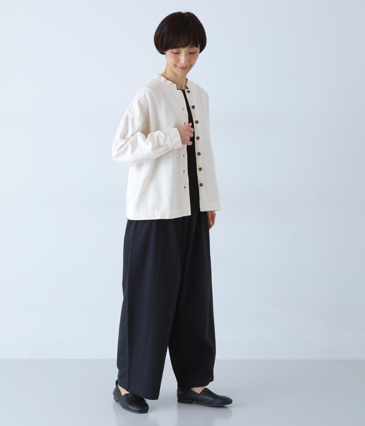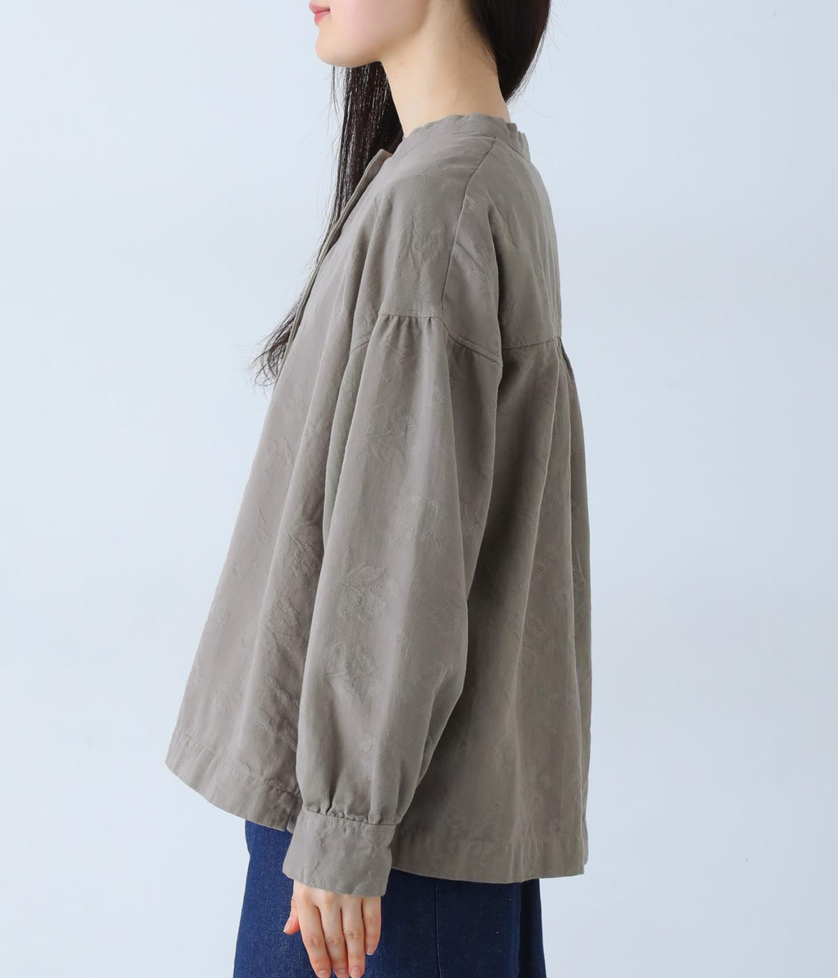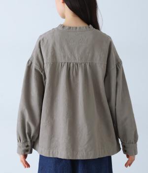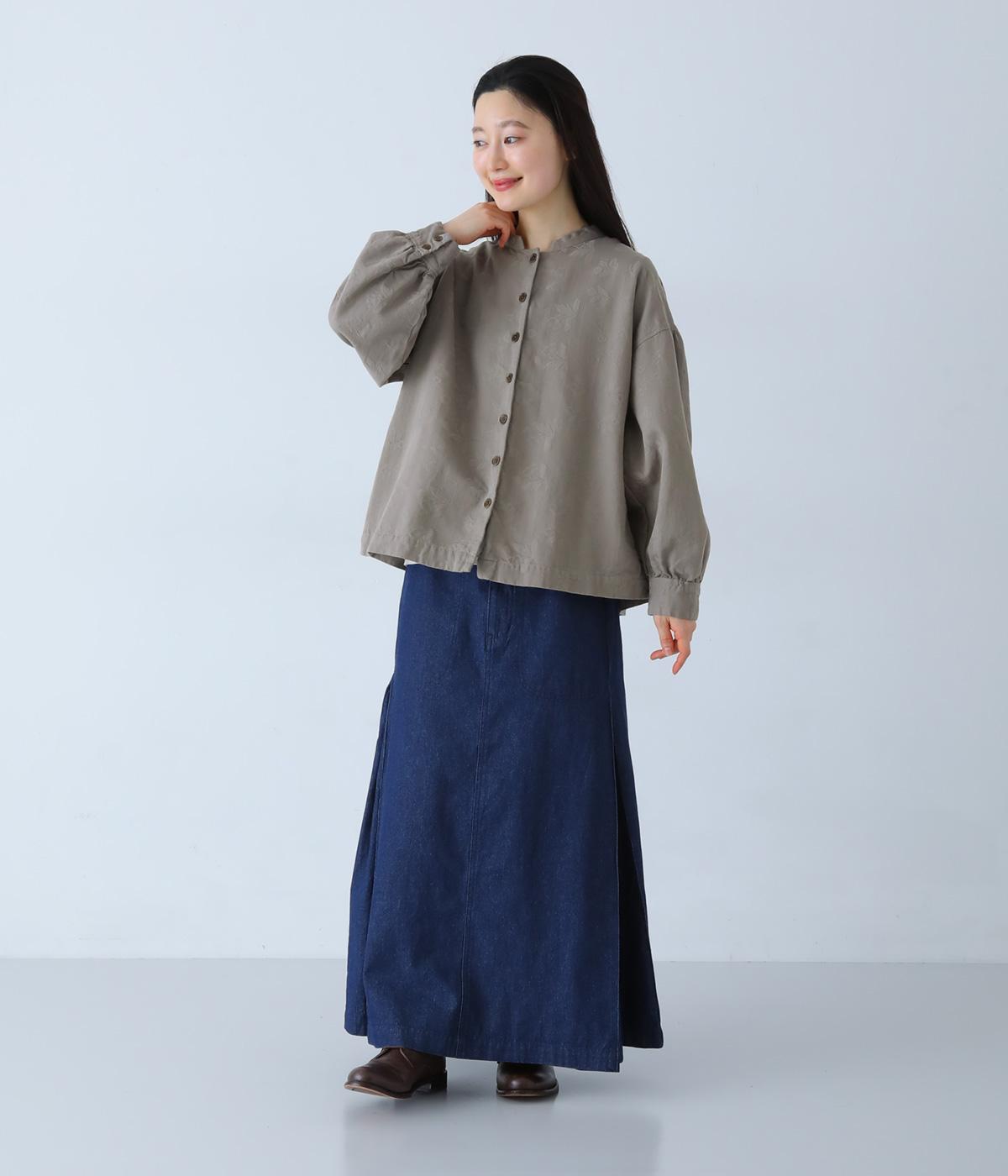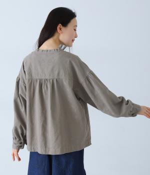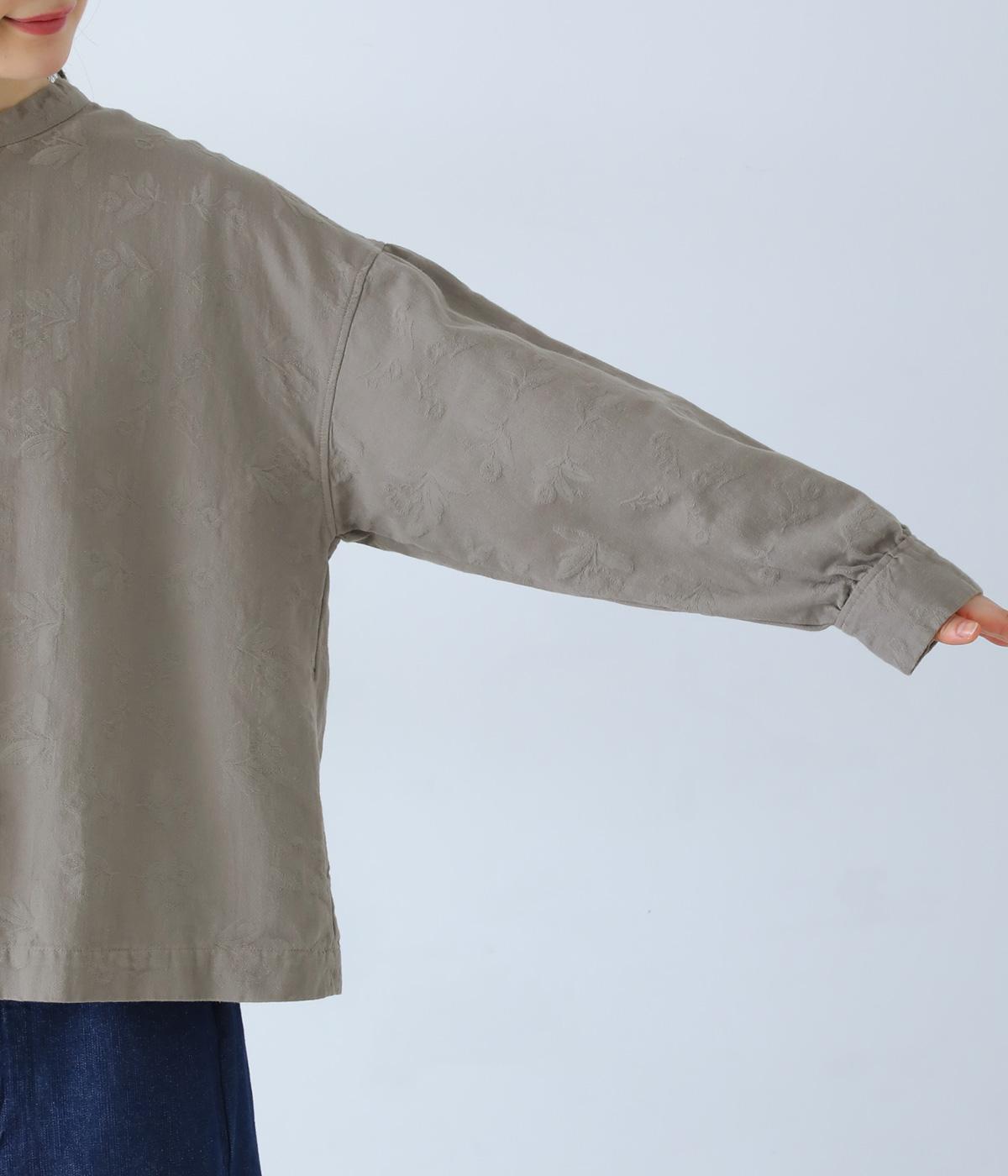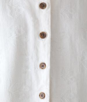 お花モチーフのジャカード柄が、上品な印象のシャツです。ゆとりのある身幅がリラックスした着心地を叶え、うしろヨークに入れたギャザーとボリューム袖が、やわらかなシルエットをつくります。首元は、コンパクトなスタンドカラーですっきりと。季節の変わり目には軽い羽織りとしても活躍する、便利な一枚です。