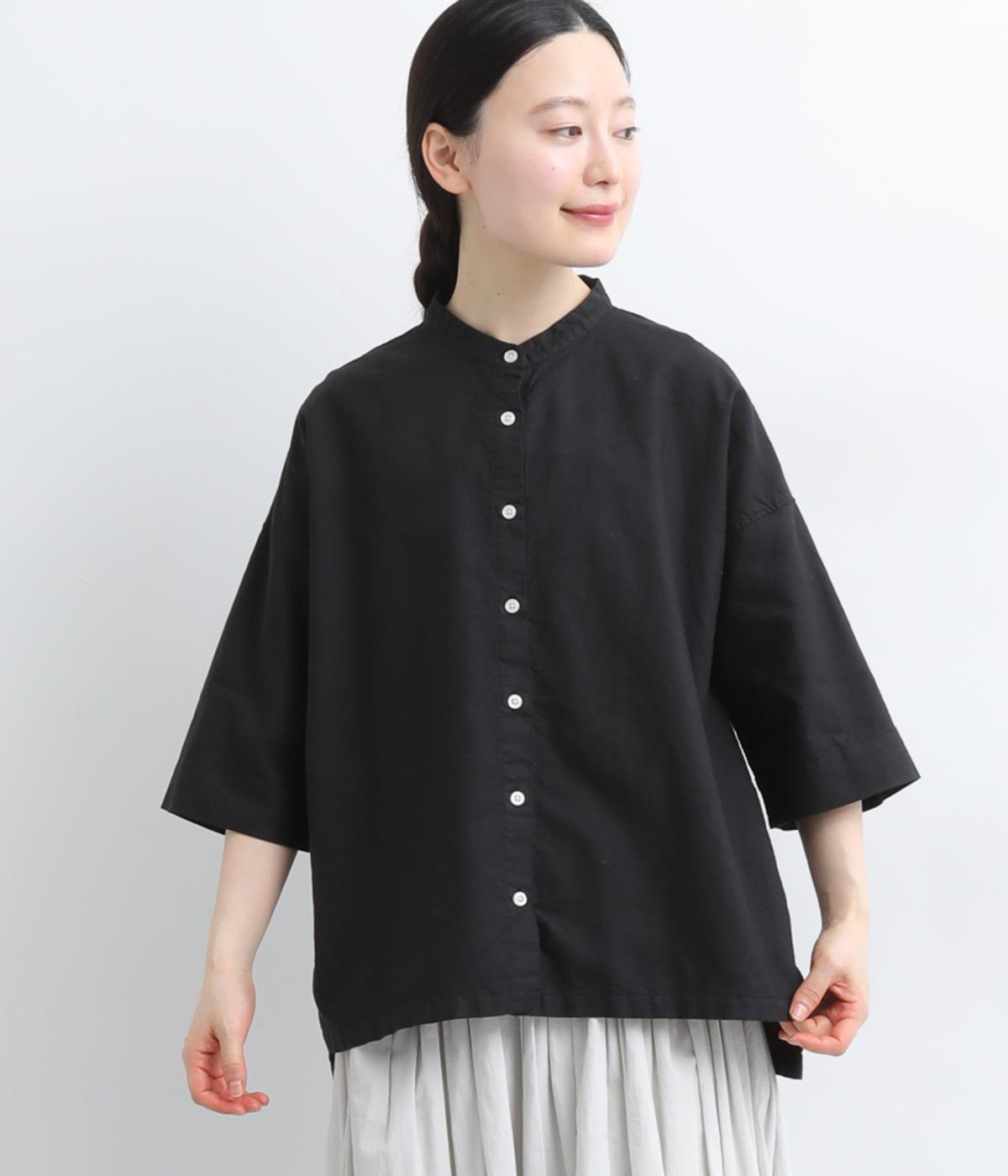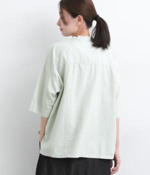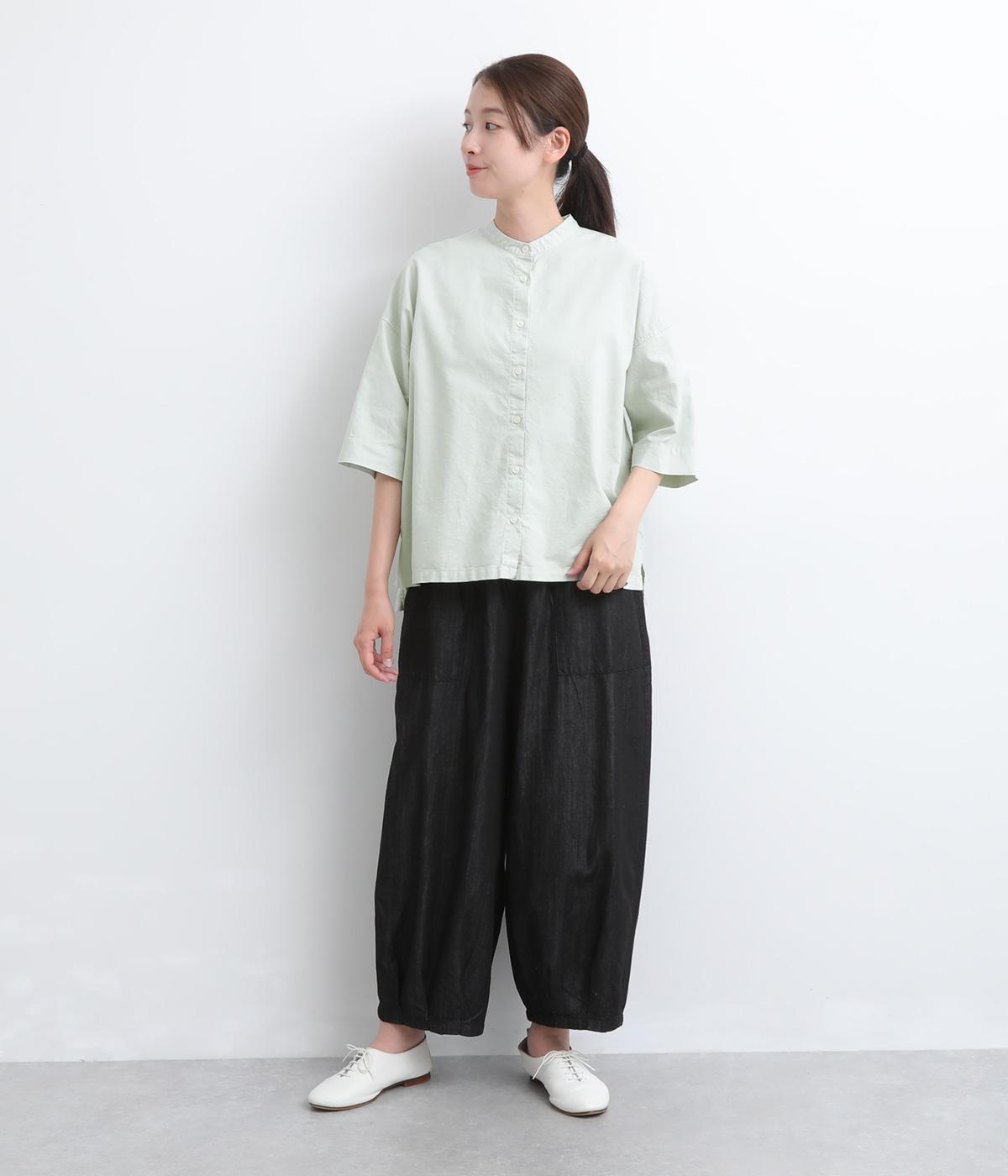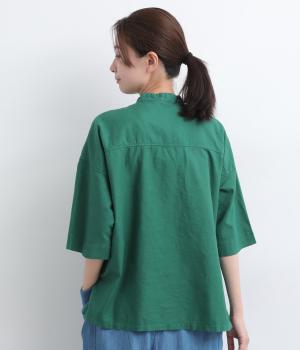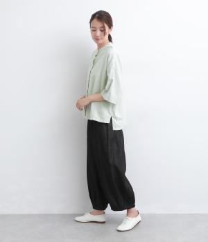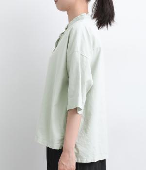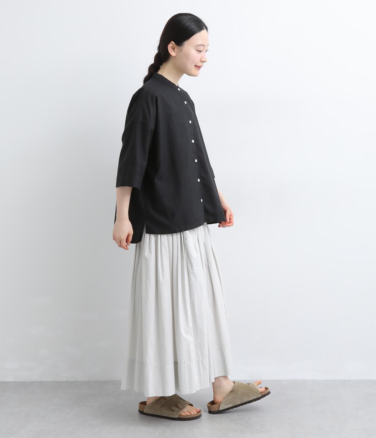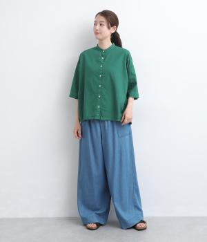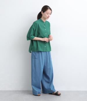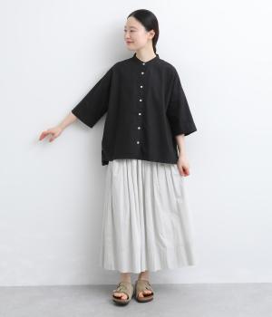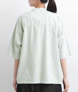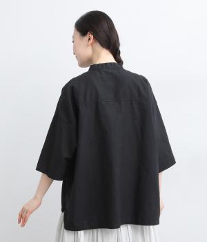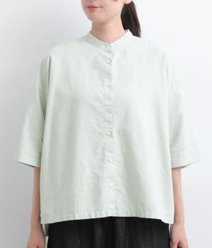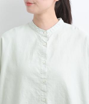 リネン バックギャザーバンドカラーシャツ