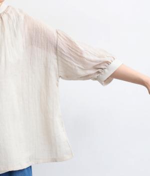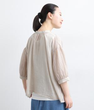 コットンソフトガーゼギャザーブラウス