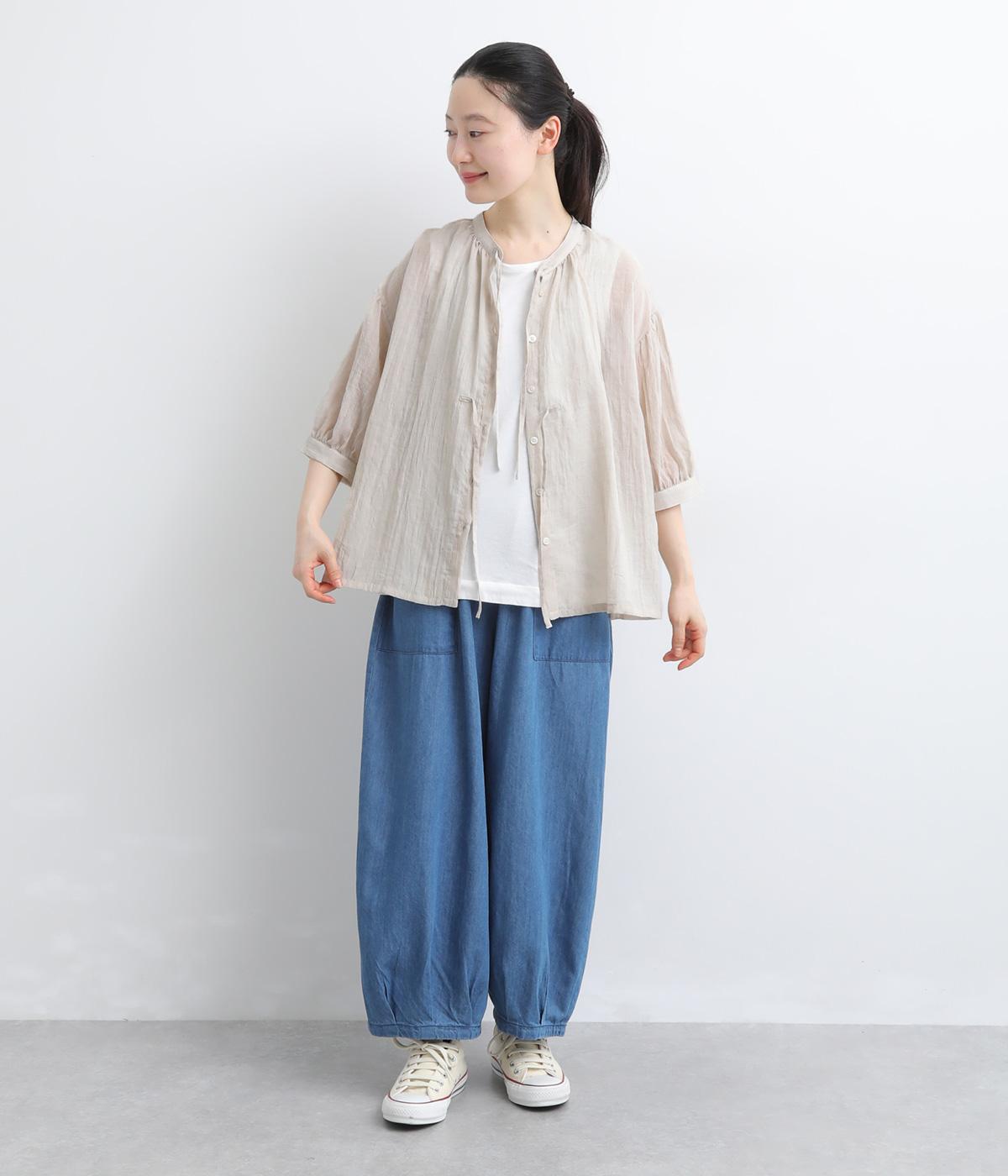 コットンテンセルデニム 裾タックパンツ(ブルー)