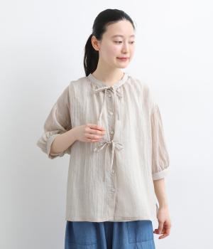 テンセルコットンアシメトリーリボンブラウス