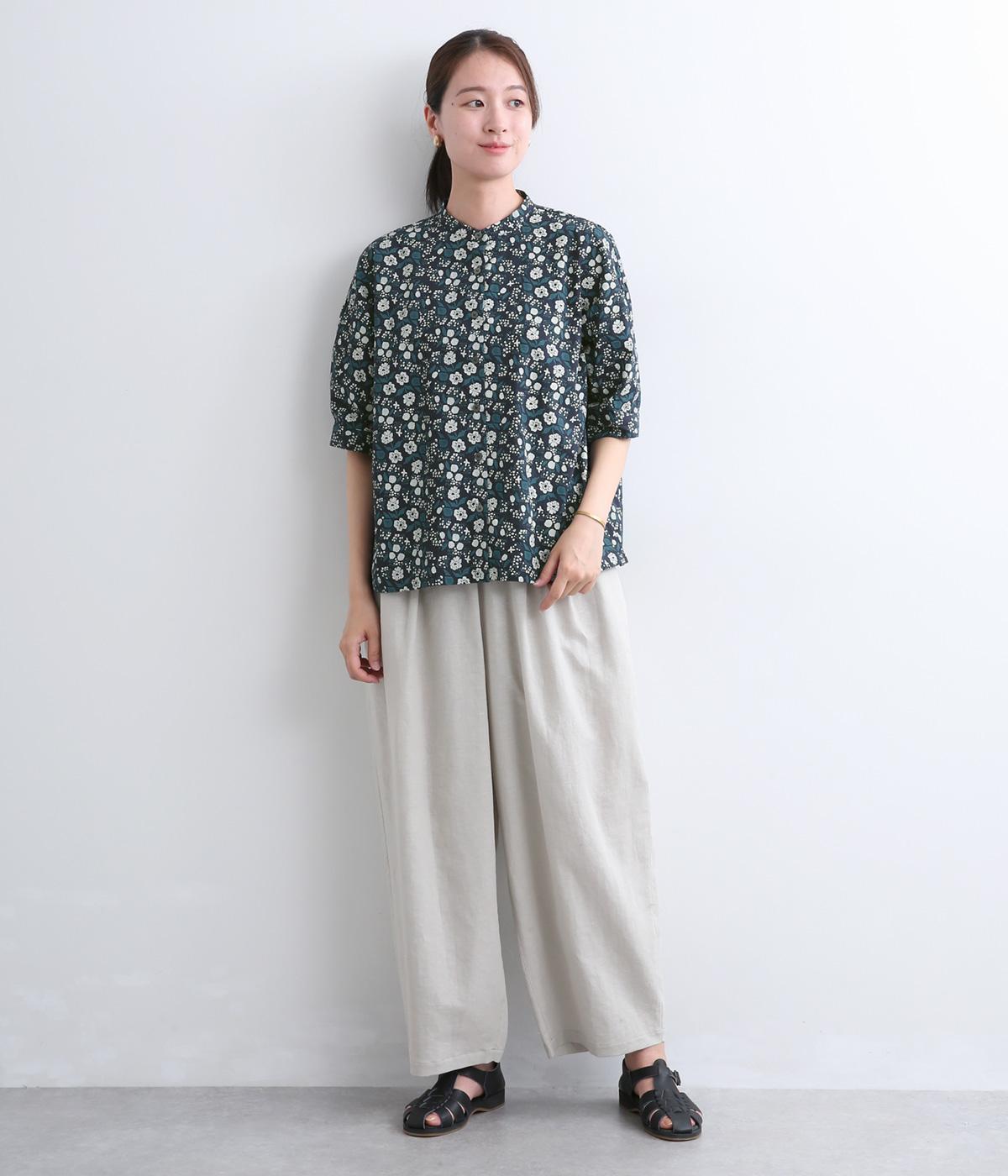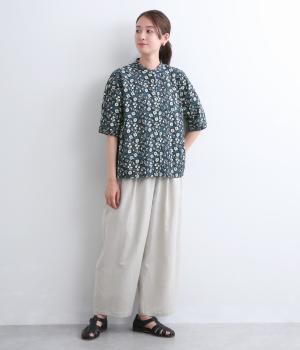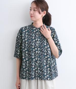コットンリネンフラワープリントプルオーバーブラウス