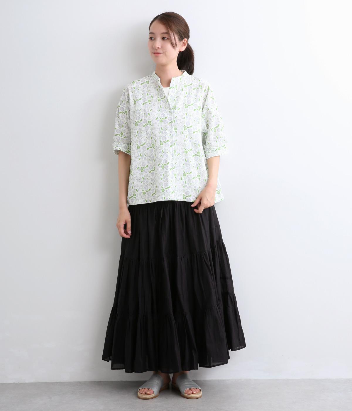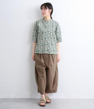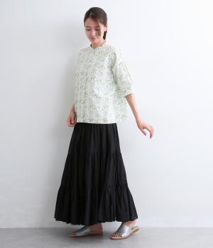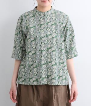 コットンローン ミモザプリントスキッパーブラウス