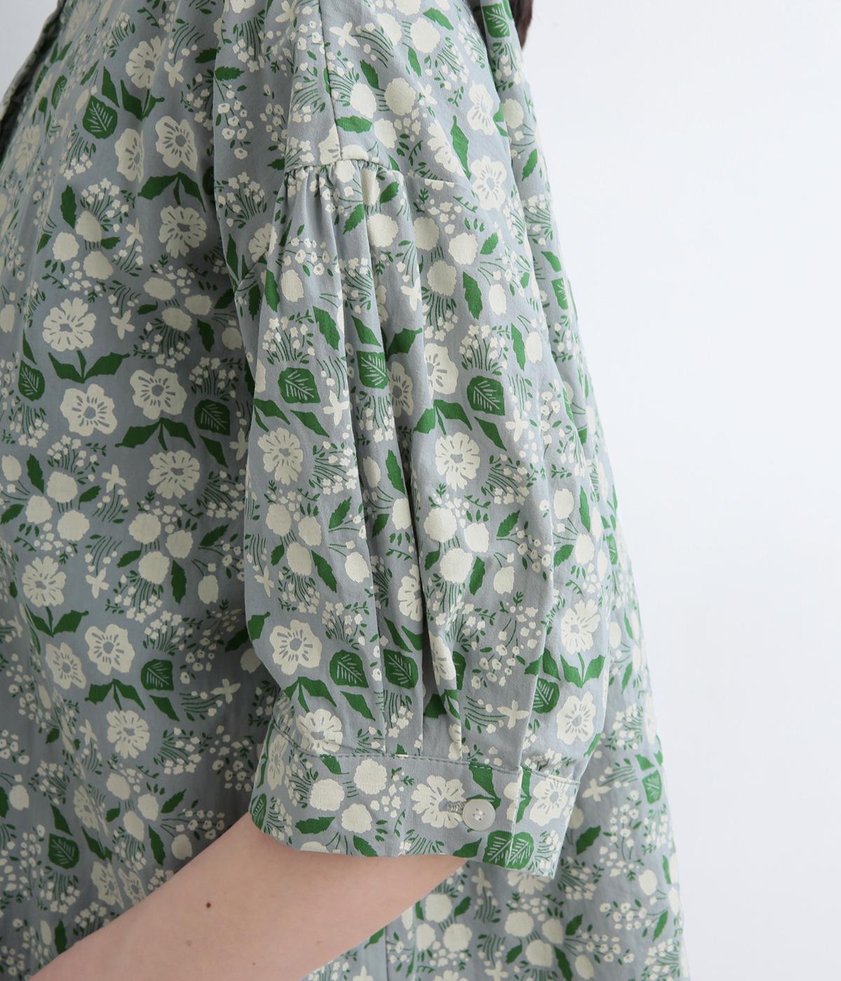 コットンフローラルプリント ボリュームスリーブラウス