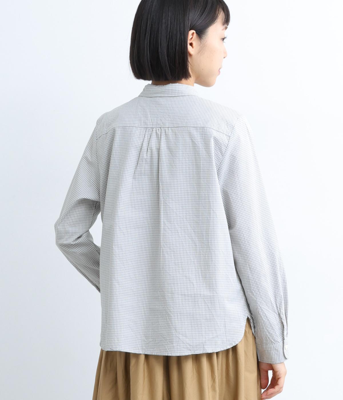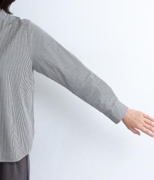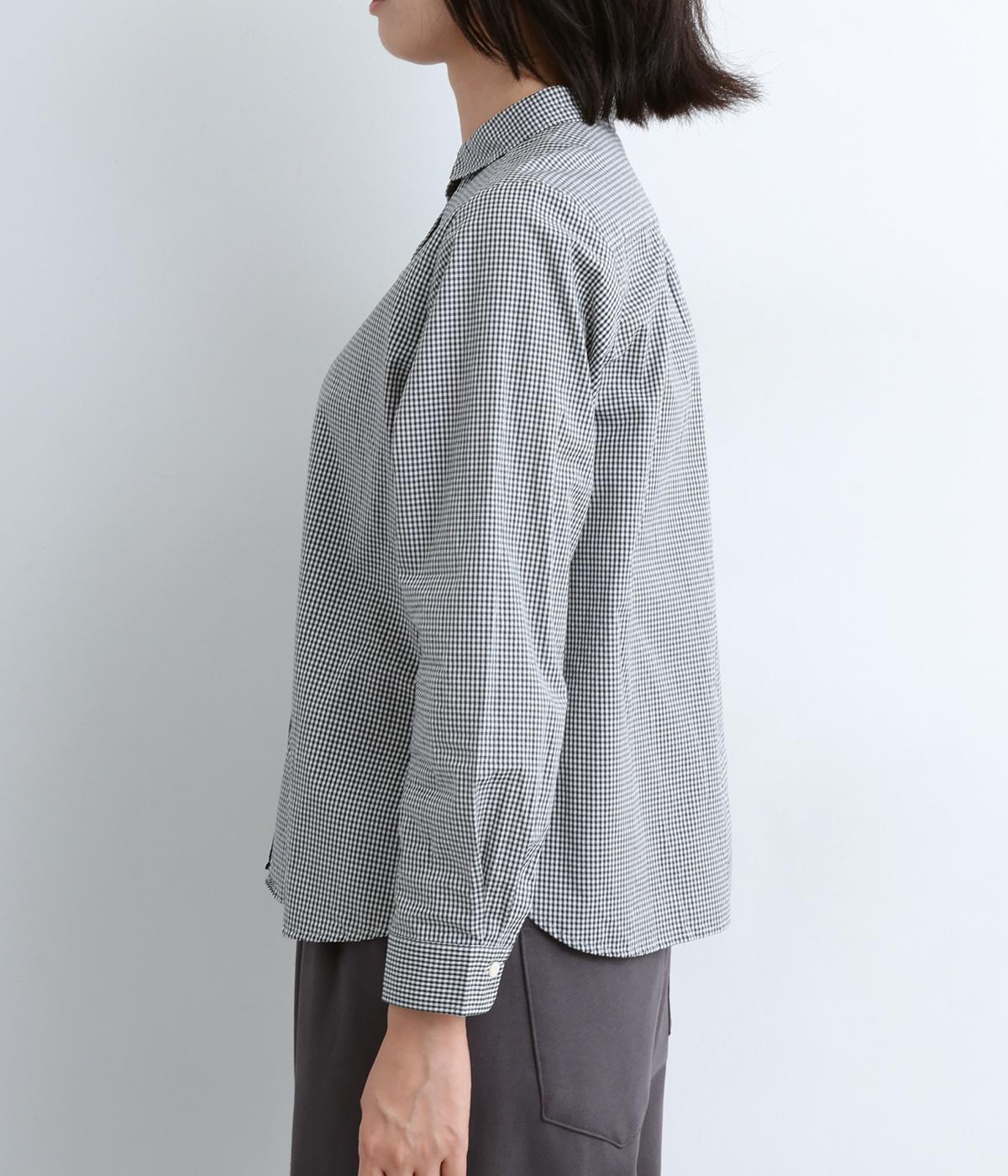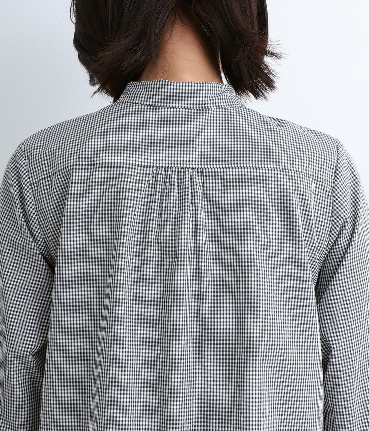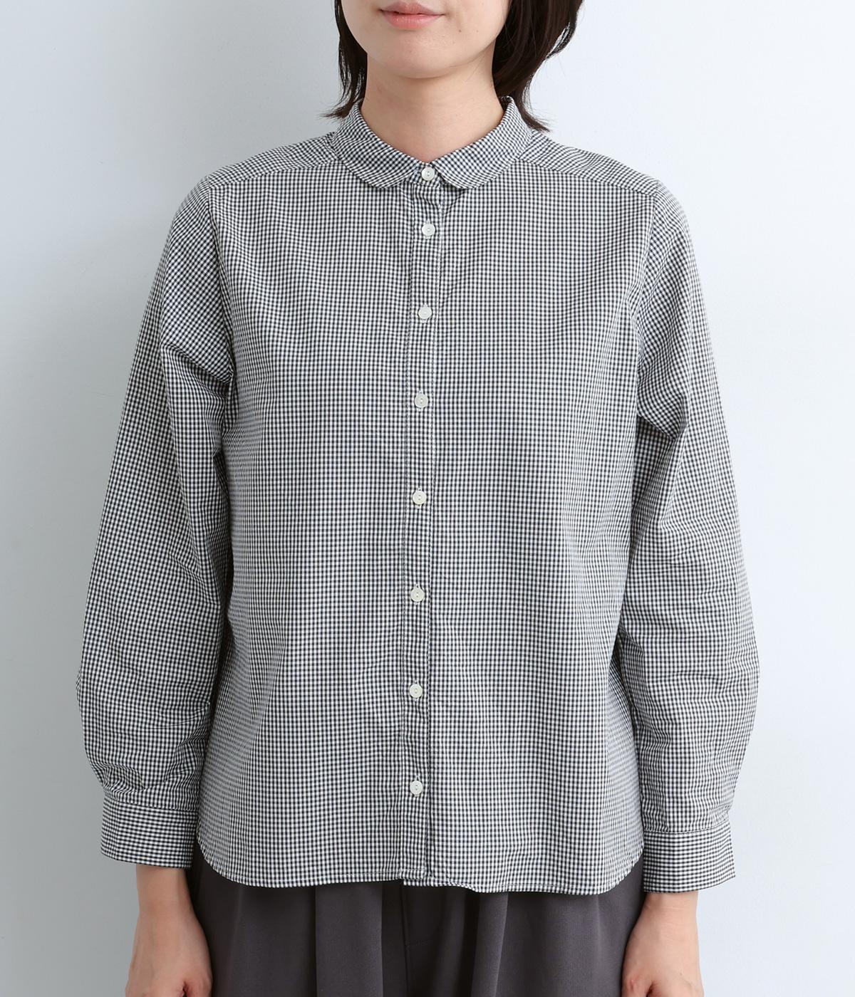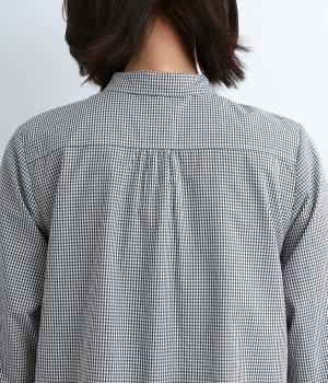 シンプルでタイムレスなデザインに小さい襟がかわいらしい印象を添えます。カジュアルながらもシックなギンガムチェックはデイリーに取り入れやすく、インナーにしてもアクセントになる一枚です。