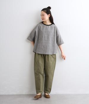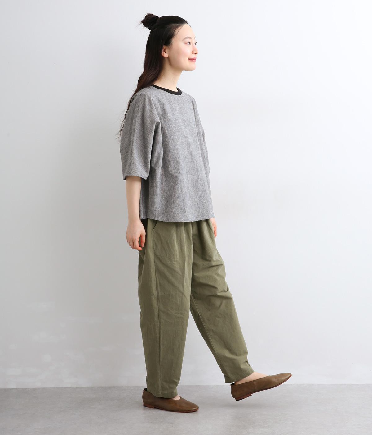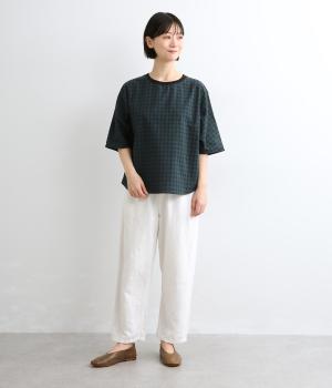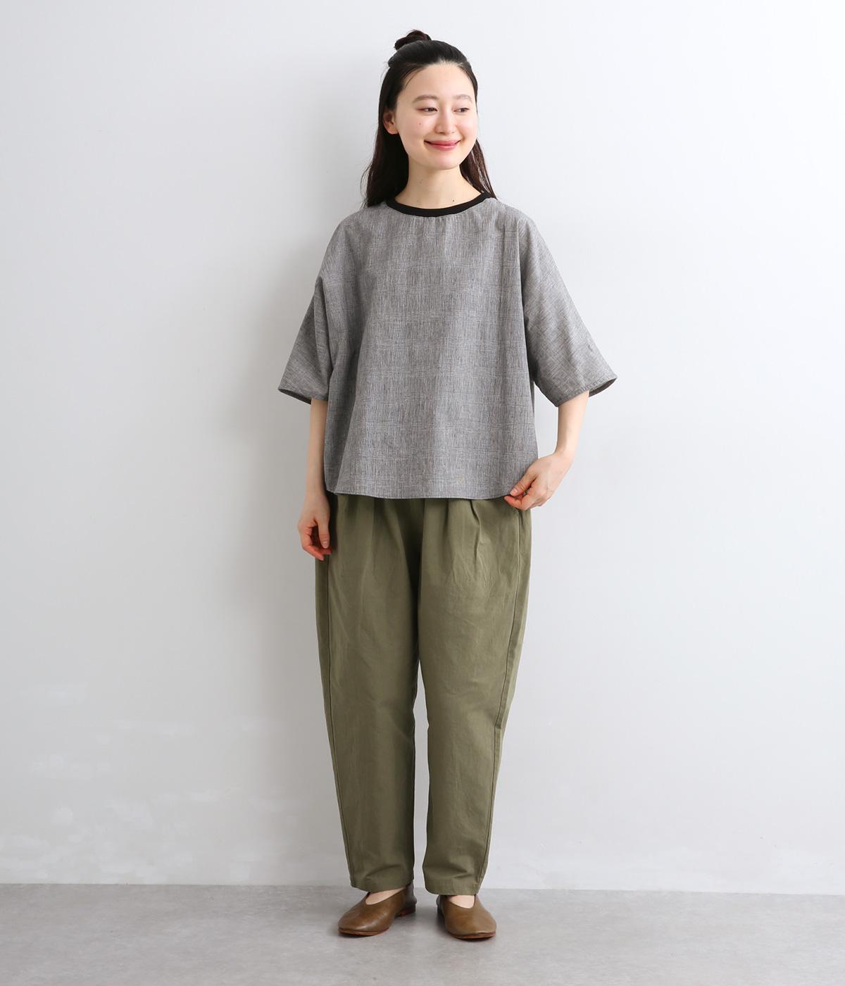 肌あたりはやわらかく、さらっとした心地よさが特徴のコットンリネンを使用しています。ふくらみがあるので肌離れが良く、快適に着られる生地感です。