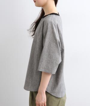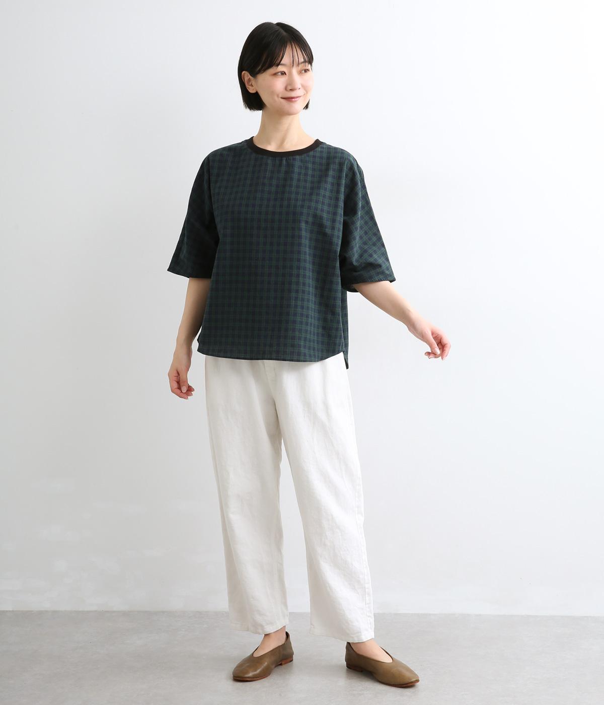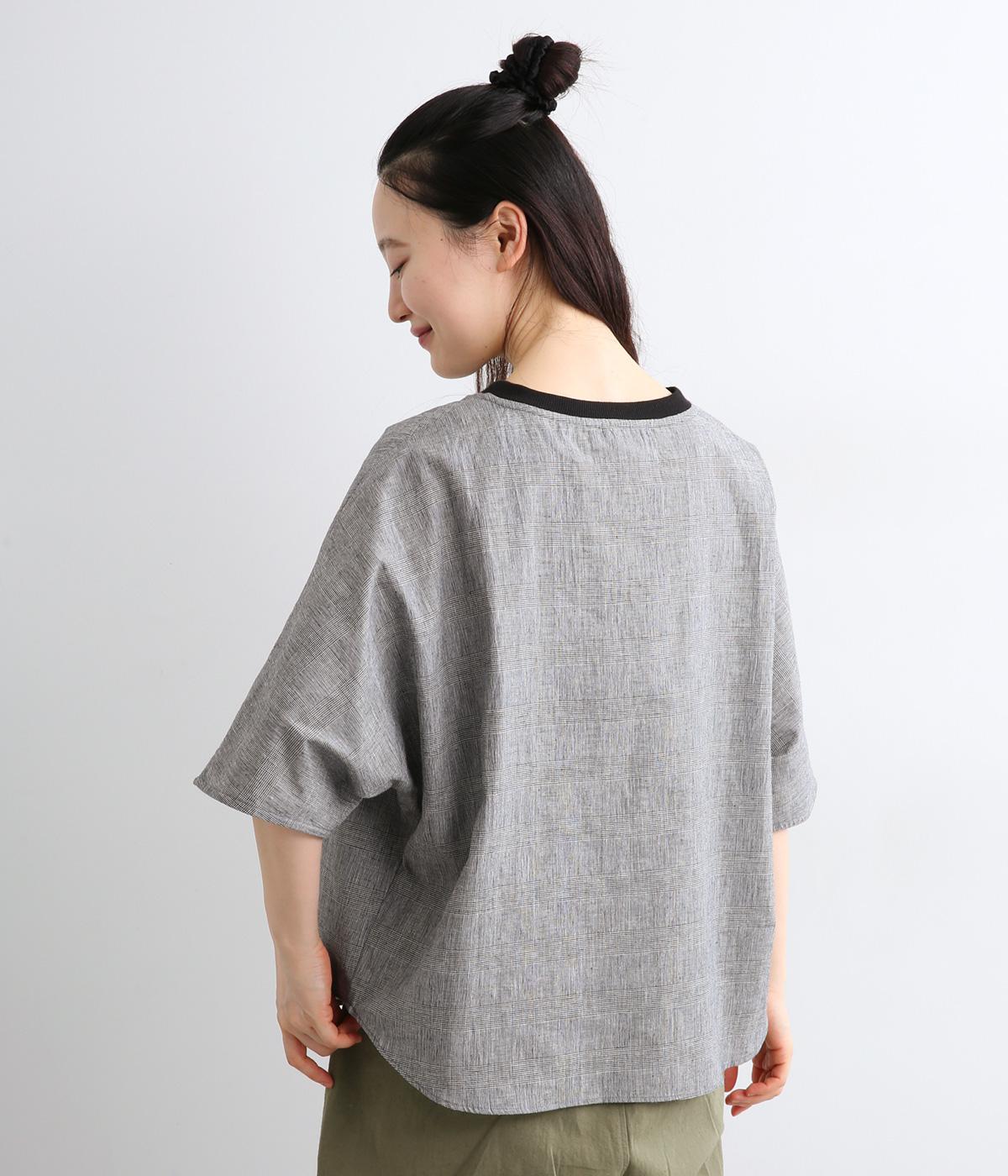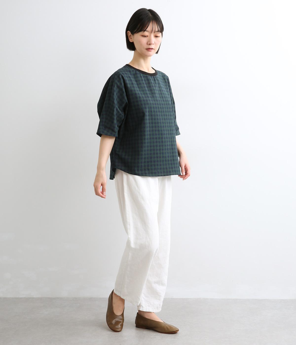 肌あたりはやわらかく、さらっとした心地よさが特徴のコットンリネンを使用しています。ふくらみがあるので肌離れが良く、快適に着られる生地感です。