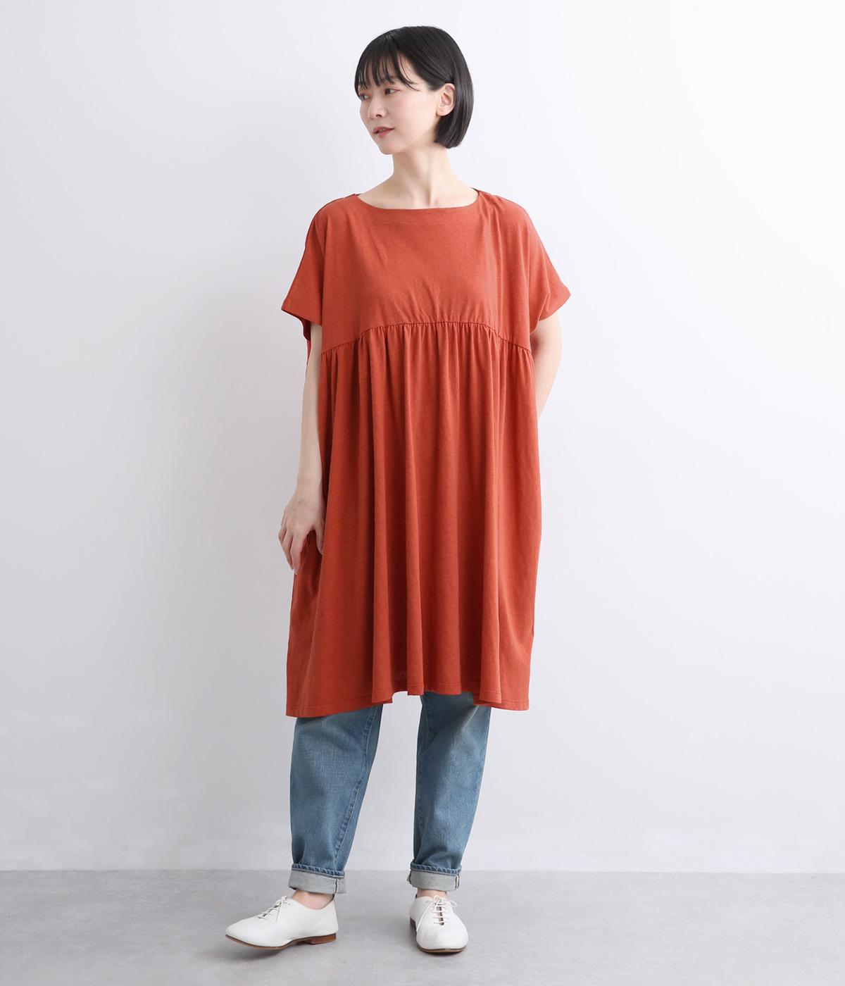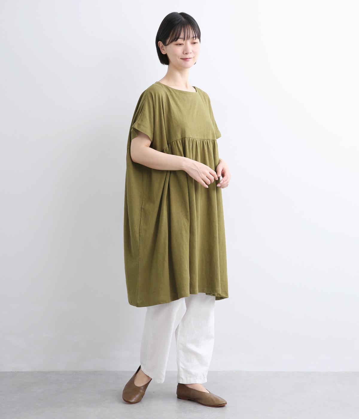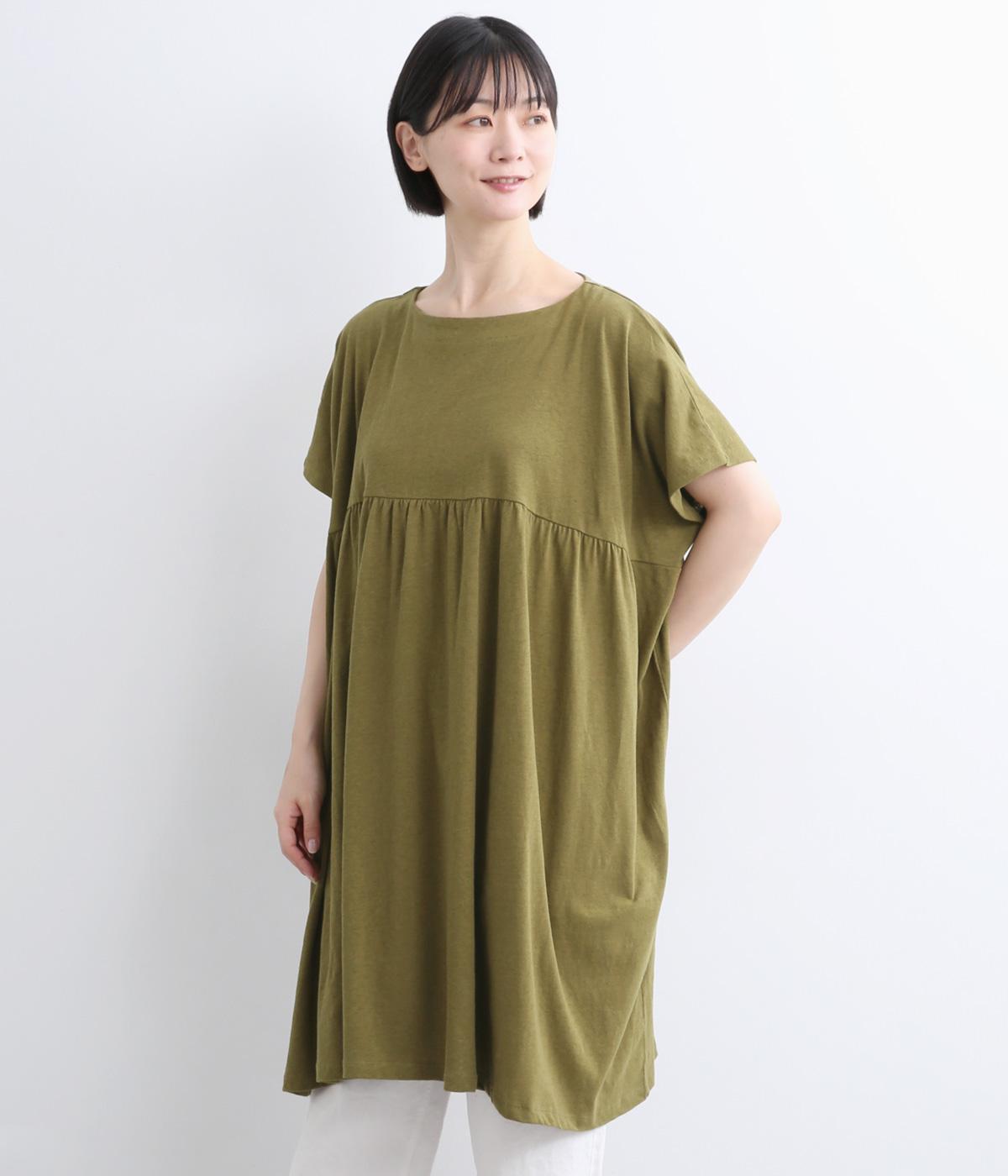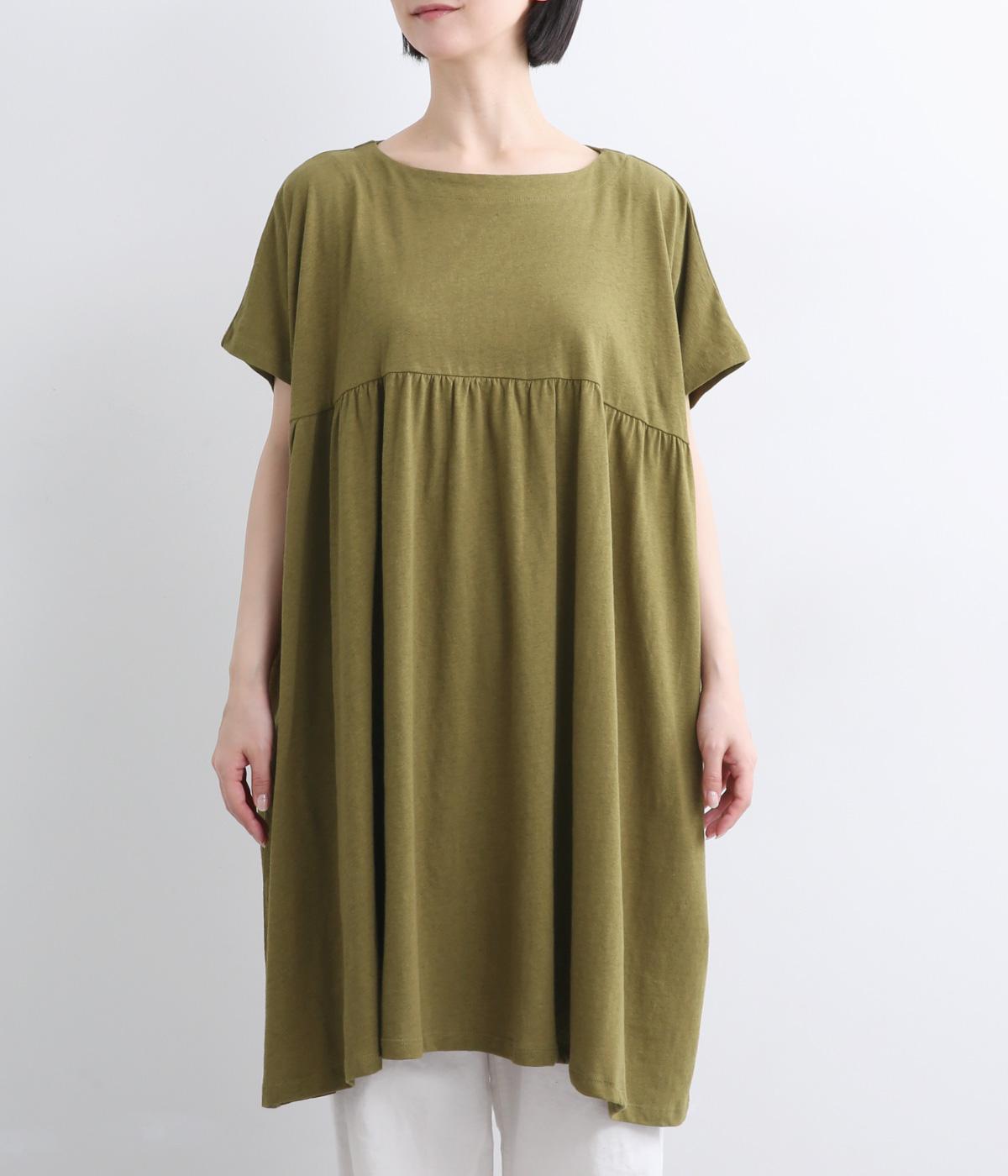 やわらかなコットンにリネンをすこし混ぜることで、麻特有のシャリ感とナチュラルな風合いがより増しています。伸びのいい天竺生地で着用感も抜群。