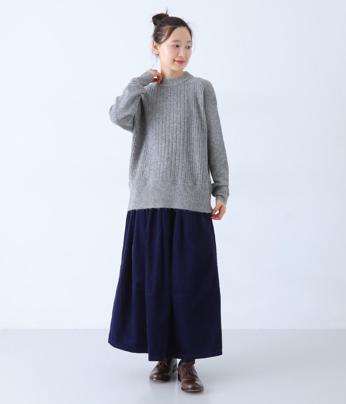 ふっくらとしたあたたかみのあるウール混ミドルゲージニット。とても伸びがよくて軽く、ストレスの少ない着用感を叶えてくれます。