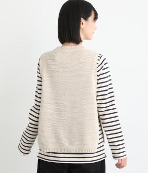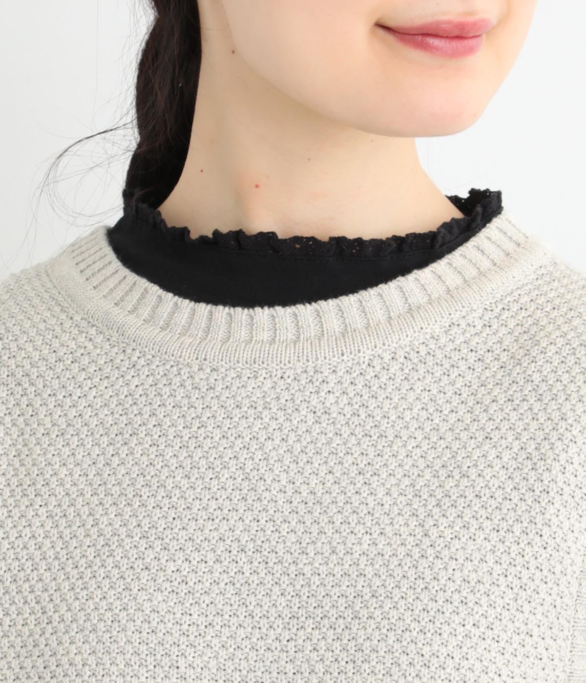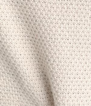 表面に凹凸のある鹿の子編みで仕立てた、コットンニット生地です。ぽこぽことした立体感があり、肌に触れる面はさらりとした心地よさです。通気性にも優れているので、季節の変わり目も快適に過ごせます。