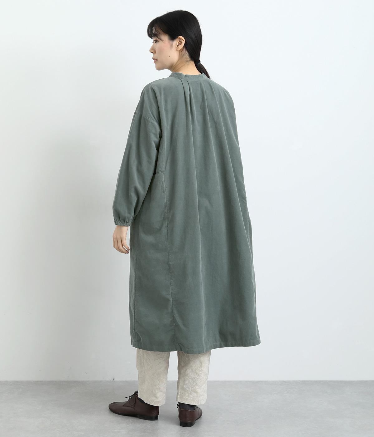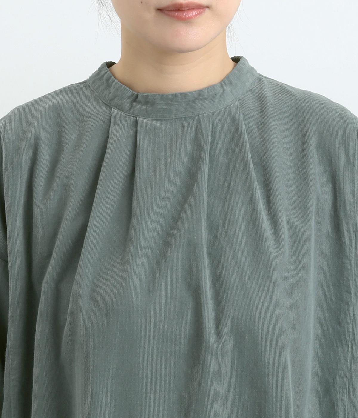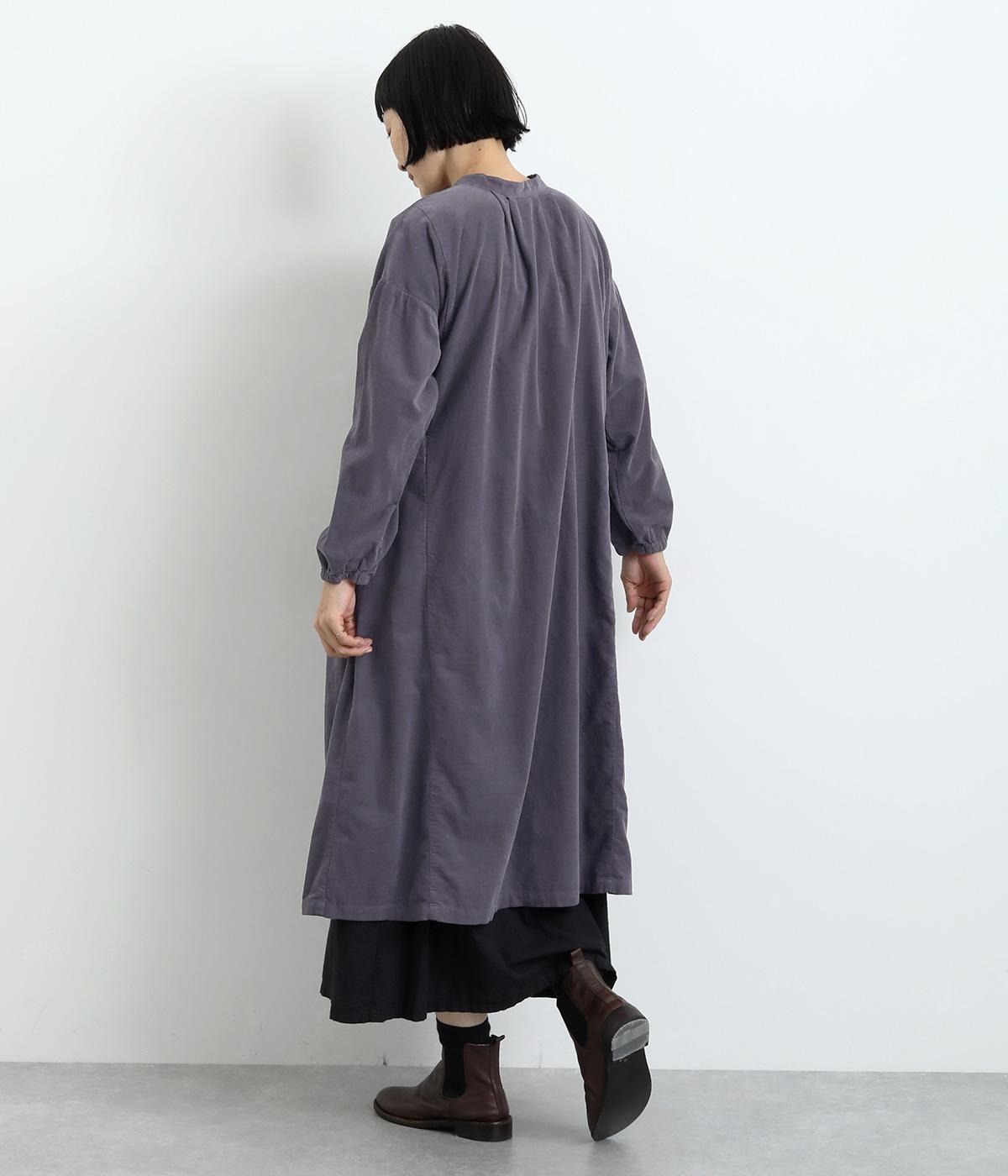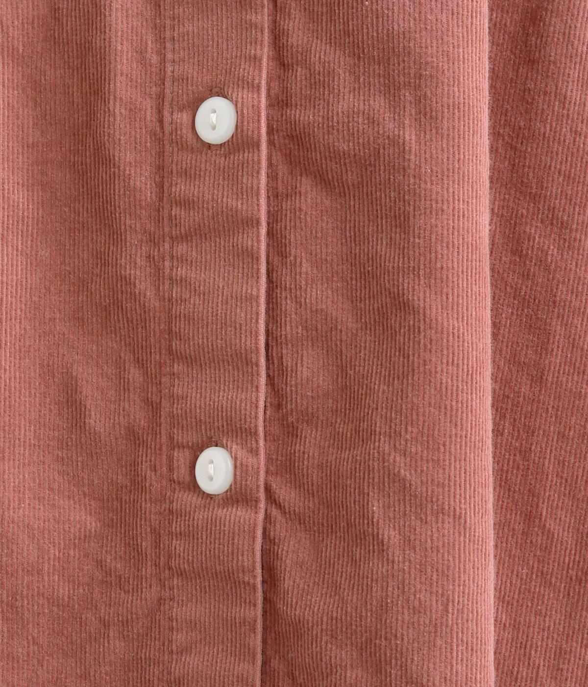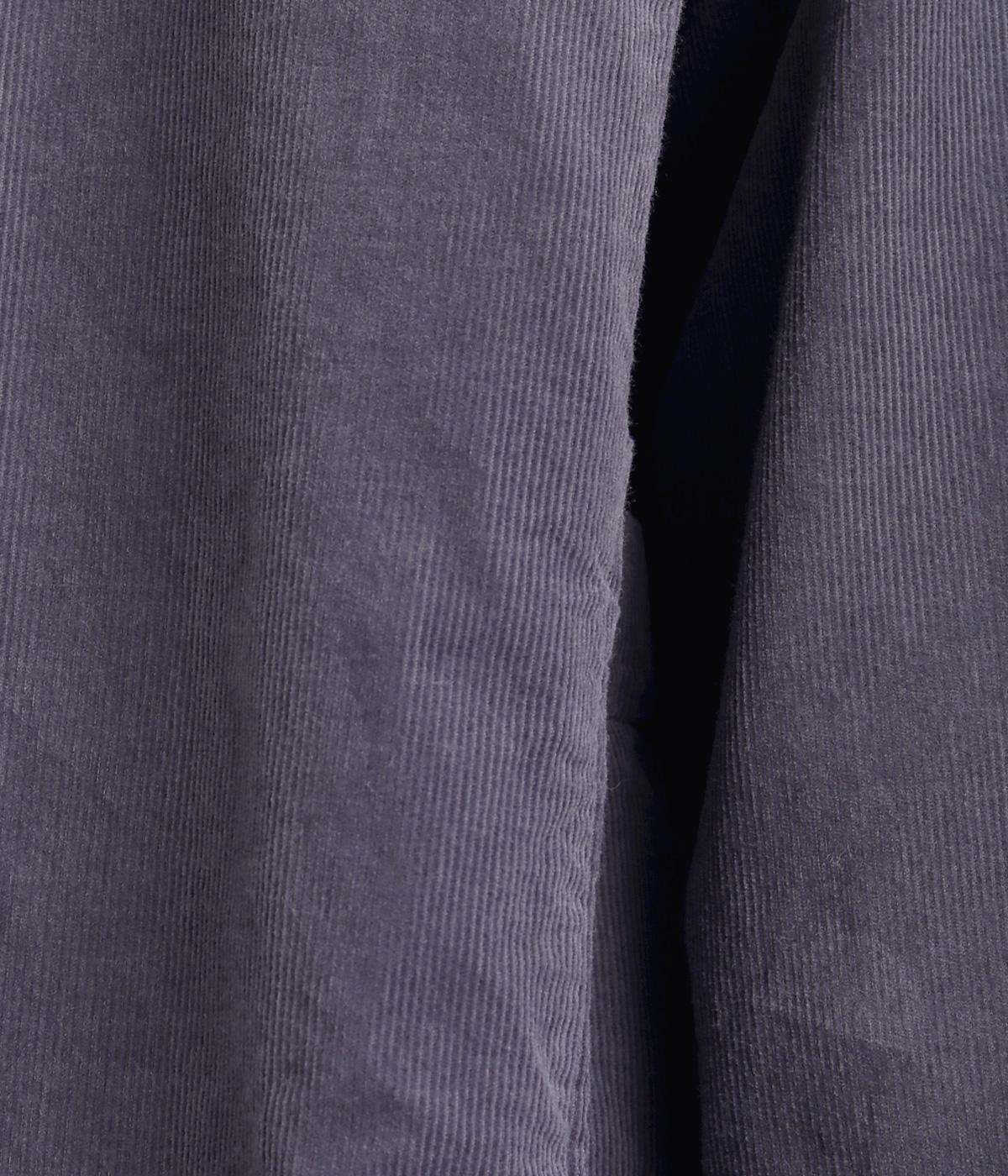 極細の畝が特徴的なコーデュロイ素材を使用しています。ふくらみのあるソフトな肌触りにあたたかみのある表情が特徴で、生地自体は肉厚すぎずデイリーに着まわせます。