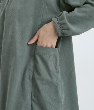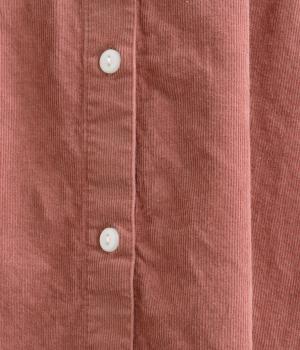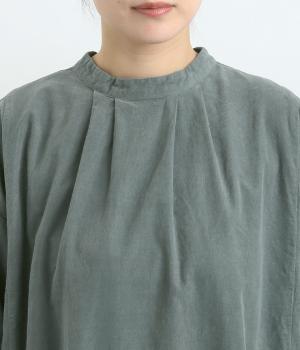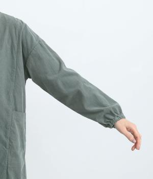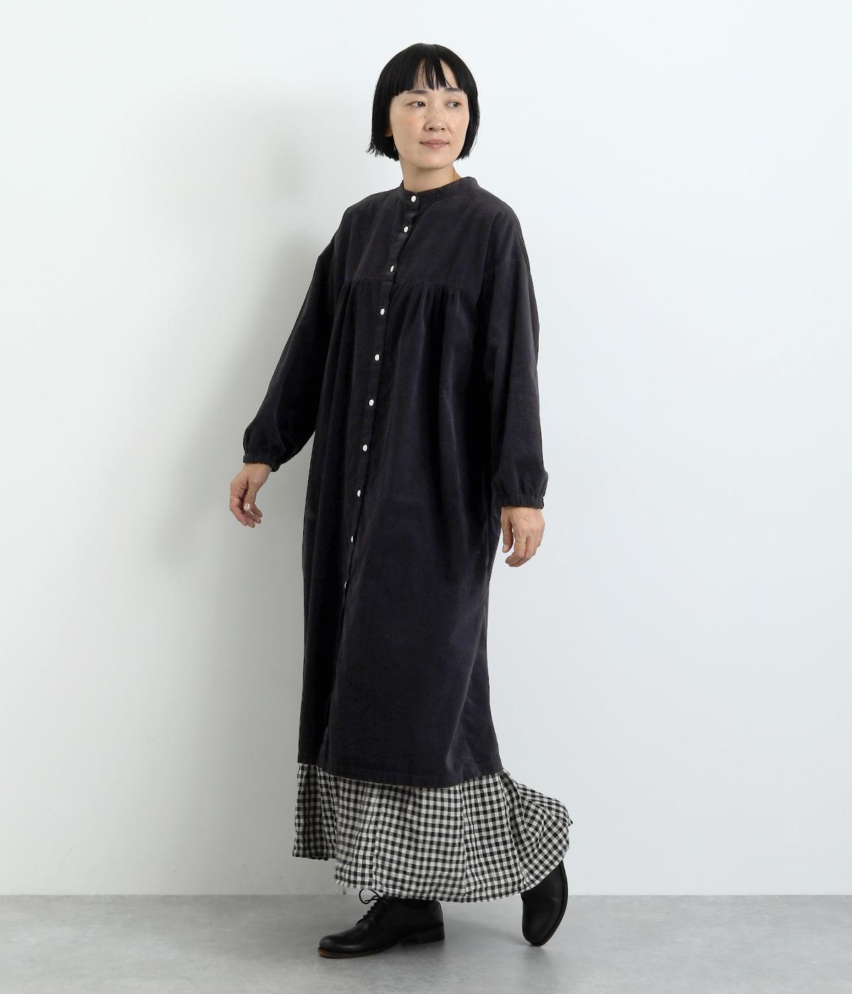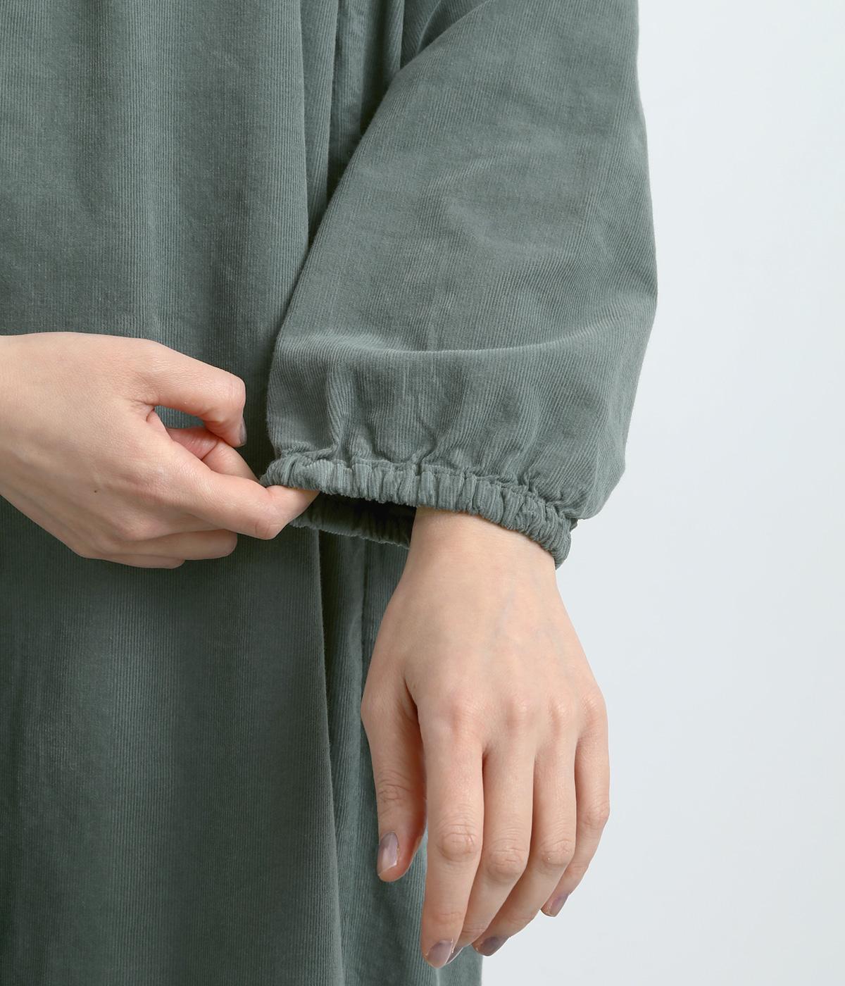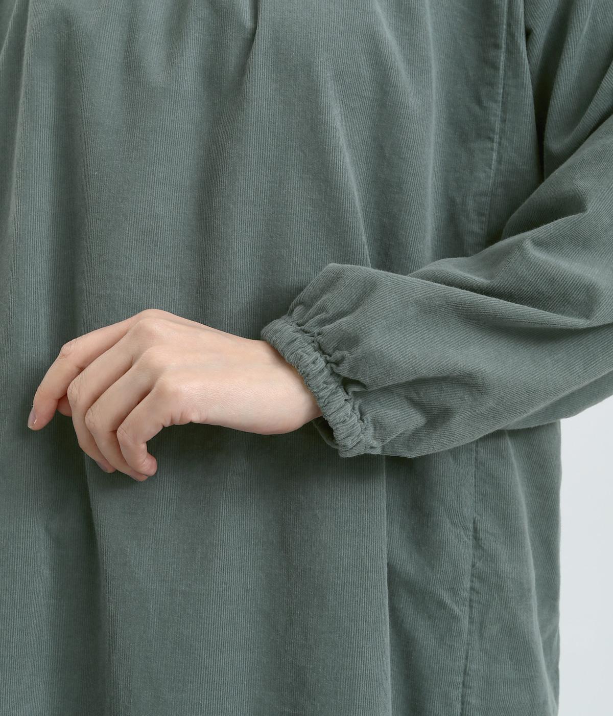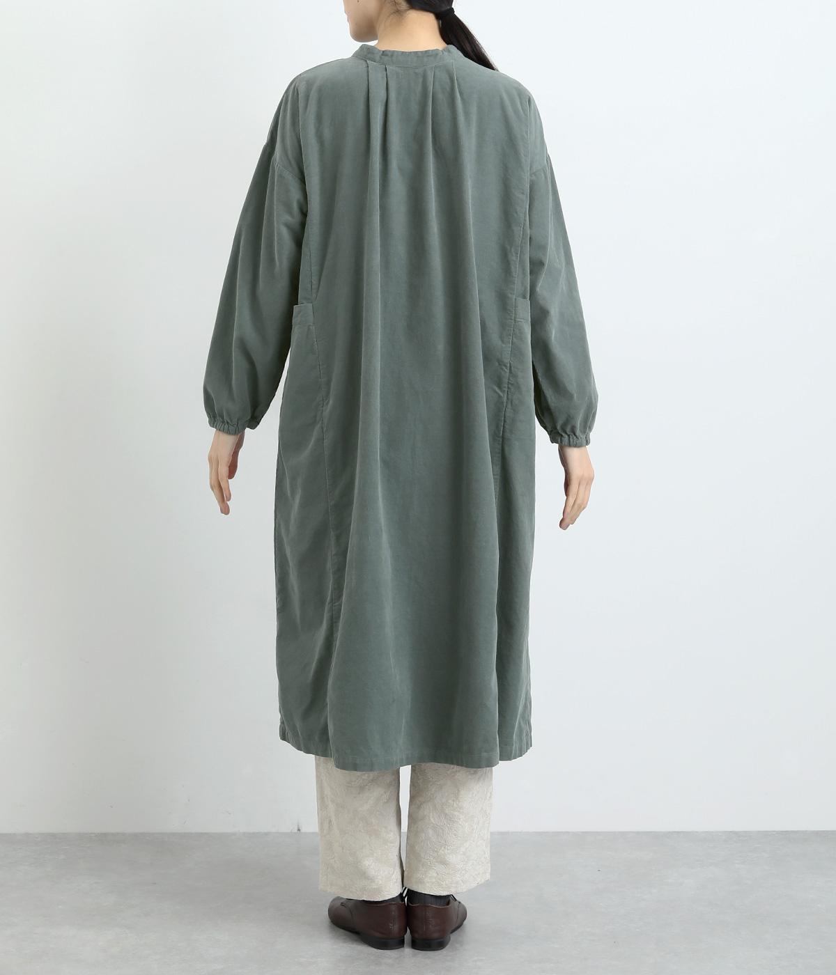 極細の畝が特徴的なコーデュロイ素材を使用しています。ふくらみのあるソフトな肌触りにあたたかみのある表情が特徴で、生地自体は肉厚すぎずデイリーに着まわせます。