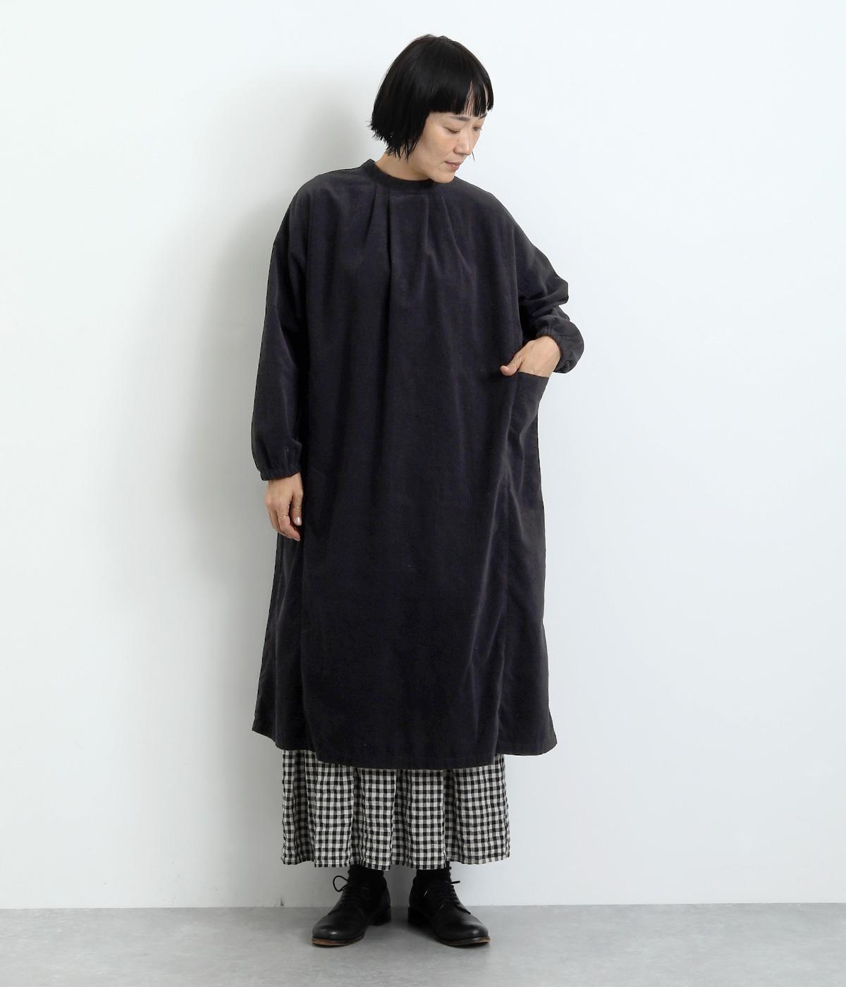 両サイドにあるビックポケットがアクセントになったワンピースは、前後で着まわせる2way仕様。ボトム合わせがたのしめる丈感に羽織りにもなる前あきデザインで、さまざまなスタイリングがたのしめます。