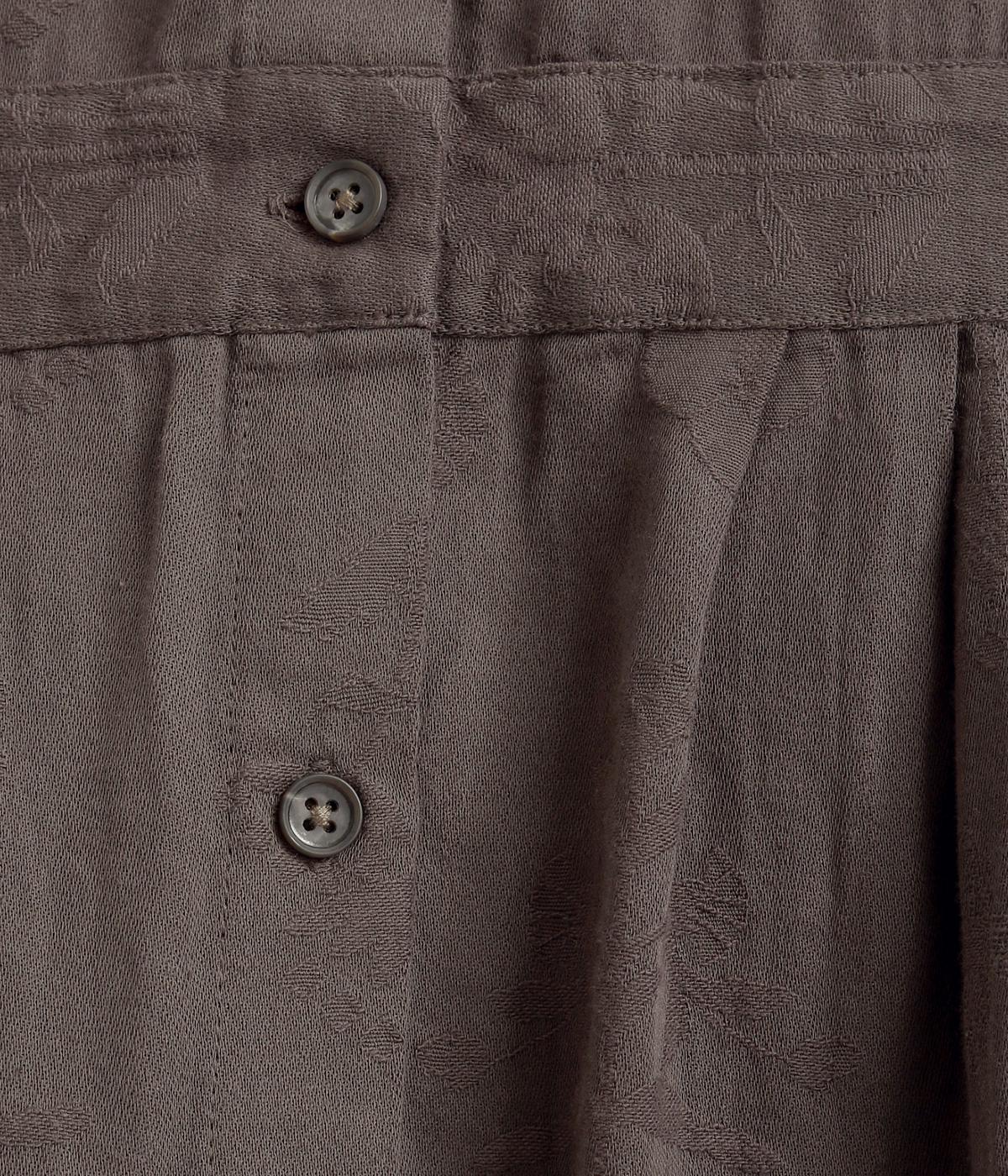 さり気なく花柄を描いたコットンジャカード生地を採用。落ち着きのある風合いにさらりとした肌触りが特徴で、肉厚すぎずデイリー使いしやすい生地感です。
