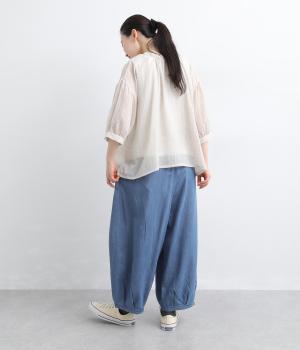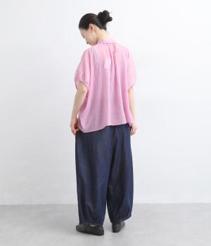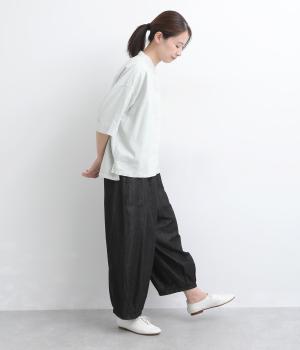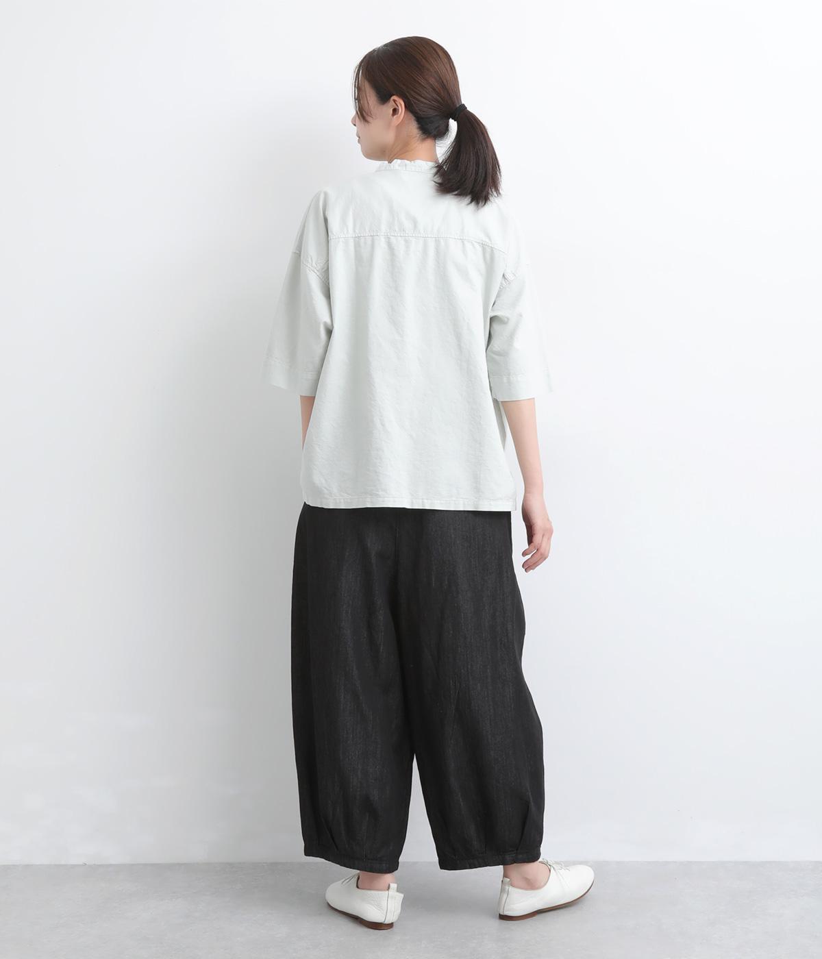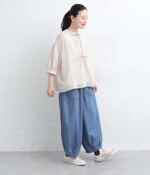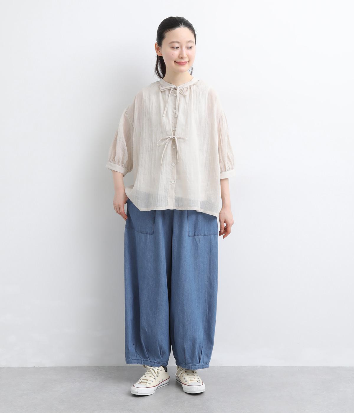TCソフトガーゼ 6分袖リボンブラウス(オフグレー)