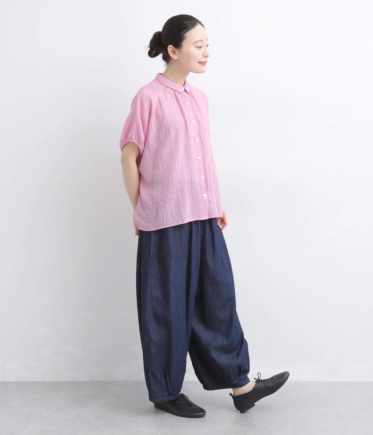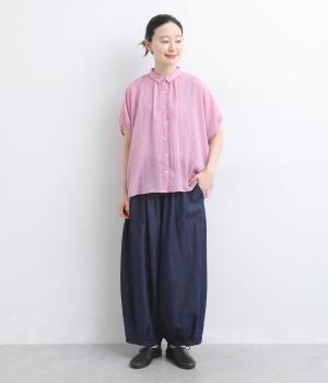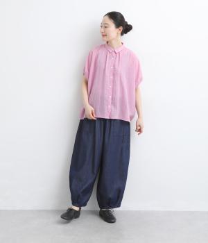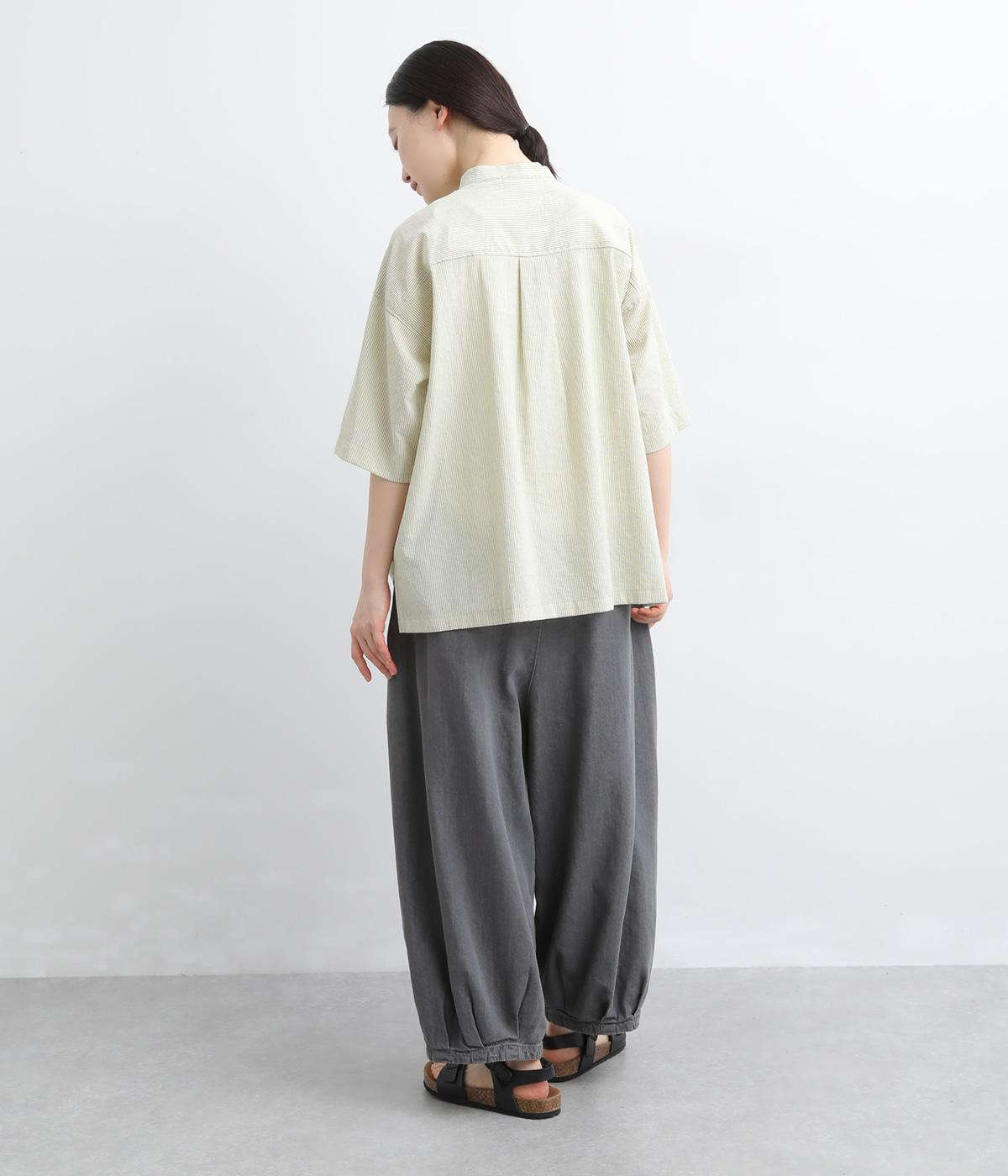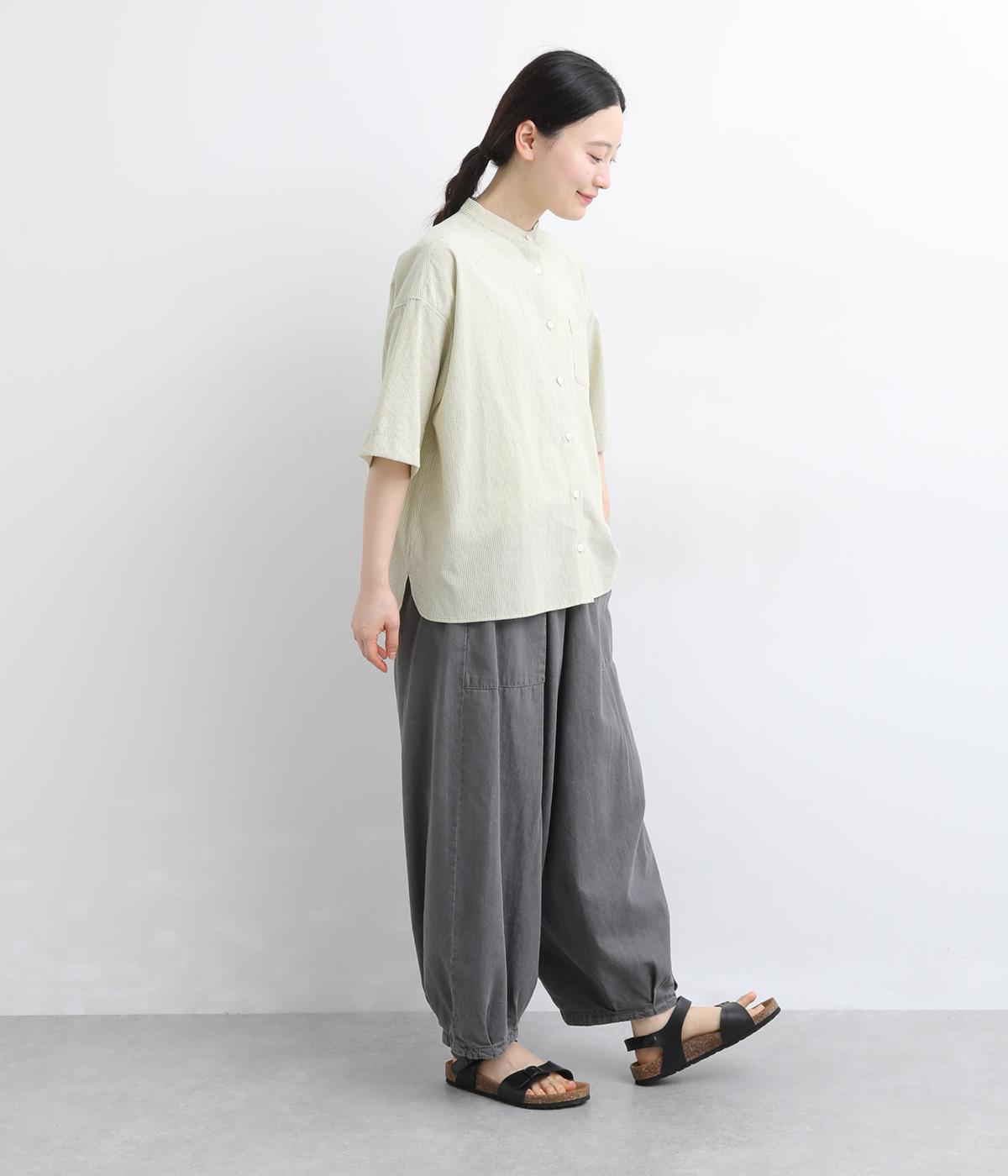 TCソフトガーゼ 6分袖リボンブラウス(オフグレー)