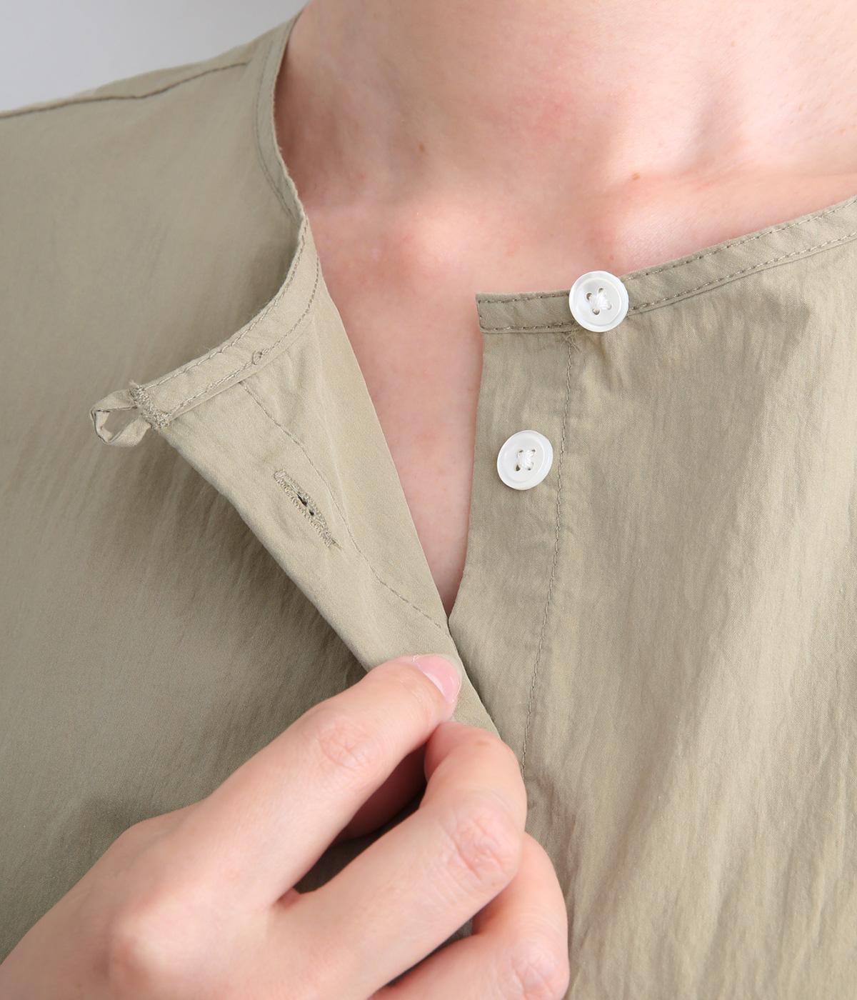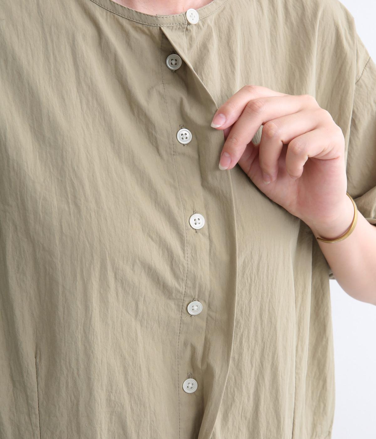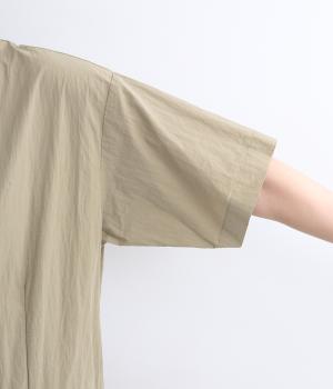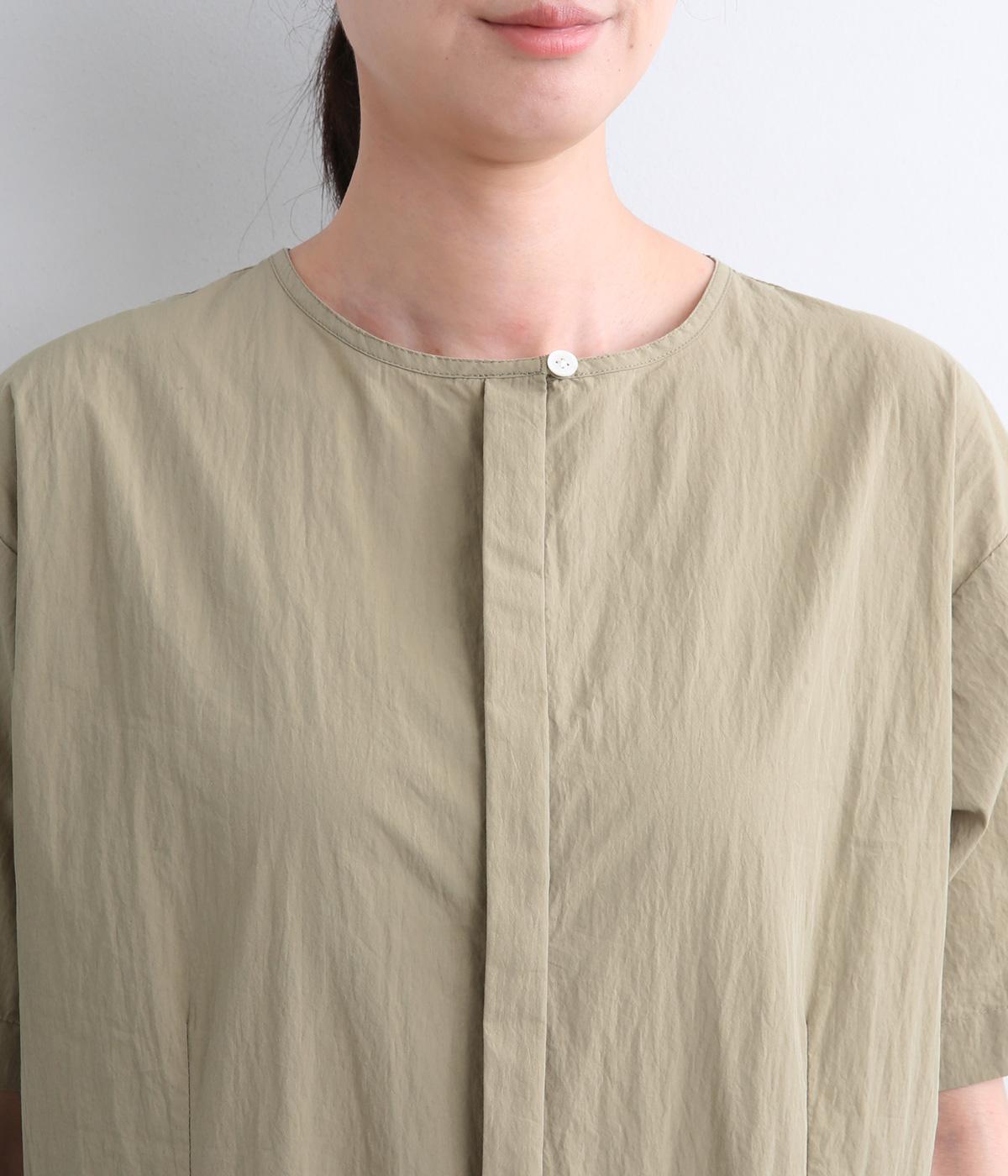 コットンボイスアシッドウォッシュギャザー7分袖ワンピース