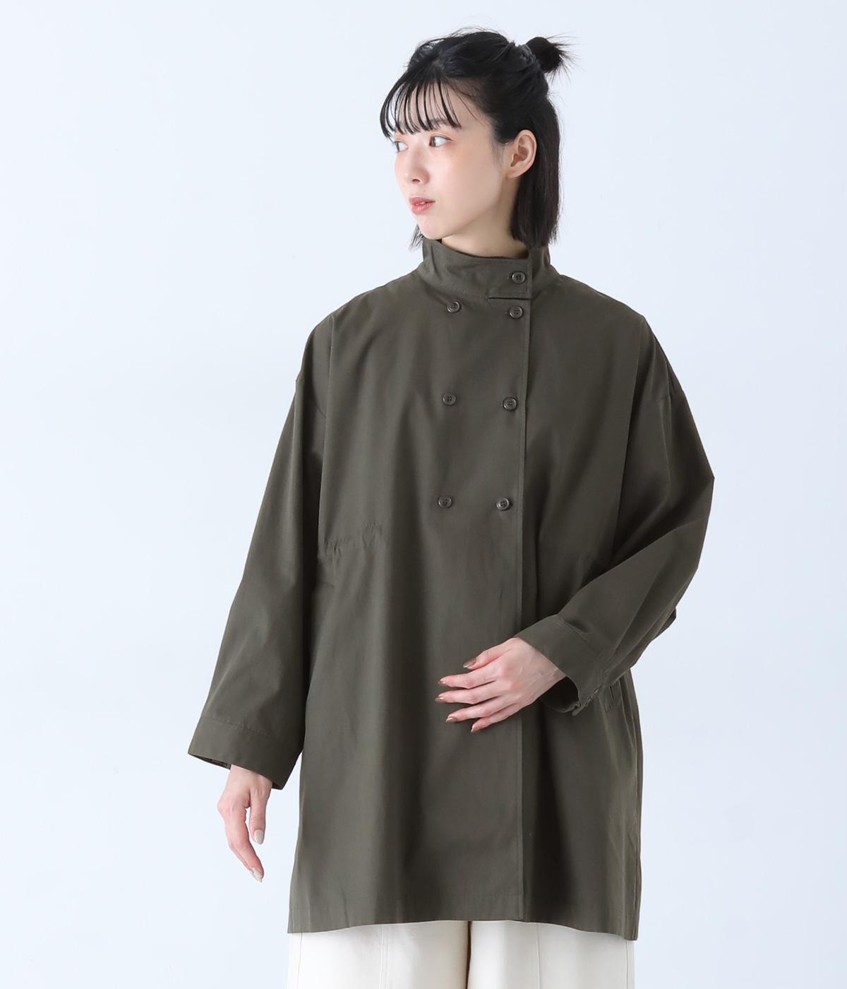 ダブルボタンとスタンドカラーがクラシカルな印象を与えるハーフコート。ウエスト内側に通した紐をきゅっと絞ればシルエットをすっきりとアレンジ可能です。襟部分は開けるとテーラード風に着こなせるのもグッド。袖口カフスのボタンやタック使いなど、細かなディテールにもこだわりが光ります。