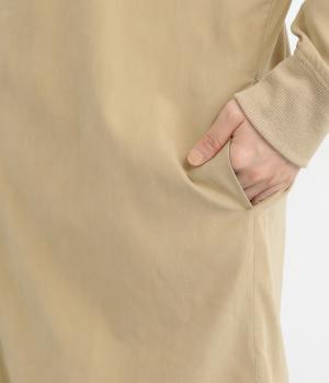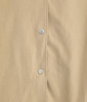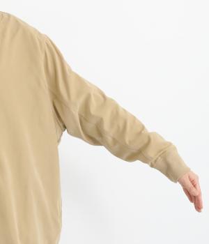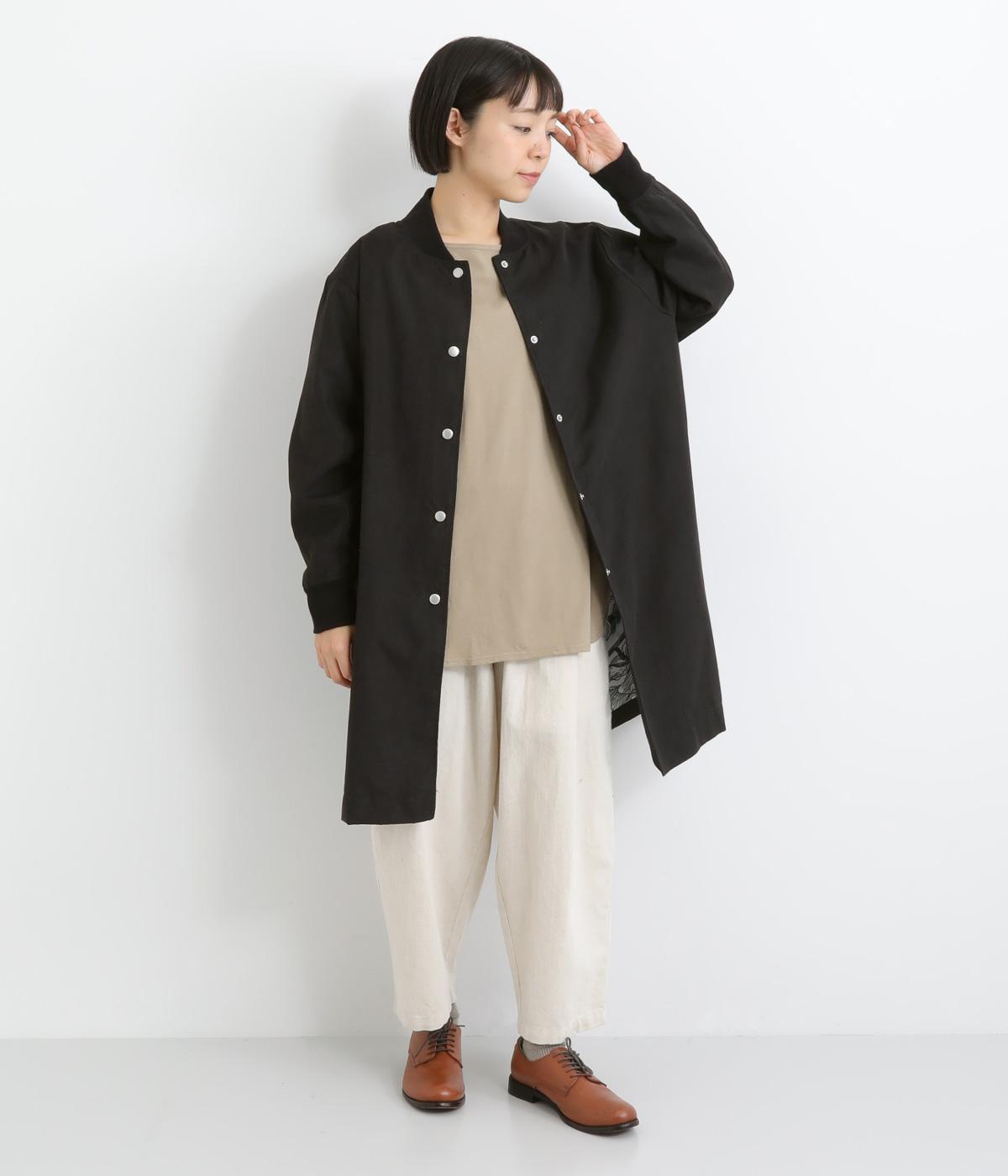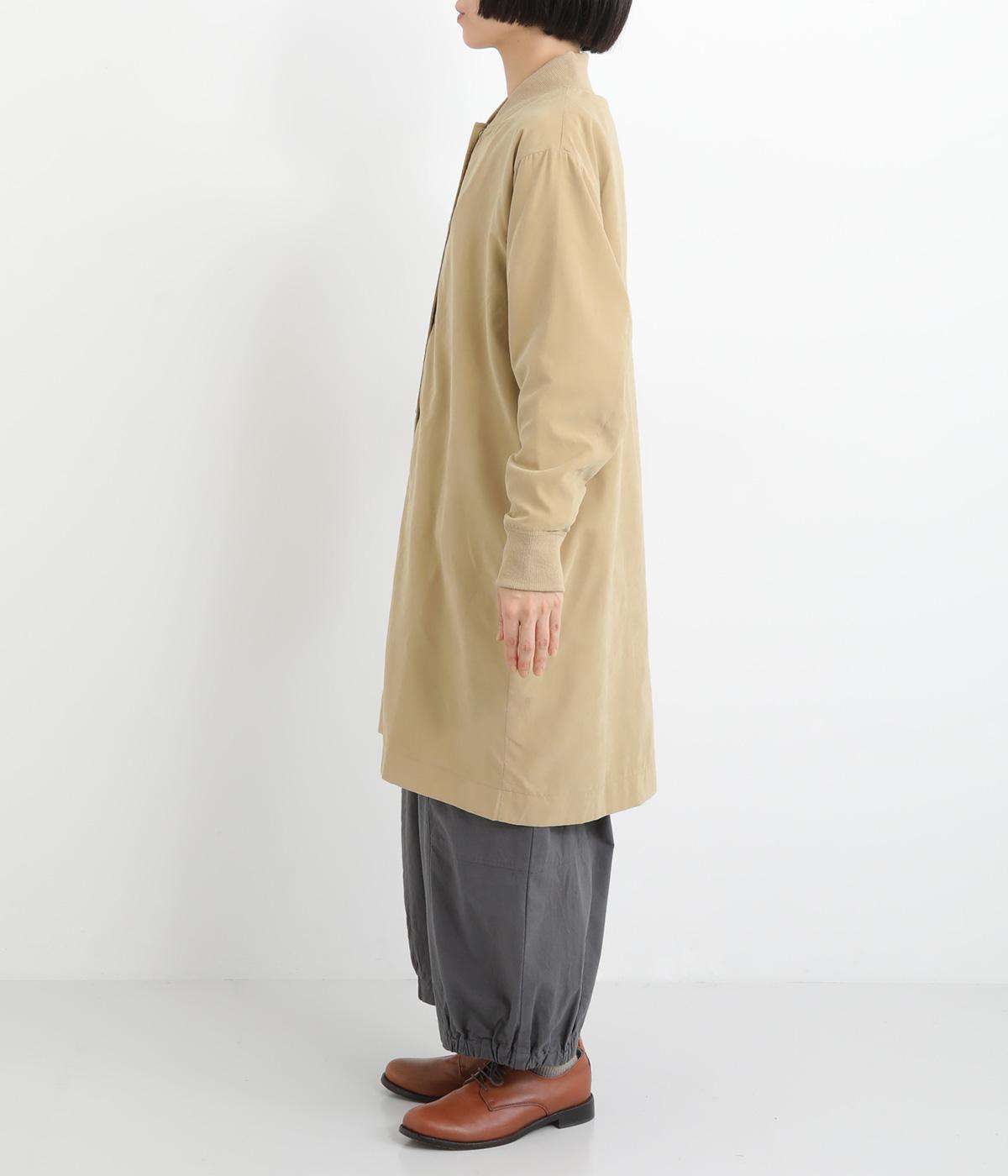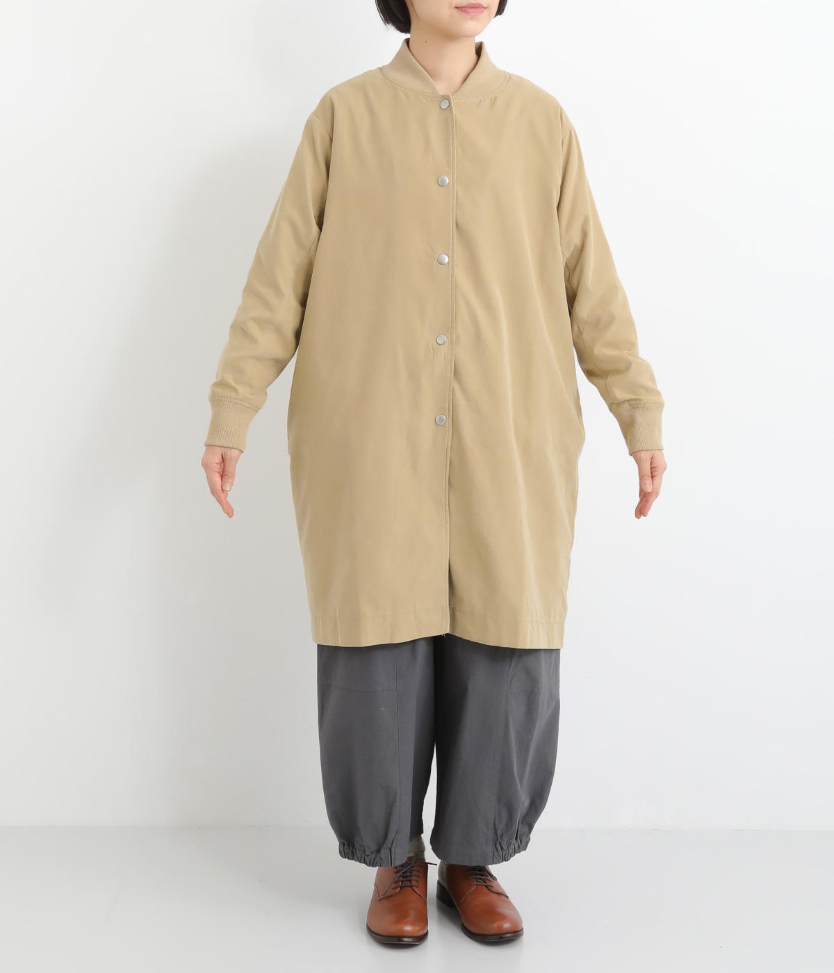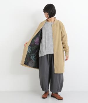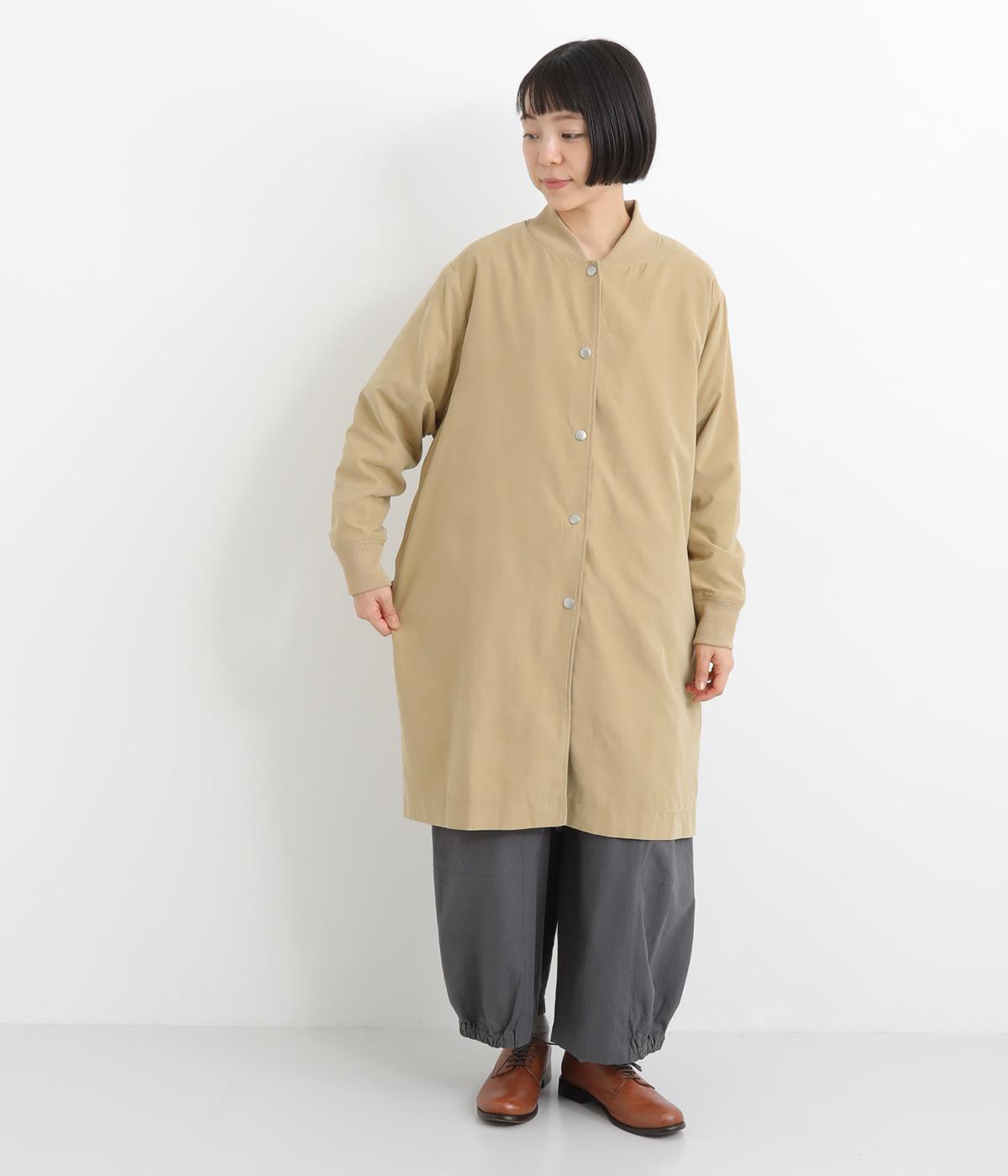 やわらかくなめらかな肌触りが魅力のピーチスキンを使用しています。ほっこりとしたあたたかみがありながらも、薄めの中厚手生地で軽く羽織れます。すべりのいい総裏地で袖の通りもスムーズです。