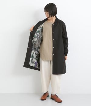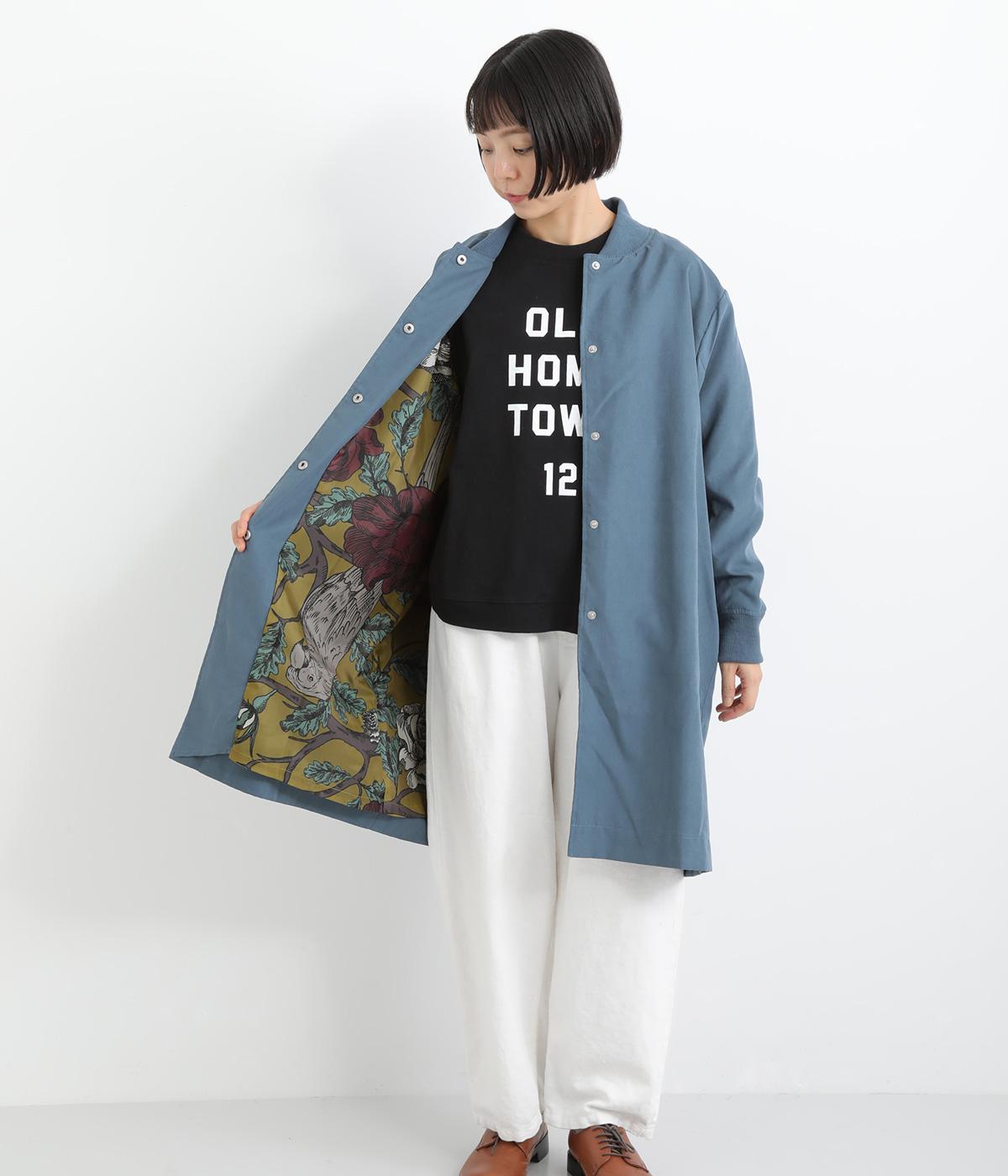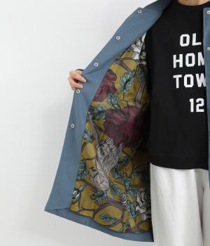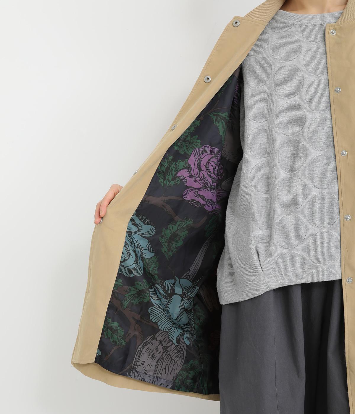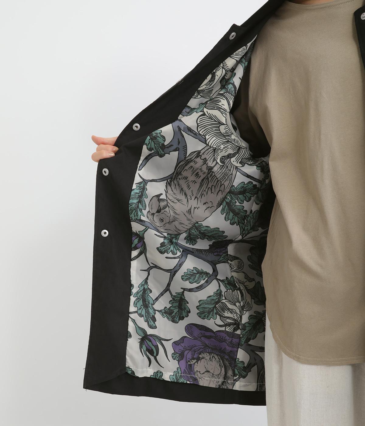 森の動物とお花を大胆にほどこしたプリントの裏生地が、チラリとのぞいてアクセントになるジャケット。襟と袖口のリブ使いでカジュアルに仕上げ、パンツとの相性も抜群。デイリースタイルにラフに羽織れる一着です。