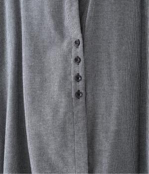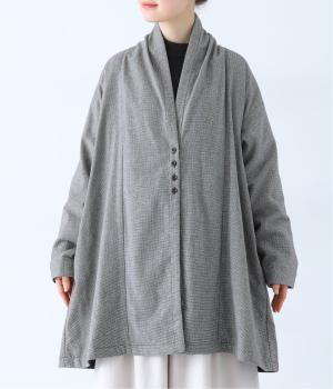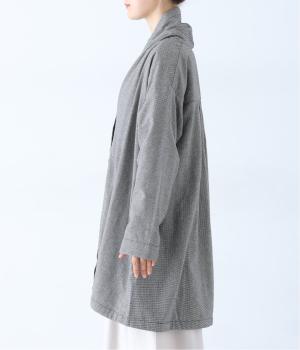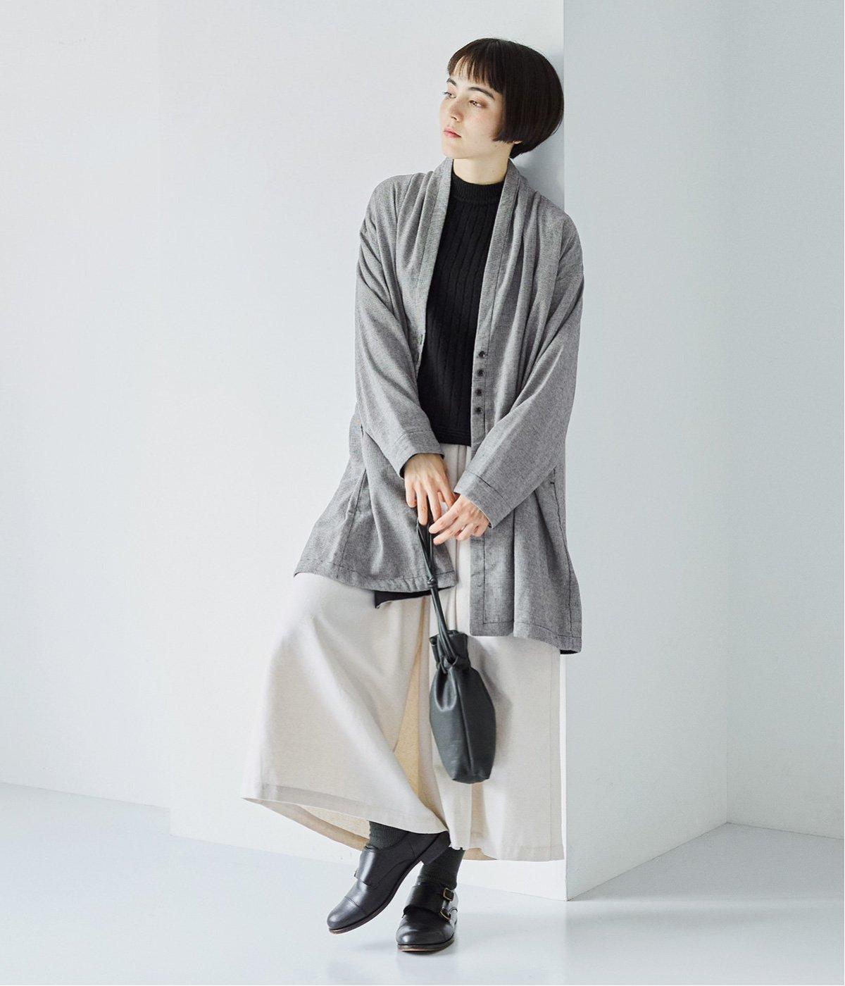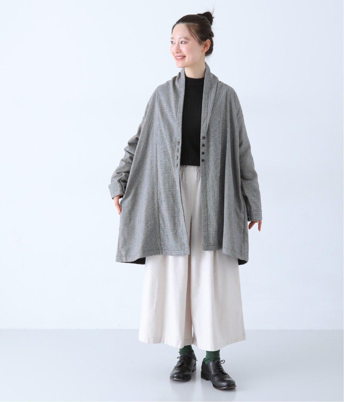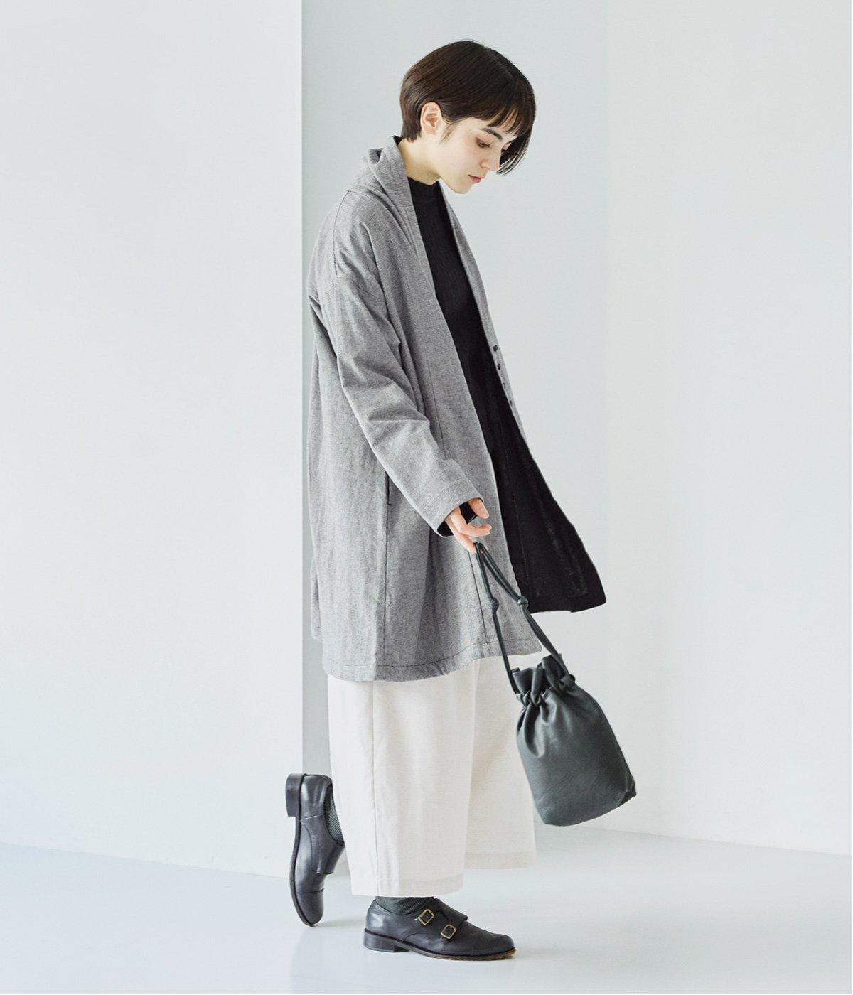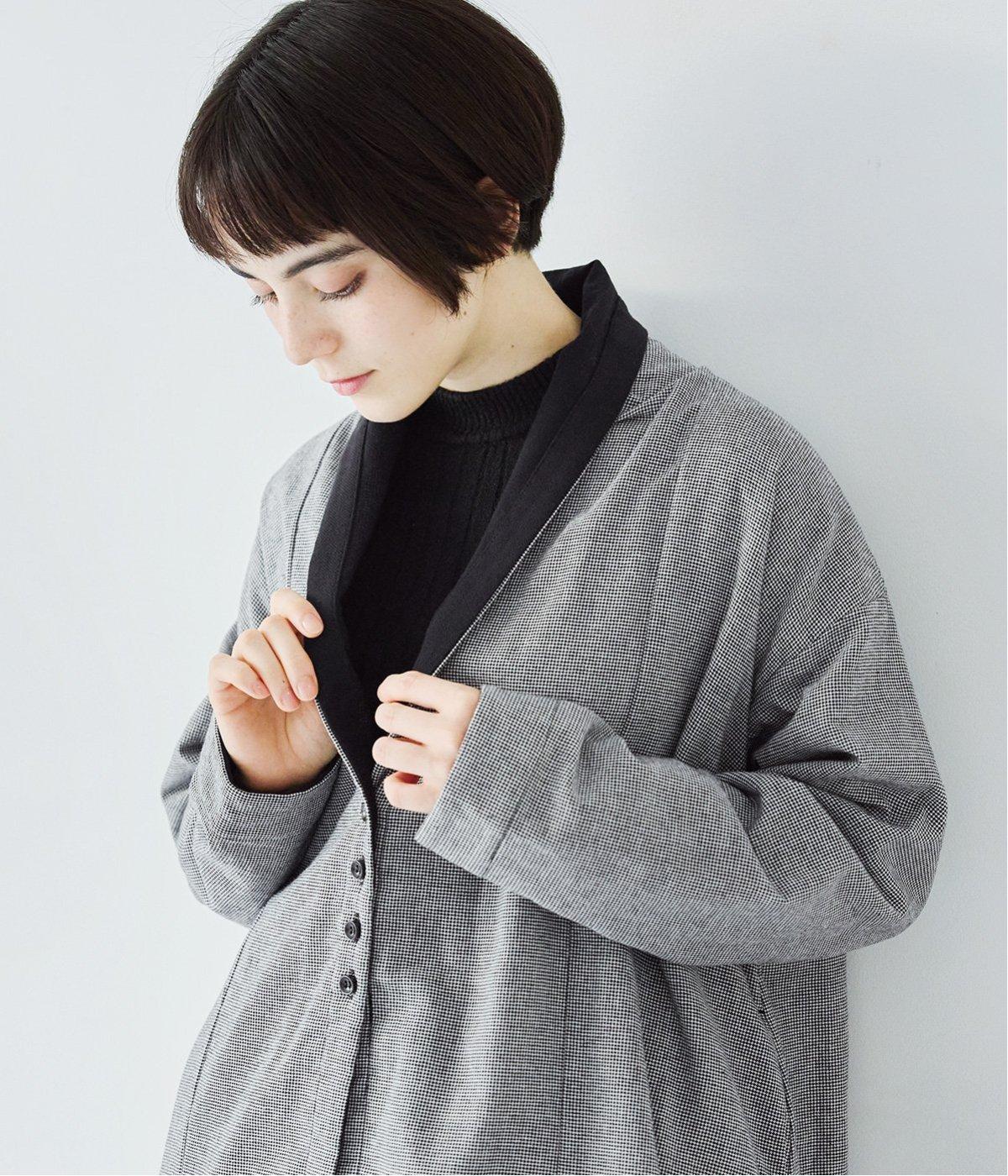 クラシカルで洗練された<千鳥>は、シックなモノトーンスタイルに。インナーやボトムは無地を合わせて、バランスよく上品に仕上げました。ミドル丈でワイドパンツやワンピースとも相性抜群です。