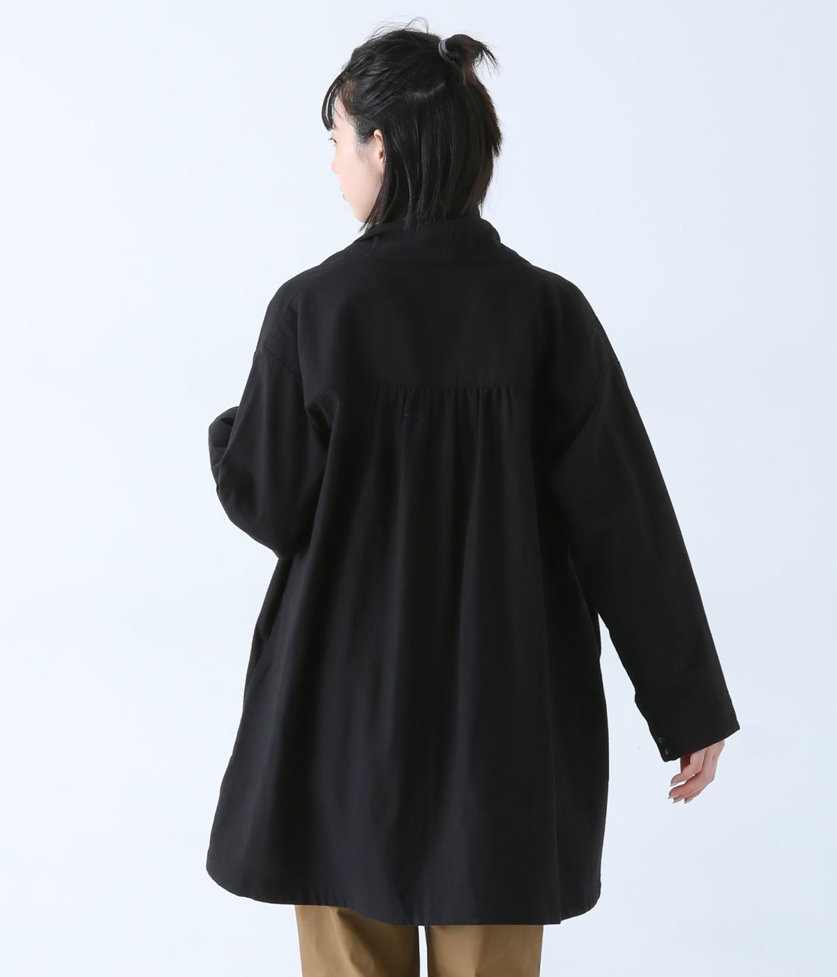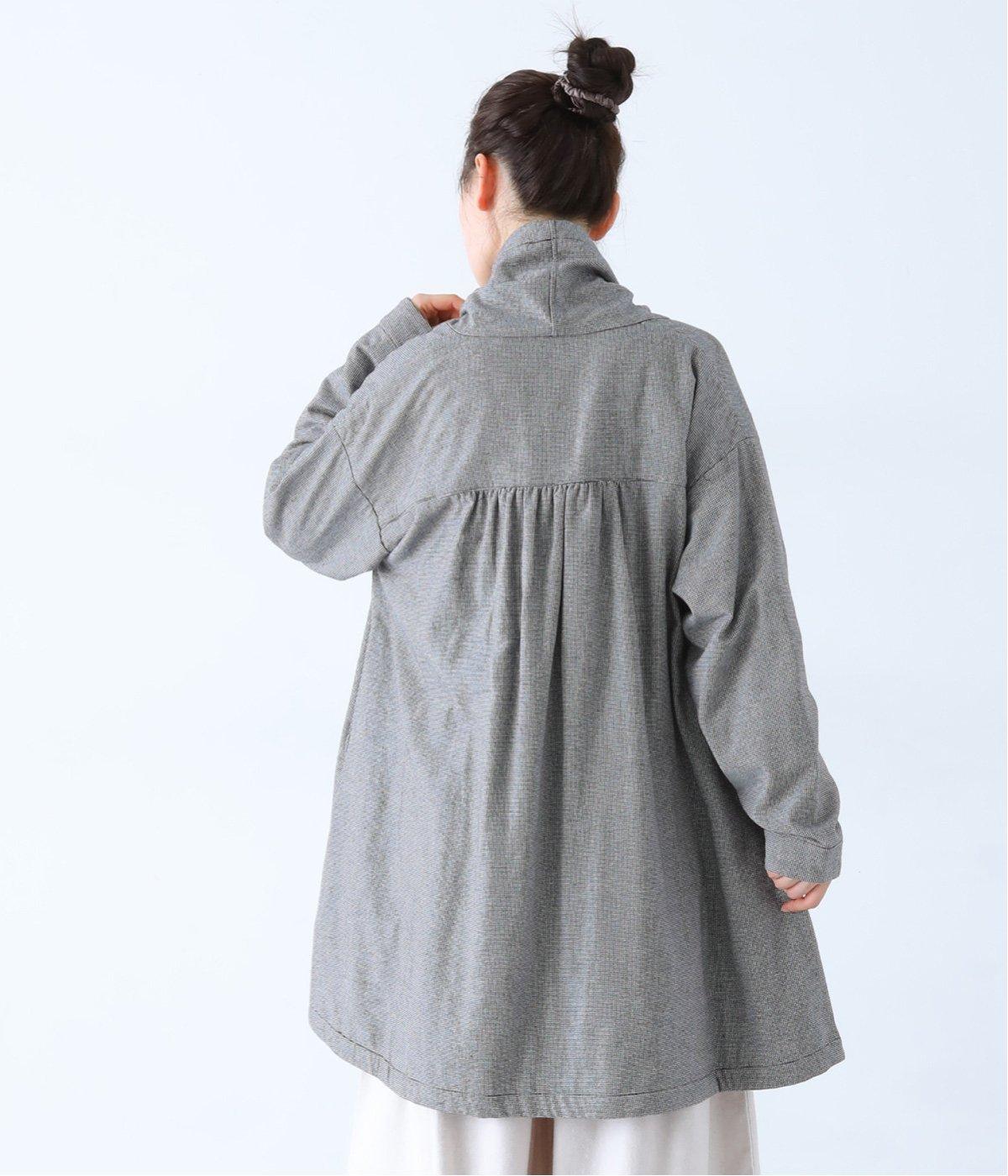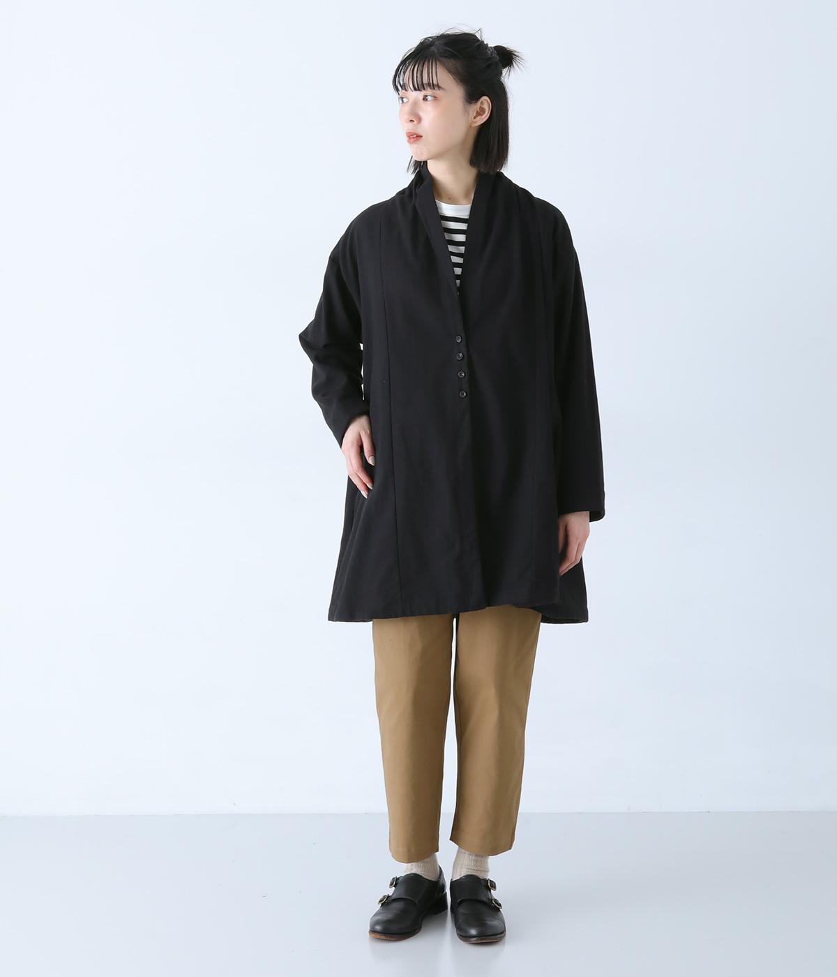 襟のないノーカラーのデザインが、顔周りをすっきりと見せシャープな印象。マフラーやストールを巻いてももたつかず、アレンジが楽しめます。