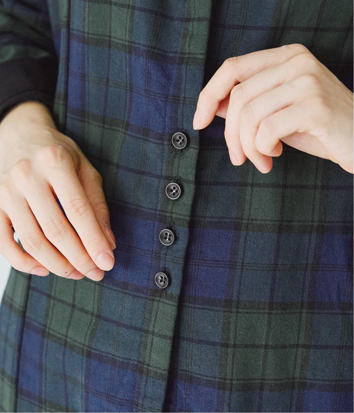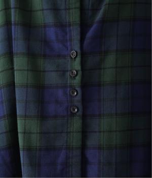ナチュランで人気の高い定番の<ブラックウォッチ>に、デニムのジャンパースカートを合わせたカジュアルスタイル。袖を折り返し、配色を見せてアクセントを加えました。