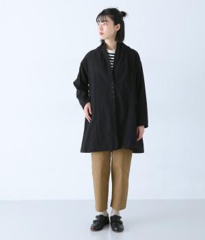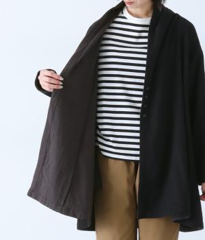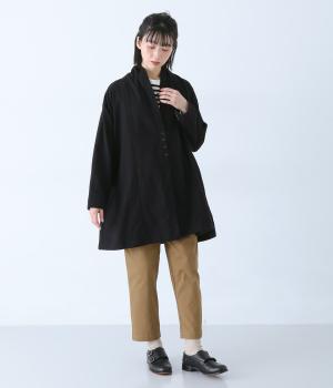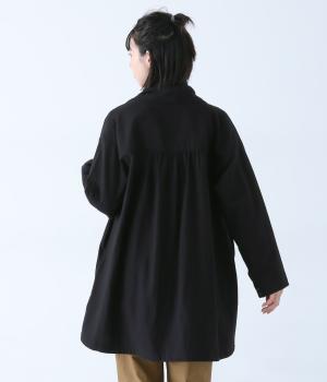 平織りと綾織りの二重織りの生地で仕立てた、ほどよいハリ感とやわらかでしなやかな風合い。やや薄手の生地ながらも保温性があり、軽くて暖かい着心地です。