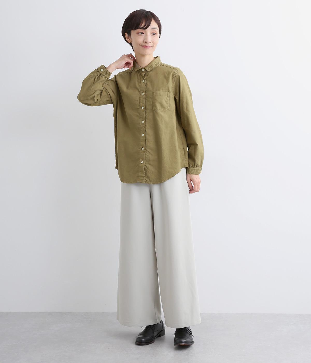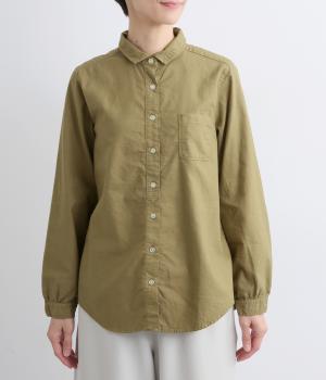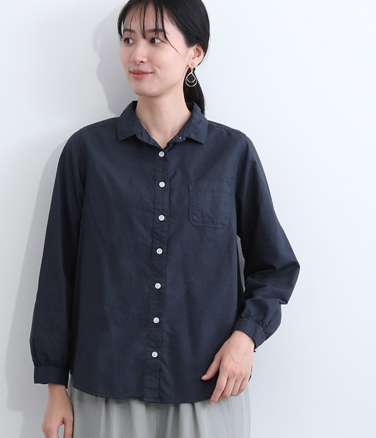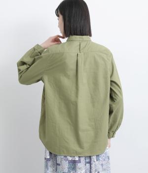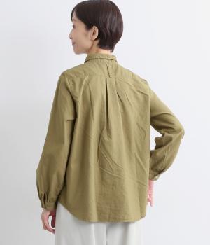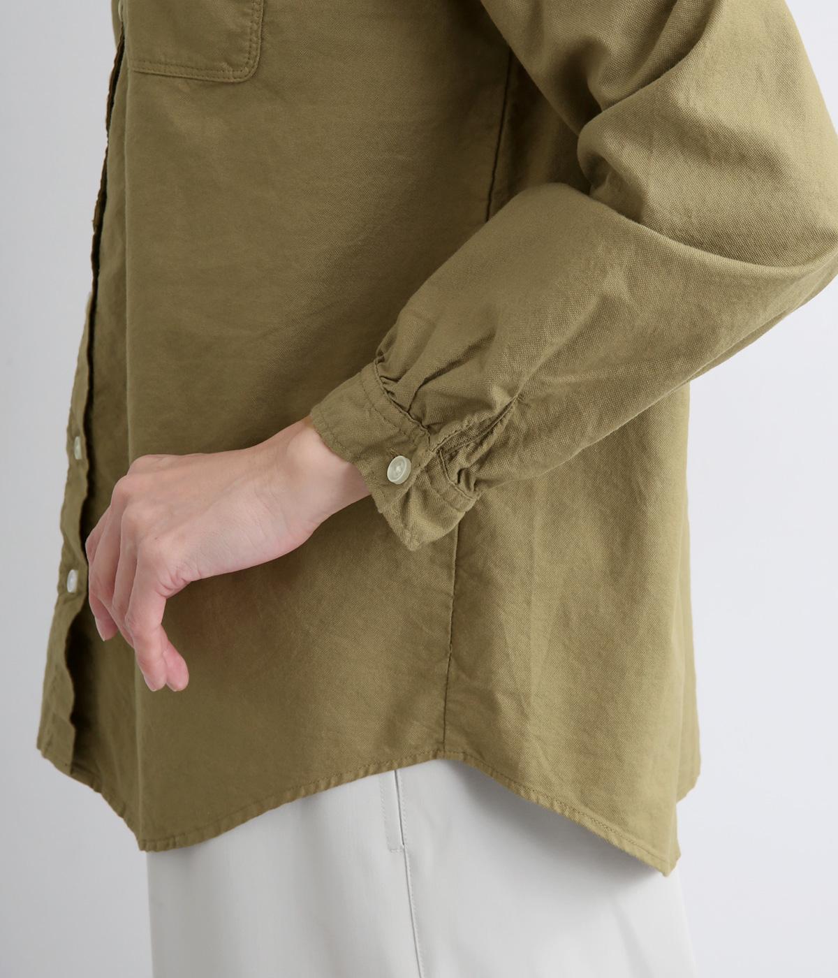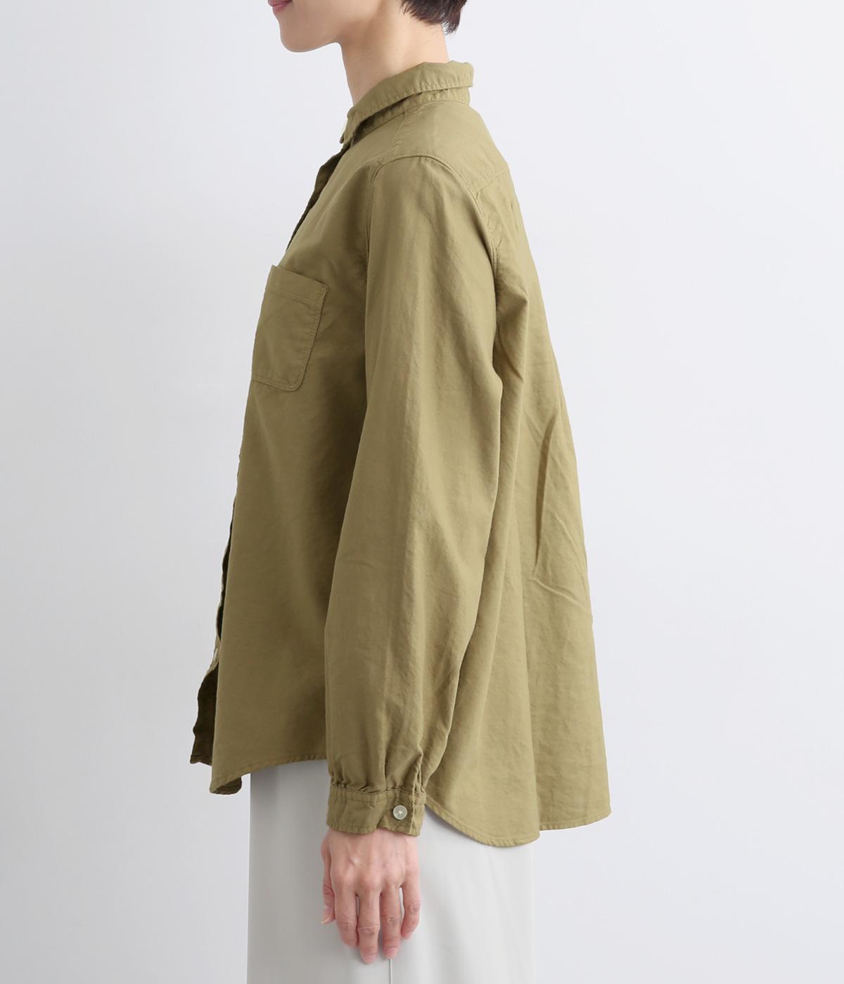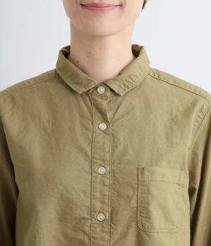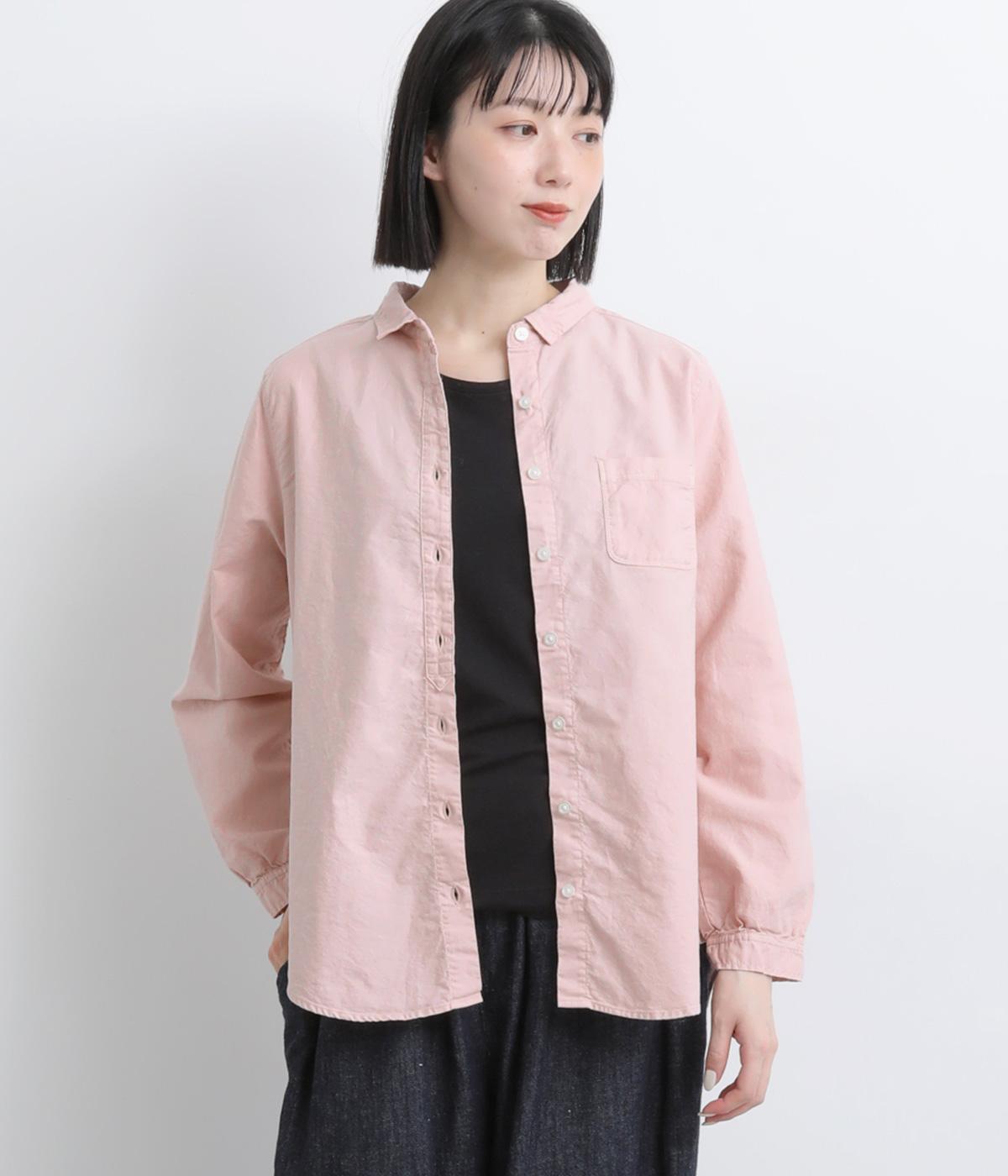 多彩なスタイリングが楽しめるシンプルな襟つきシャツです。前立てのデザインや、後ろのハンガーループなど細かな仕様がポイントに。前あきで羽織りものとしても活躍します。