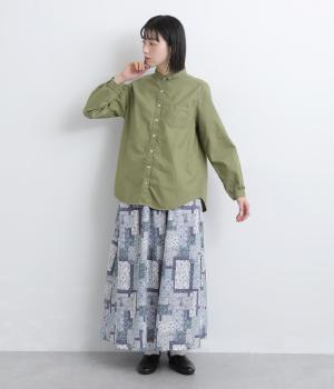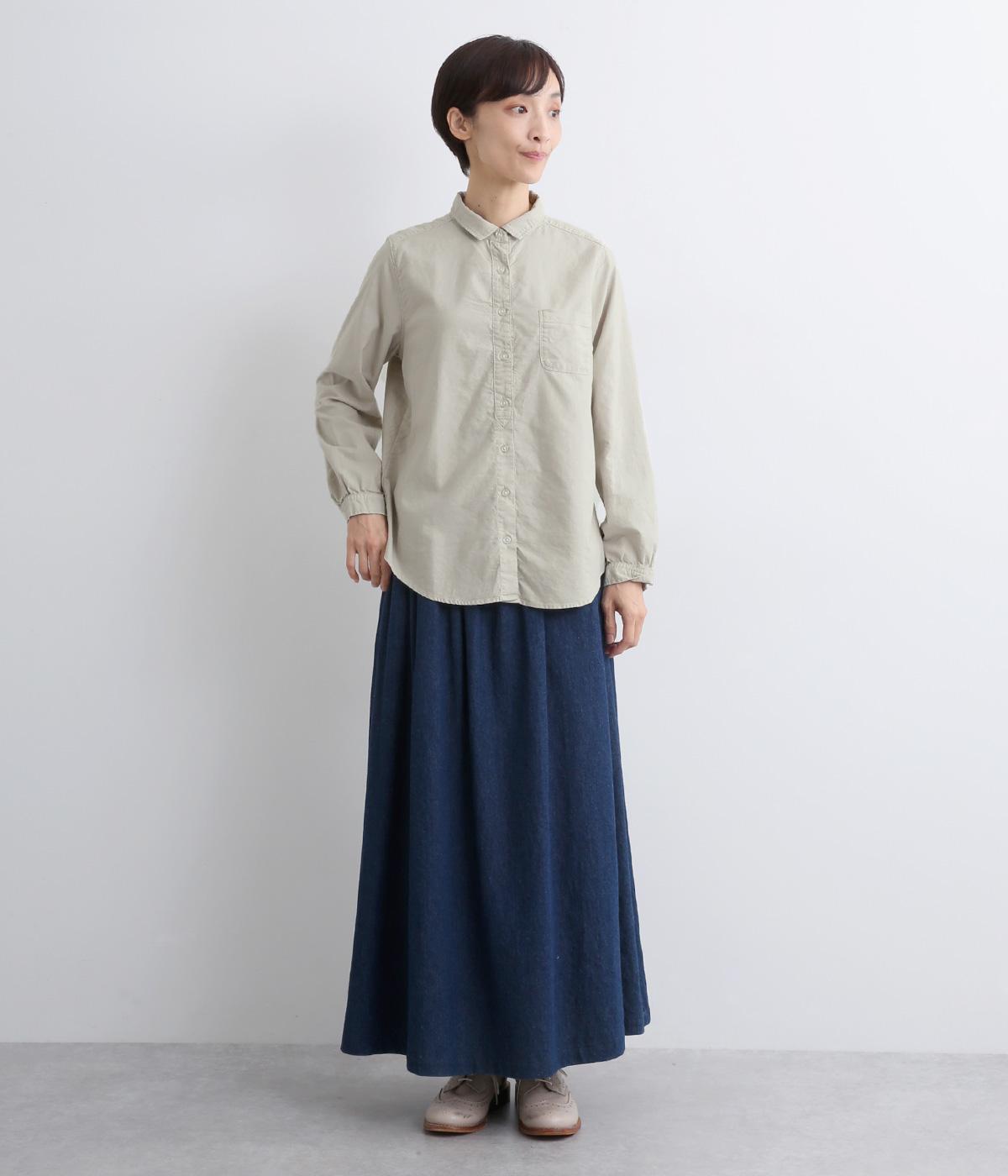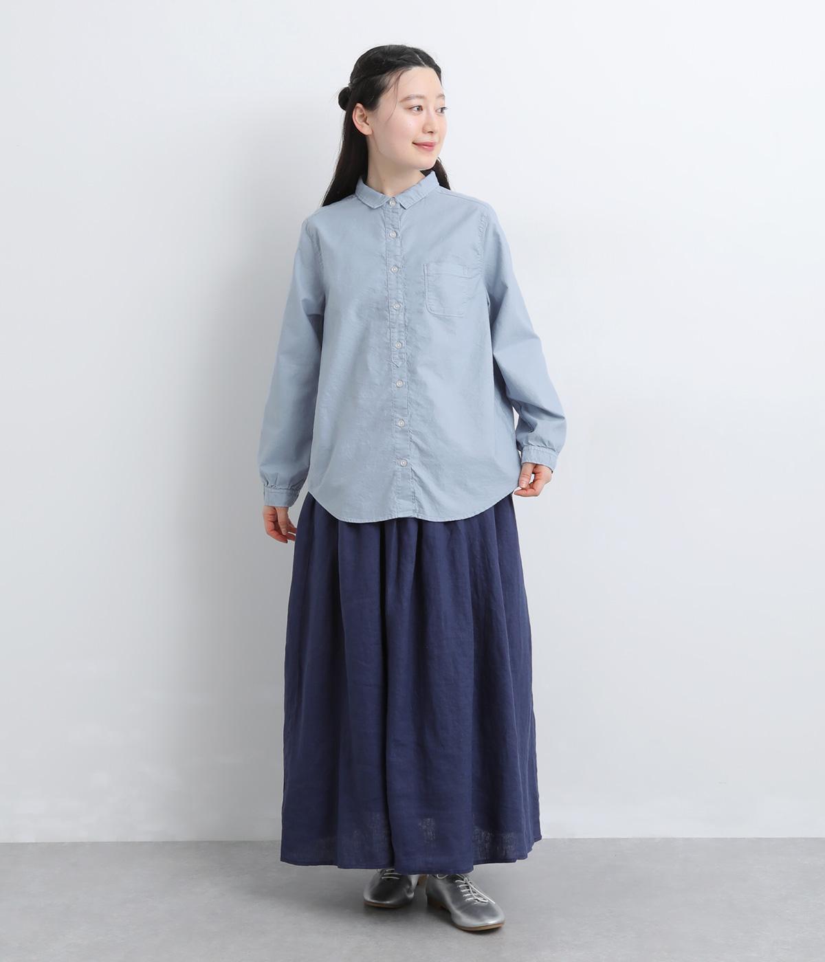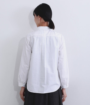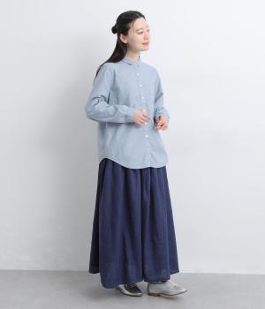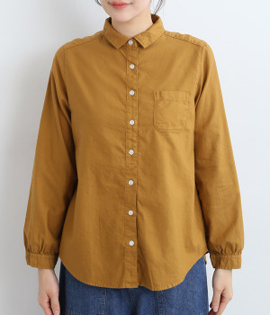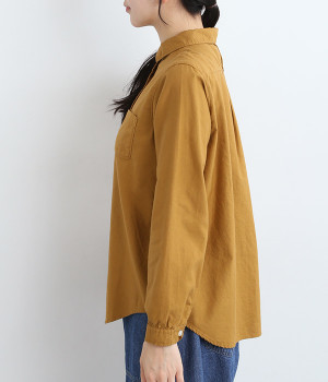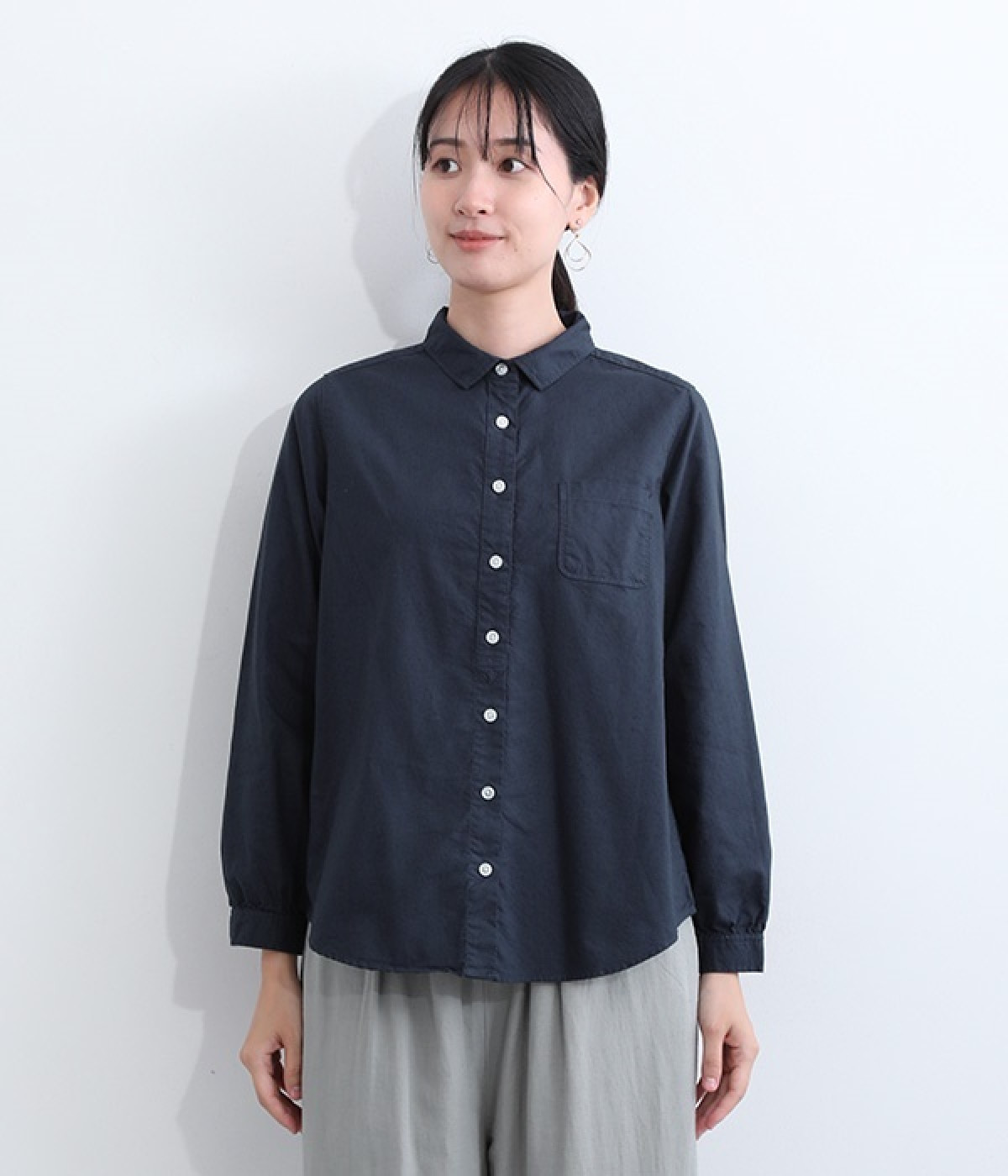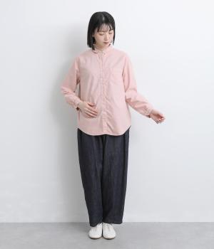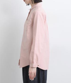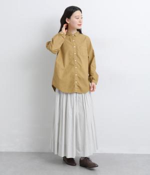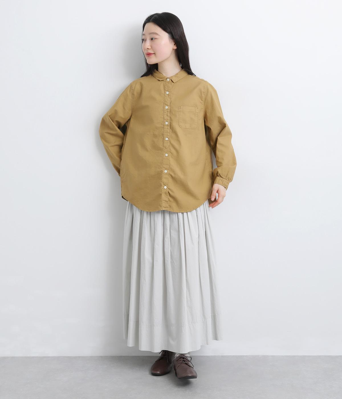 多彩なスタイリングが楽しめるシンプルな襟つきシャツです。前立てのデザインや、後ろのハンガーループなど細かな仕様がポイントに。前あきで羽織りものとしても活躍します。