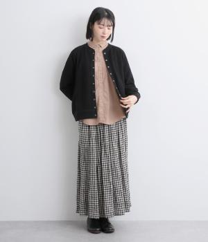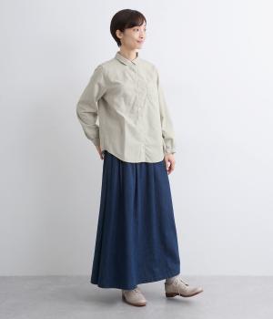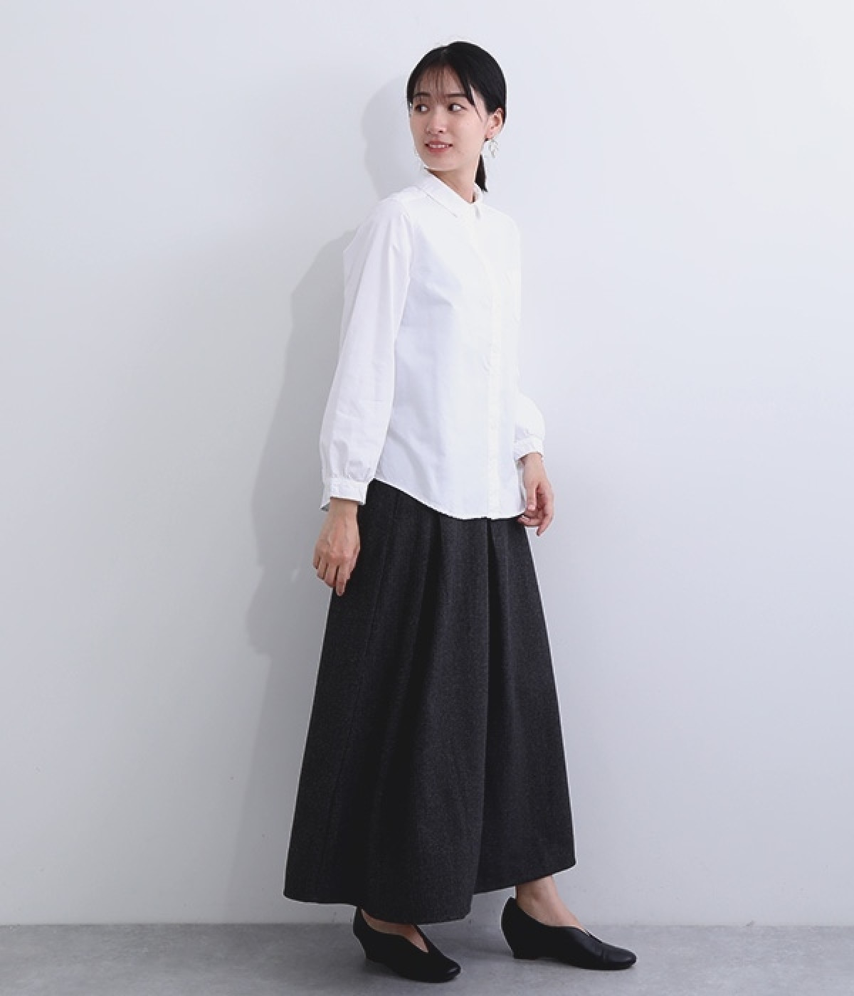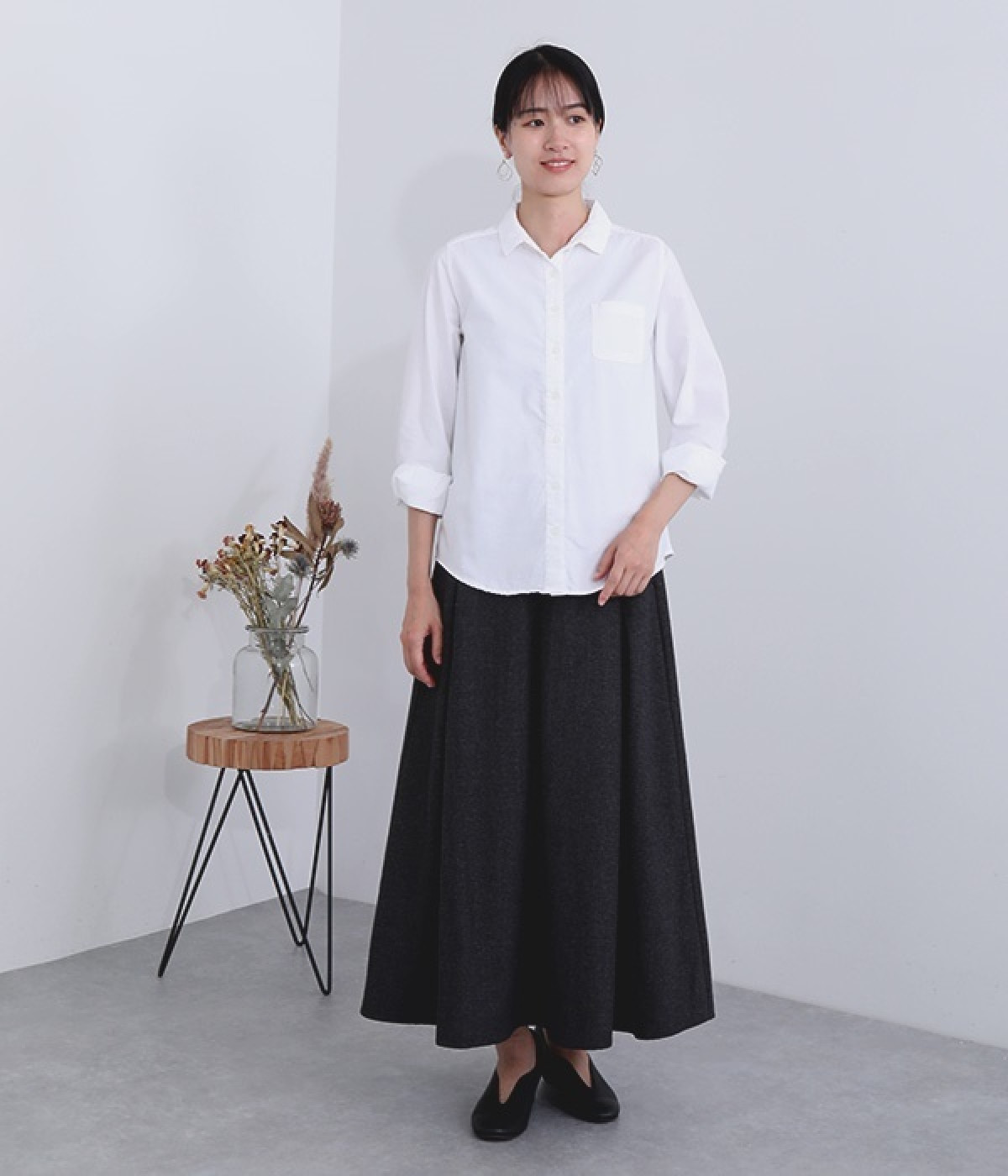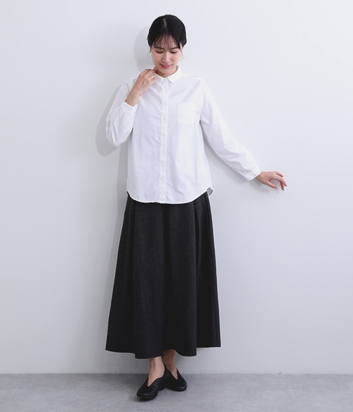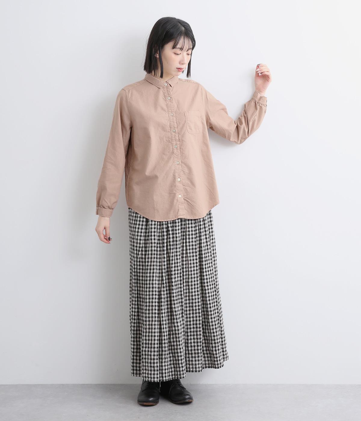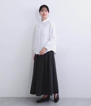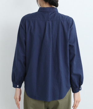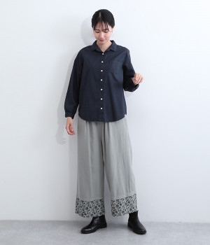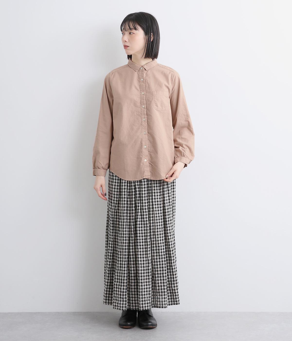 多彩なスタイリングが楽しめるシンプルな襟つきシャツです。前立てのデザインや、後ろのハンガーループなど細かな仕様がポイントに。前あきで羽織りものとしても活躍します。