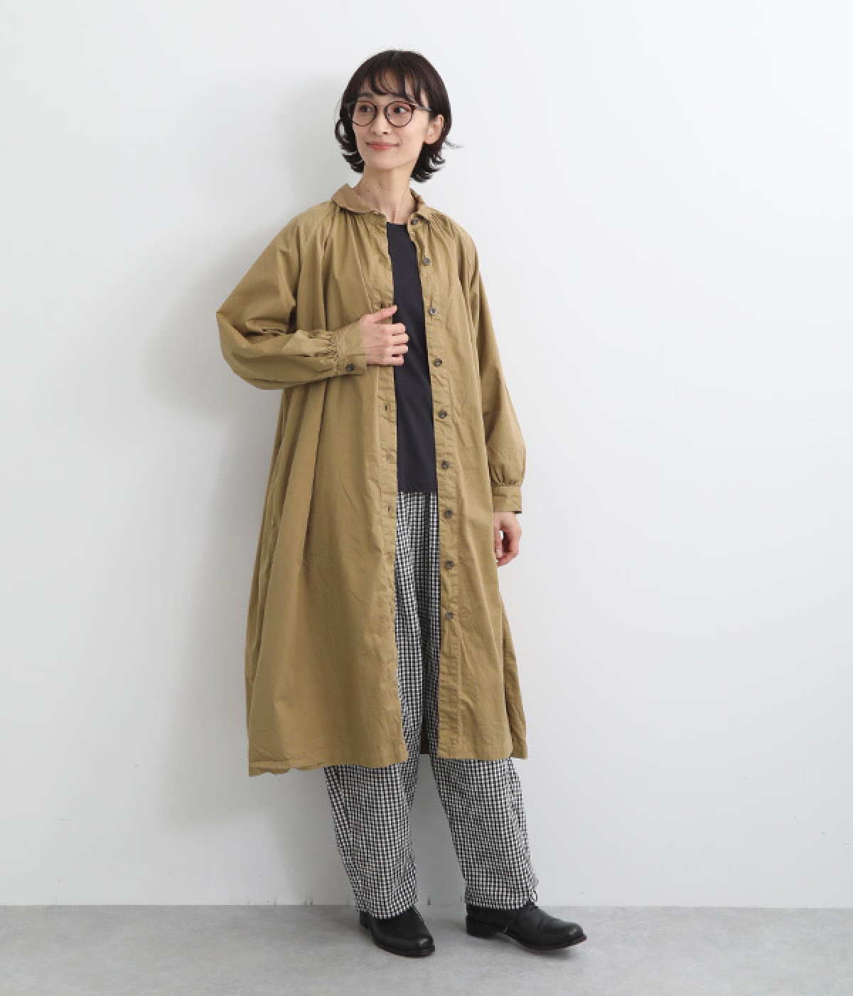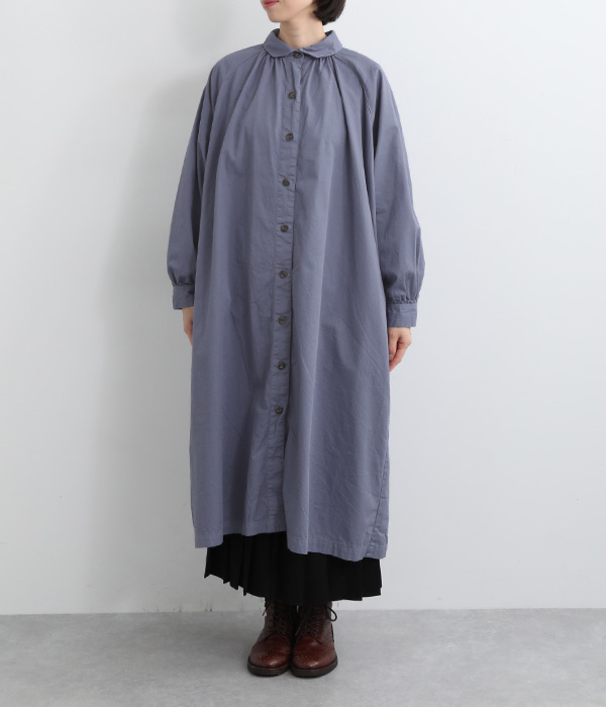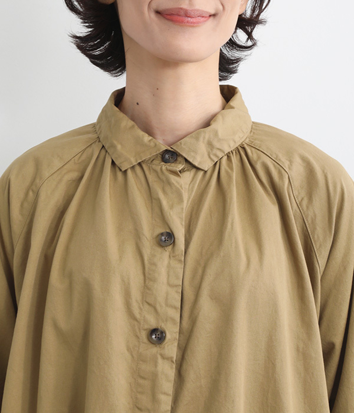 ネックラインのギャザーがアクセントになるAラインシルエット