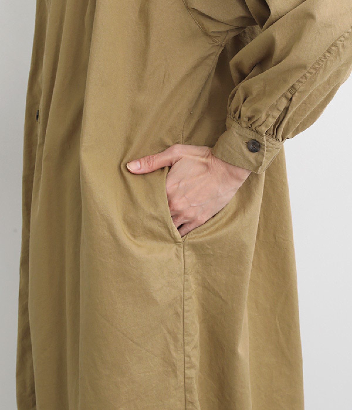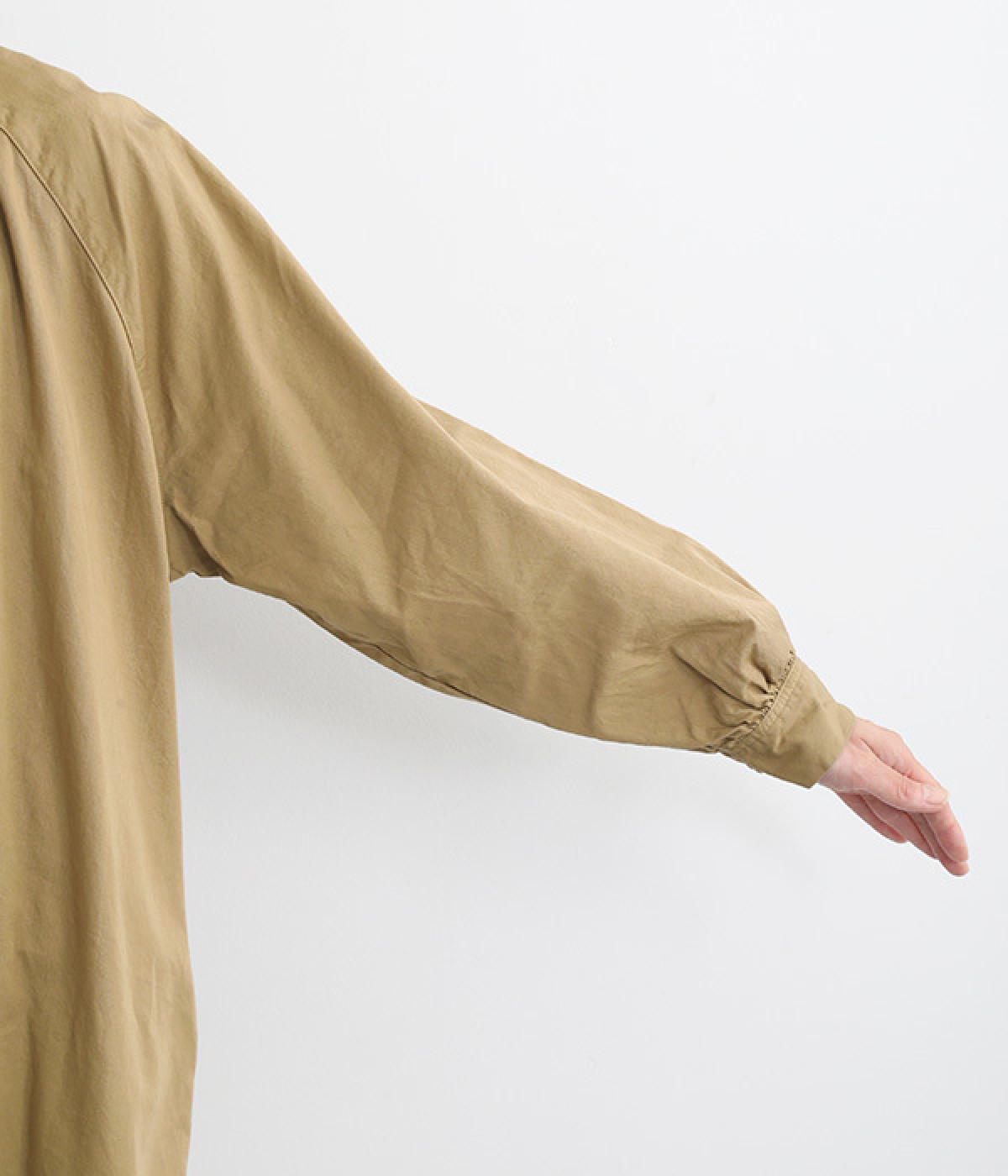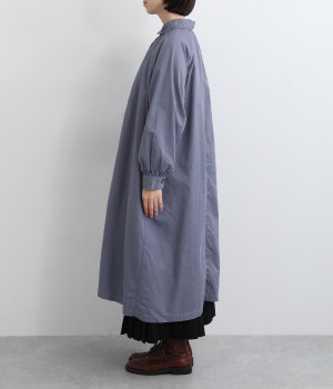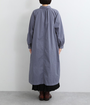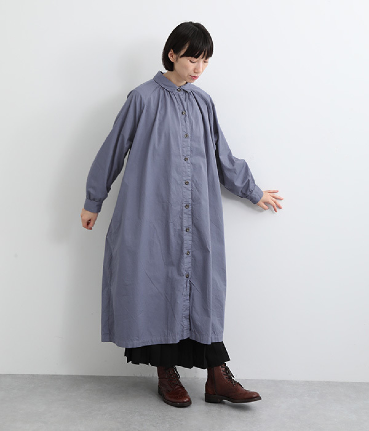 ネックラインのギャザーがアクセントになるAラインシルエット