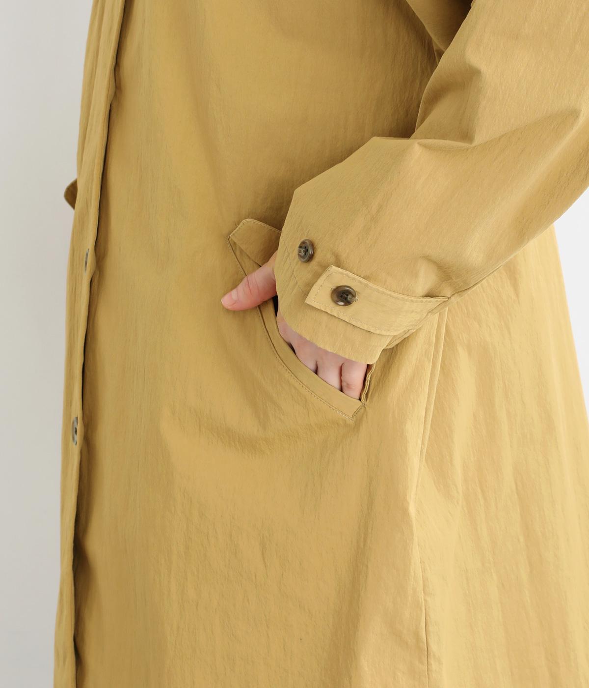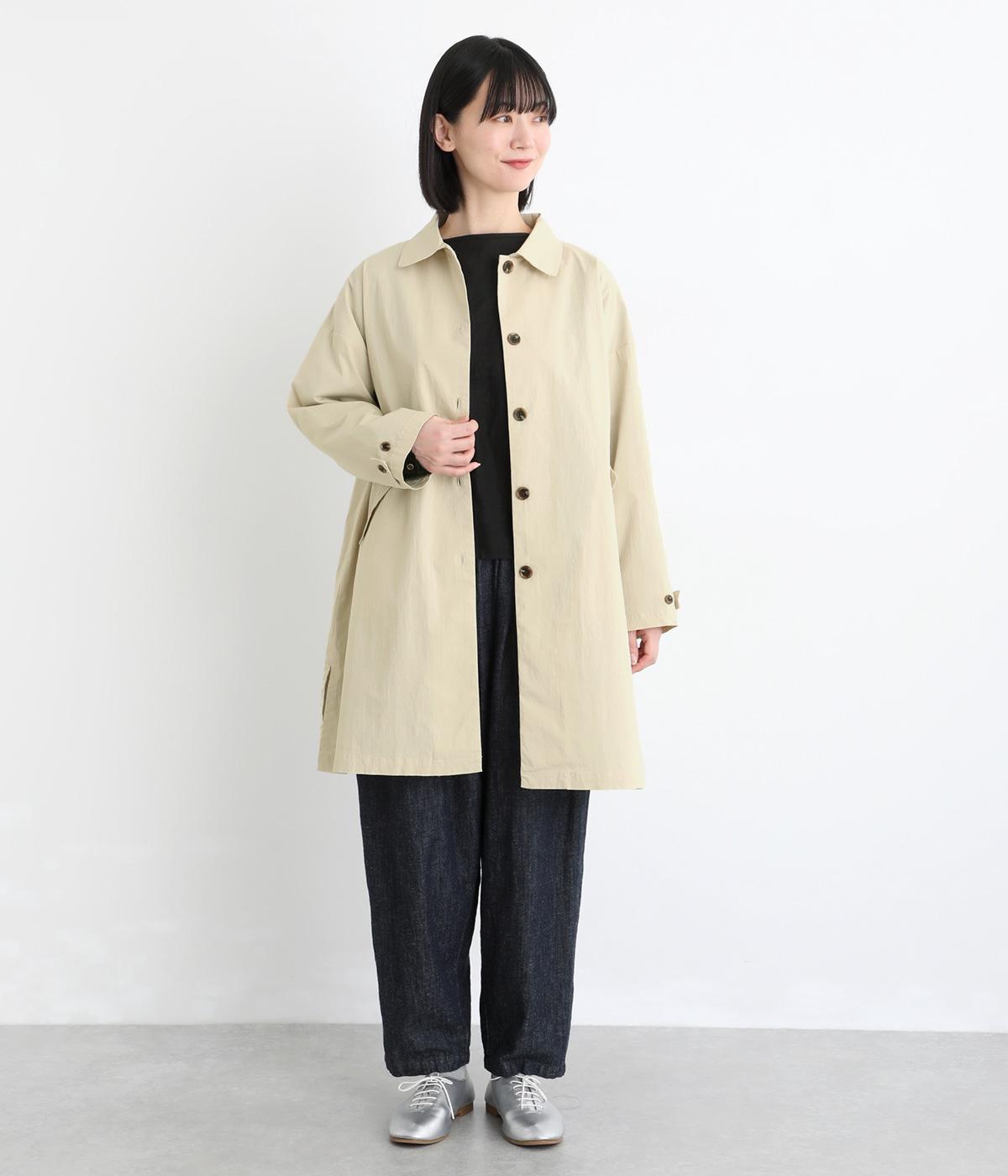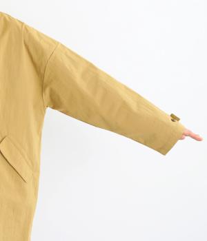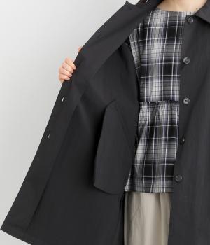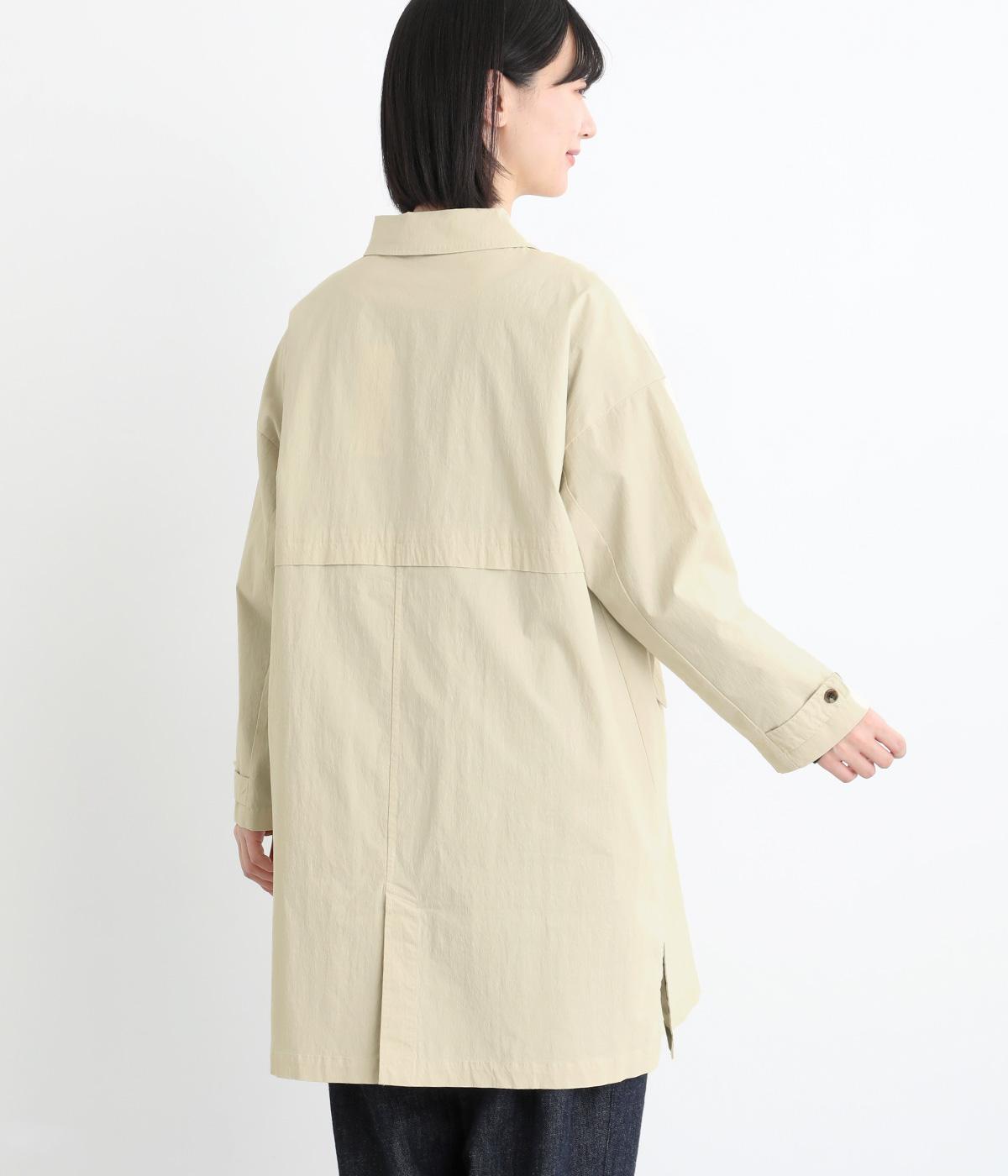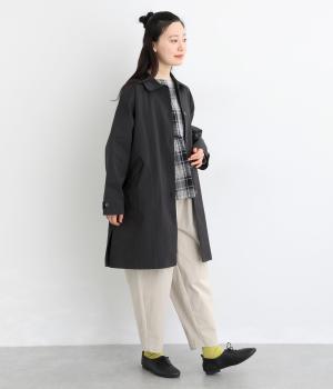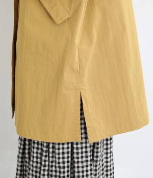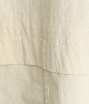 マットな表情のなかに、ほのかなツヤも感じるコットンナイロンツイル。さらりとした肌ざわりでほどよいハリもあり、軽やかに羽織れます。ストレッチがきいているので動きやすさも◎。製品洗いによる自然な風合いが、カジュアルにもきれいめにも寄り添います。
