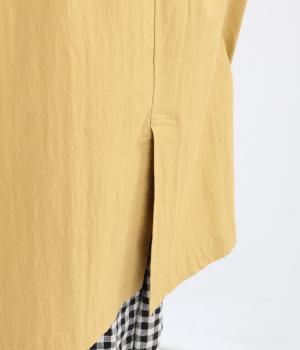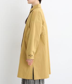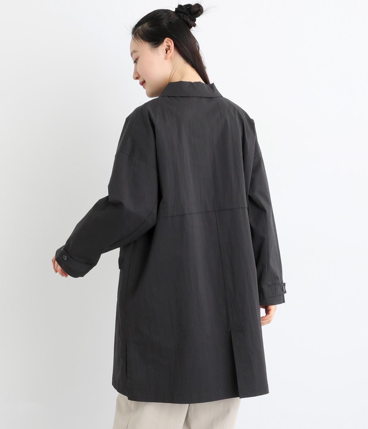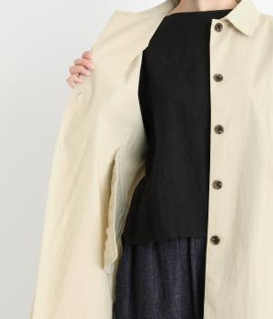 肩が自然に落ちるドロップショルダーと、ゆとりのある身幅がリラックスした着心地を叶える一枚。裾に向かってすとんと広がるワイドシルエットで、体のラインを拾いにくいのも魅力です。角丸の襟やうしろのヨーク切り替え、サイドスリット、フラップポケットなど、さり気ないディテールが全体を上品にまとめています。