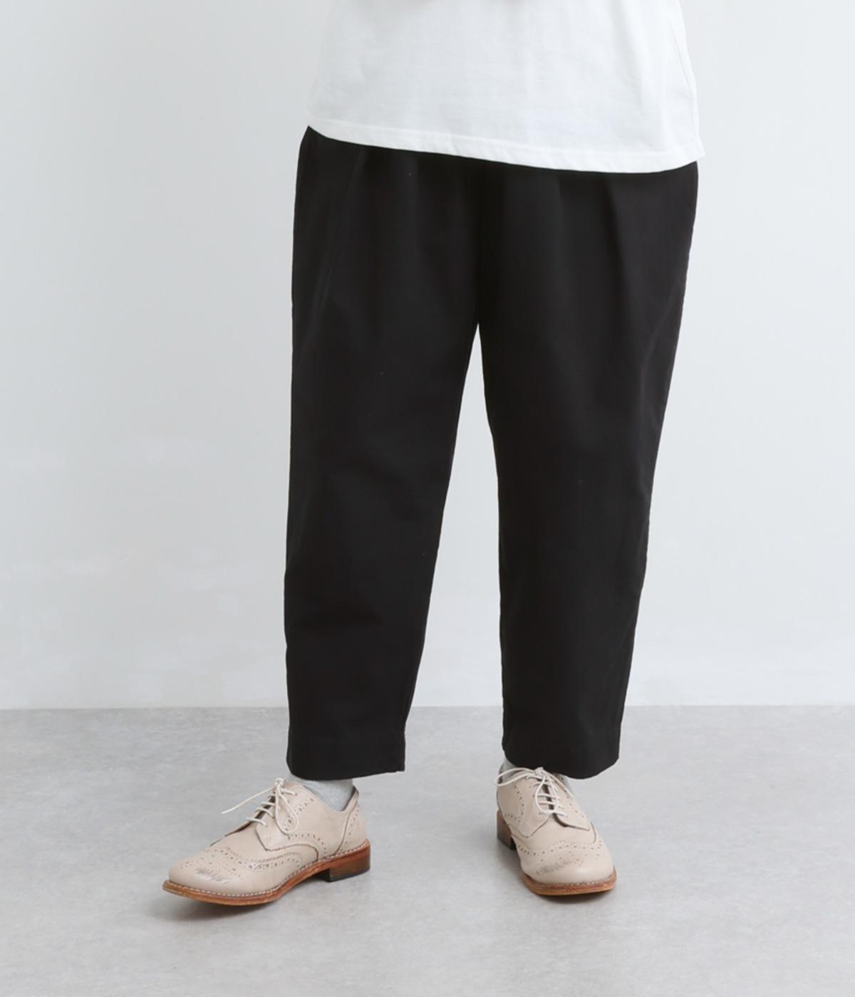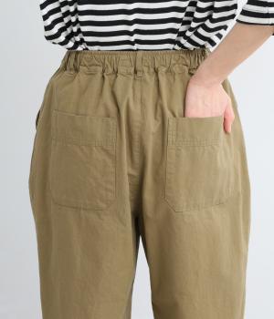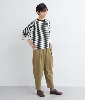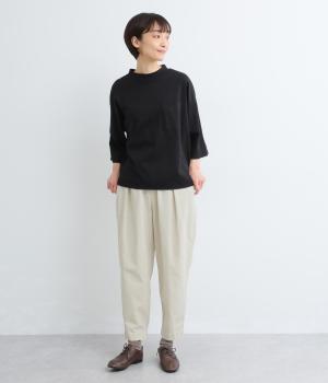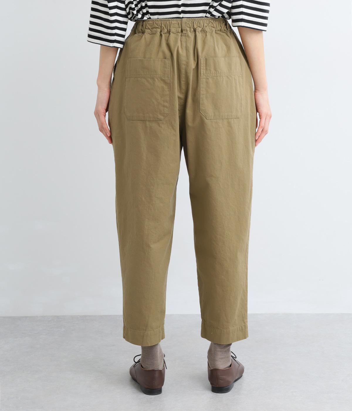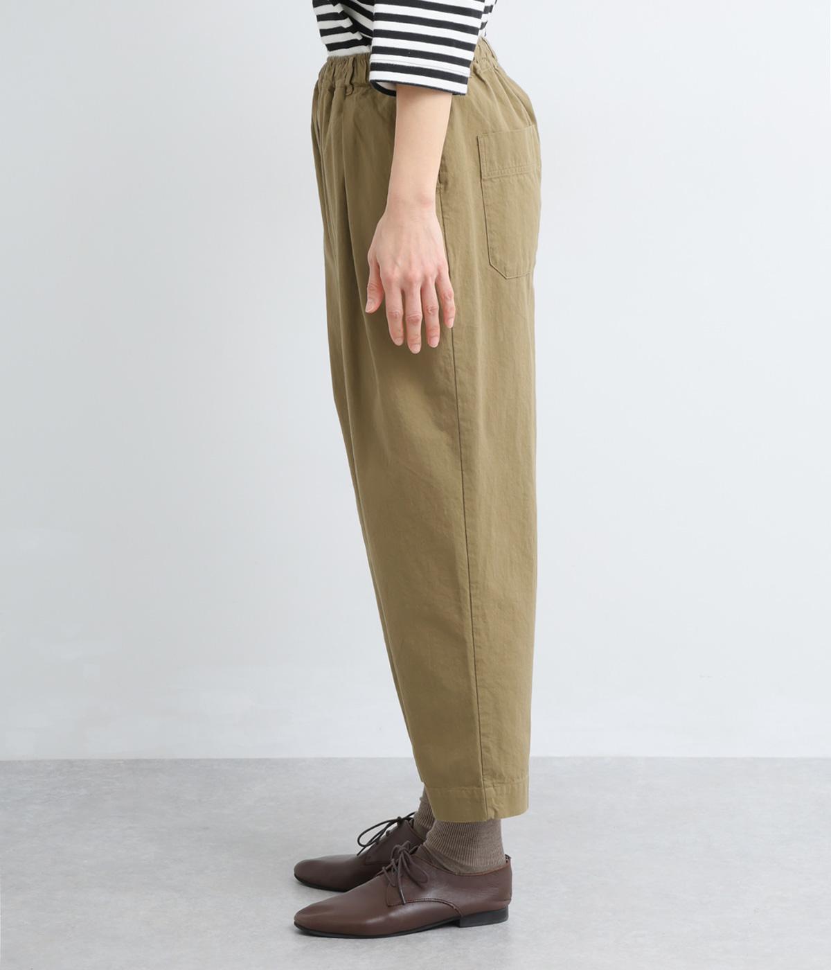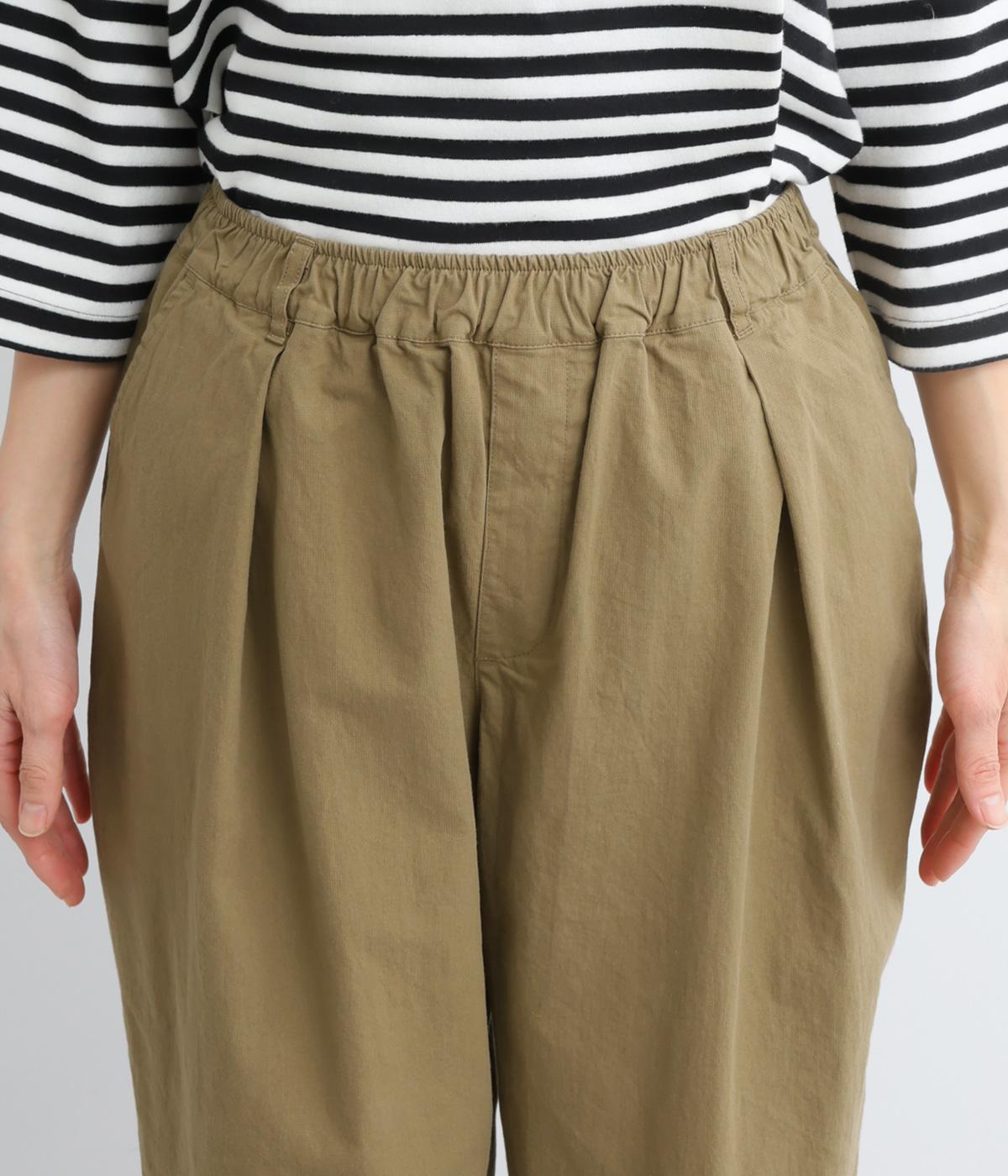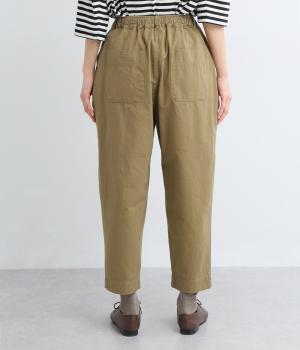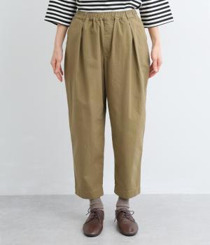 タックを入れてヒップまわりはゆとりを、裾に向かってすっきりと仕上げたテーパードパンツ。足首がのぞく丈感もポイントで、ボリュームトップスやレイヤードスタイルにもバランスよく合わせられます。ウエスト総ゴム&内紐入りです。