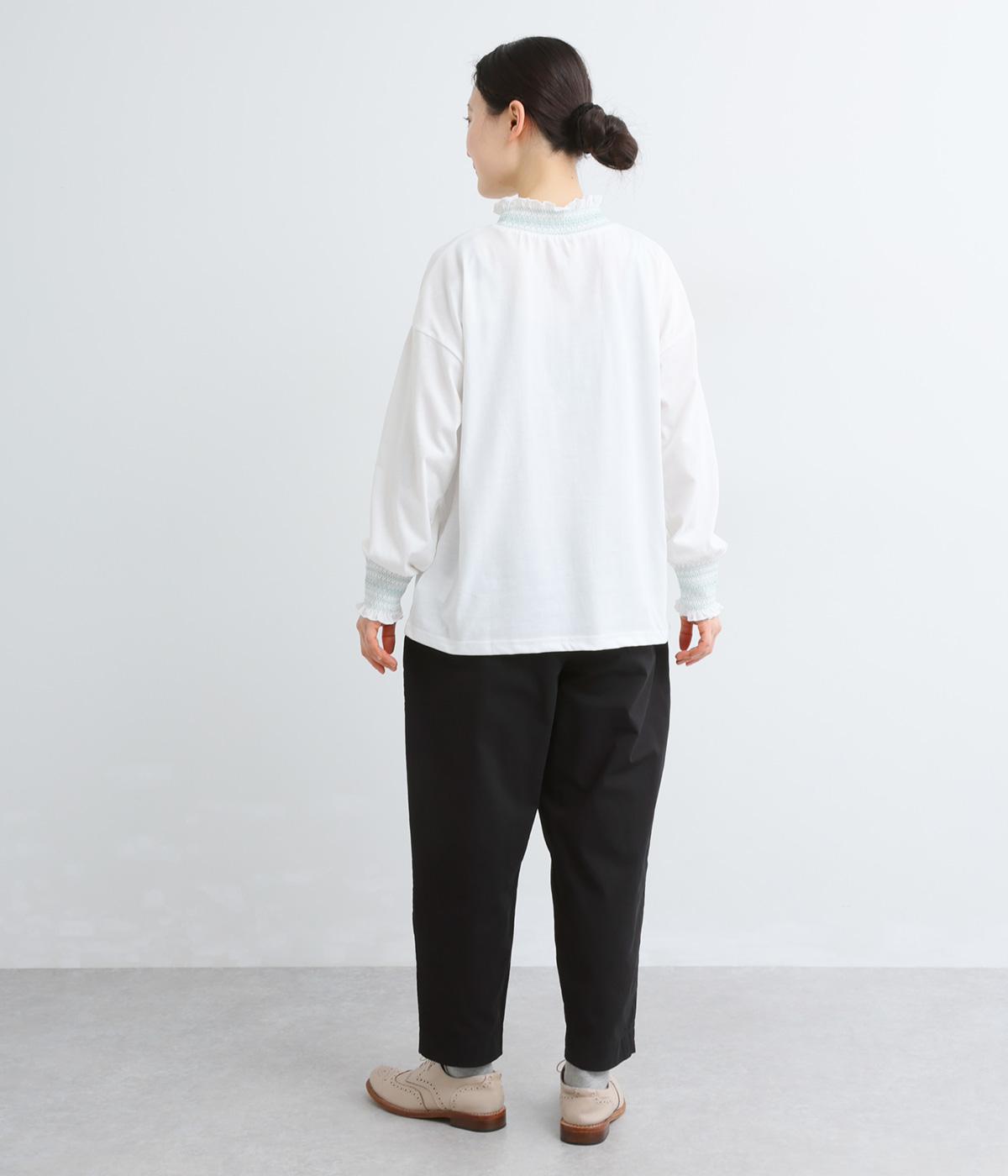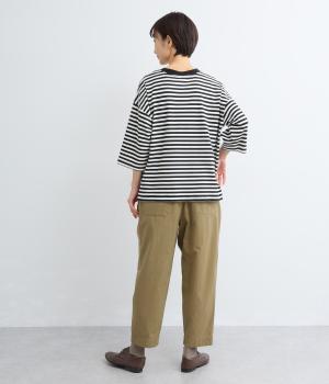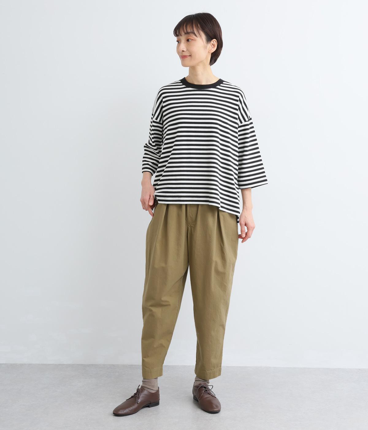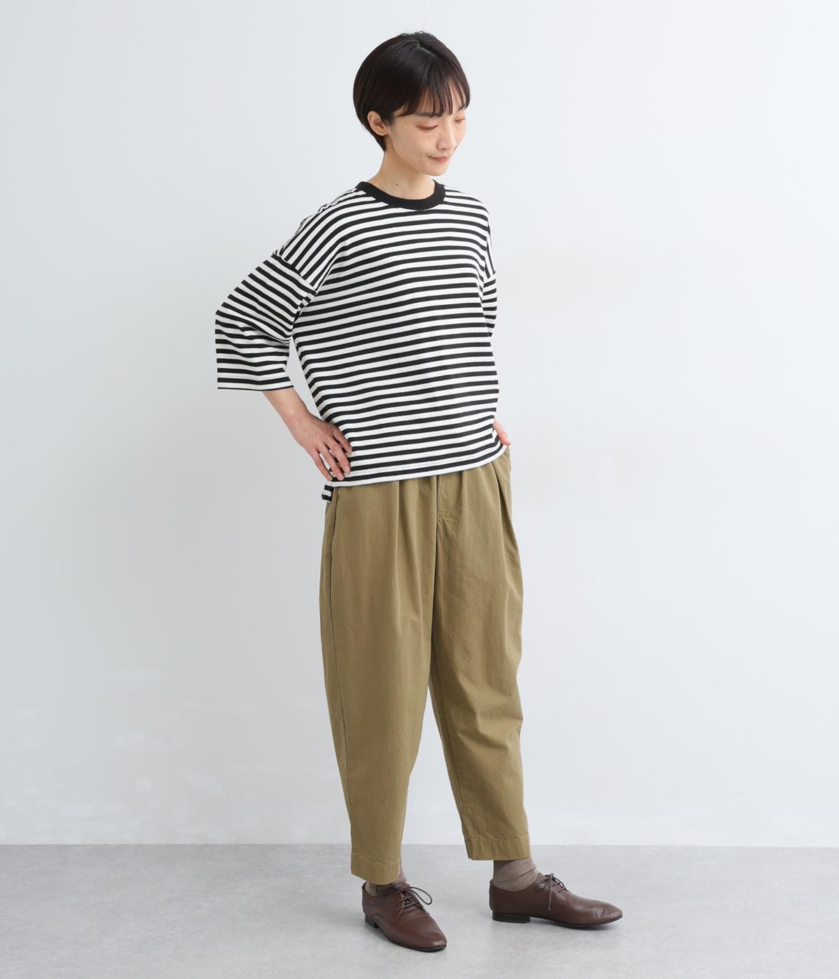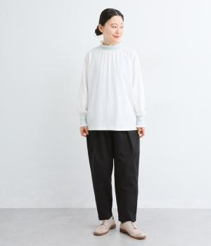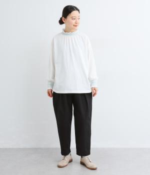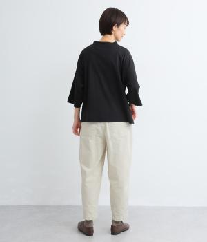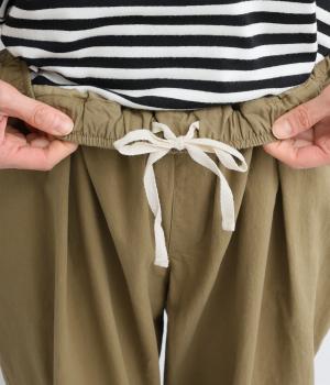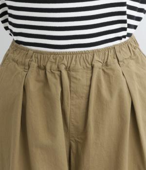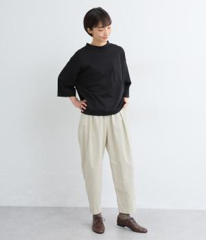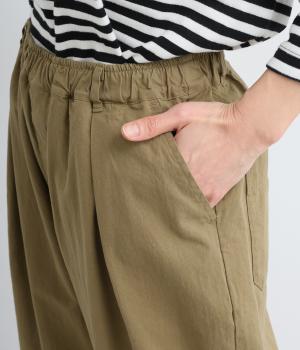 タックを入れてヒップまわりはゆとりを、裾に向かってすっきりと仕上げたテーパードパンツ。足首がのぞく丈感もポイントで、ボリュームトップスやレイヤードスタイルにもバランスよく合わせられます。ウエスト総ゴム&内紐入りです。