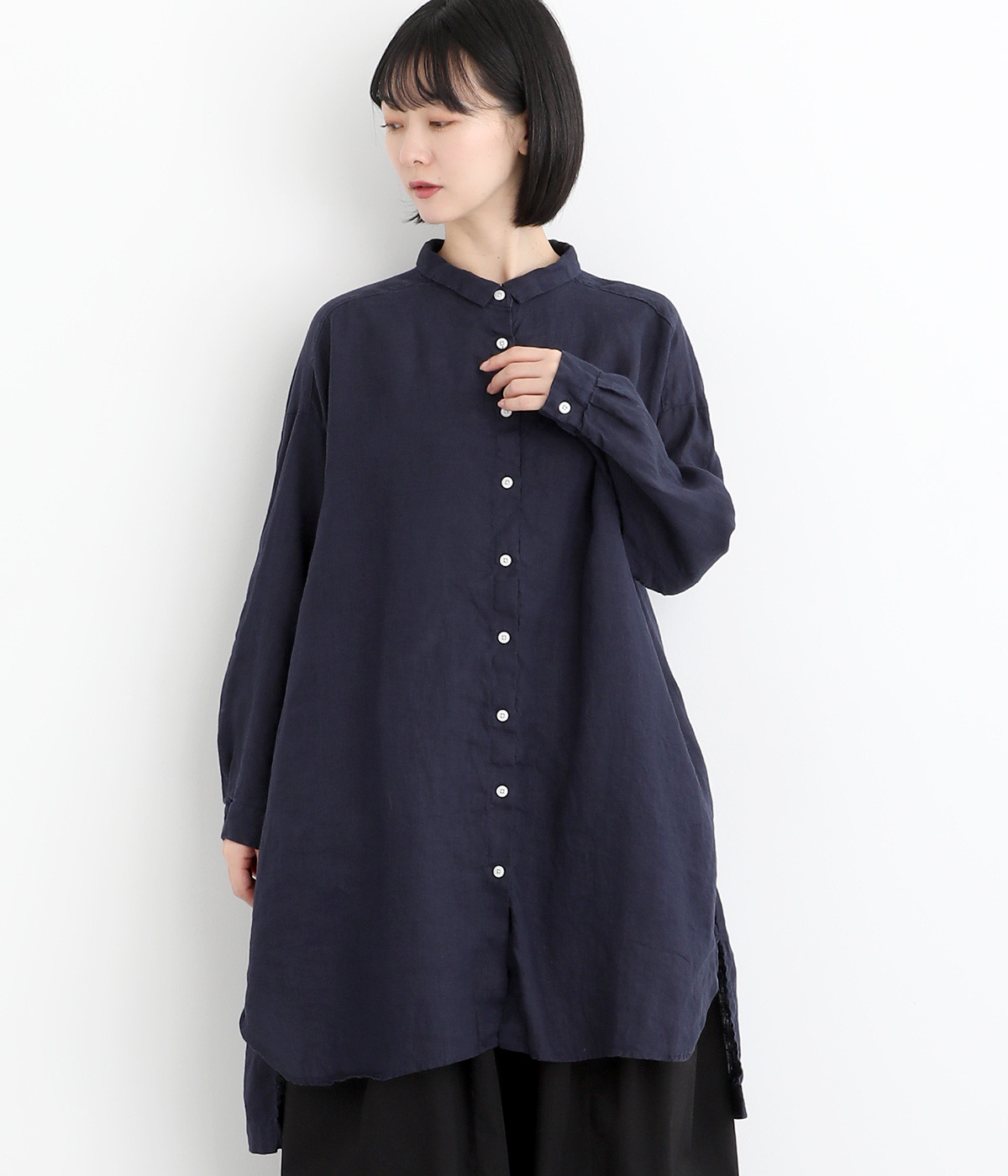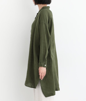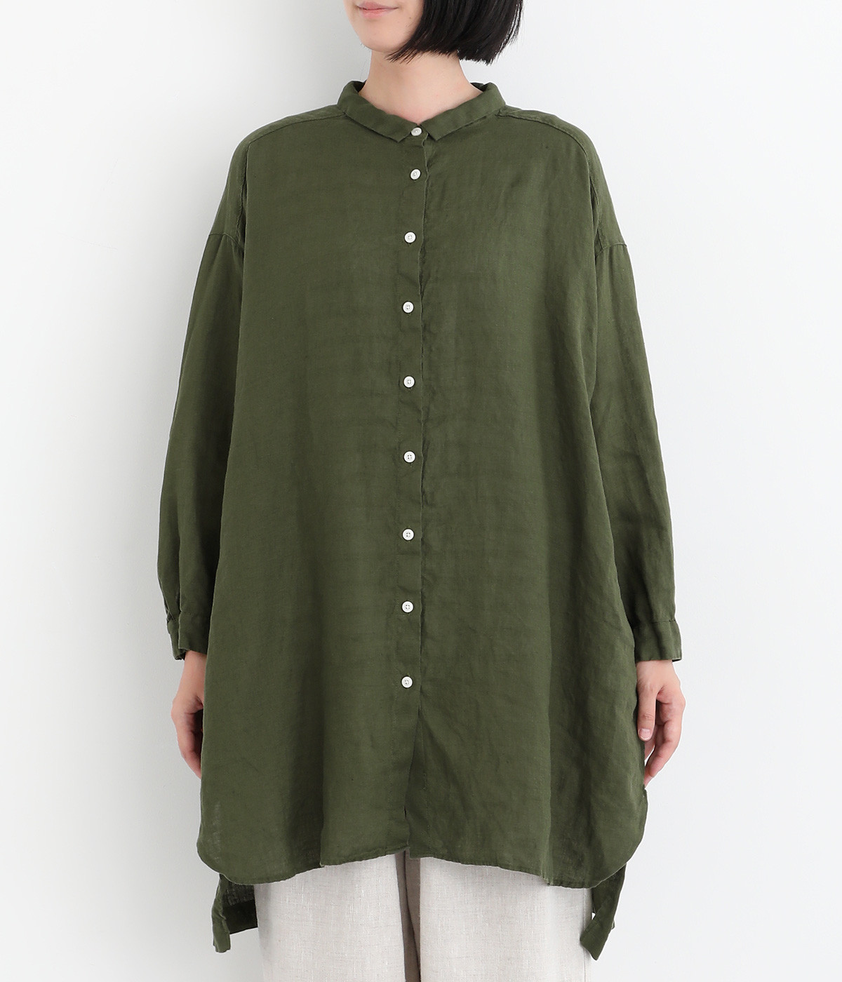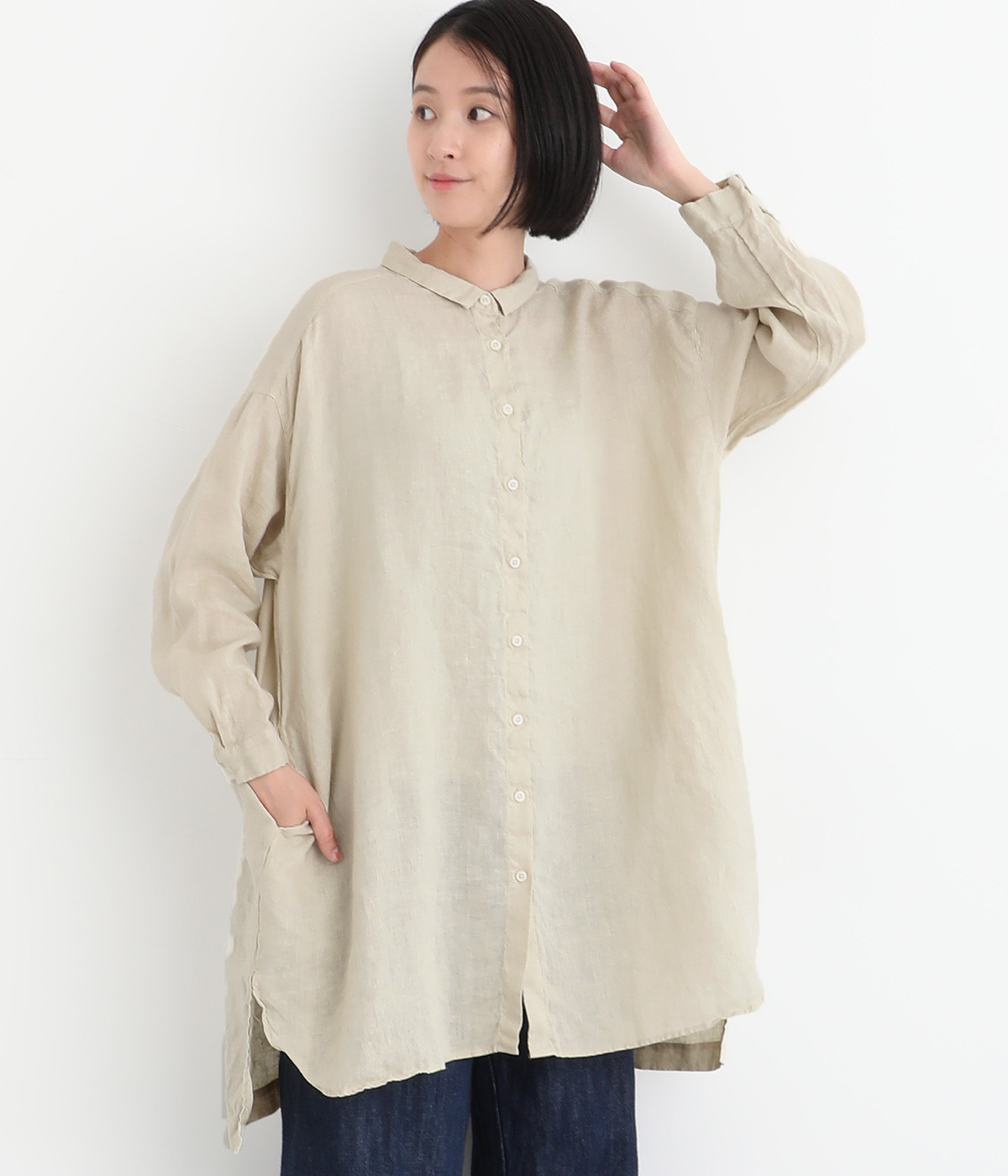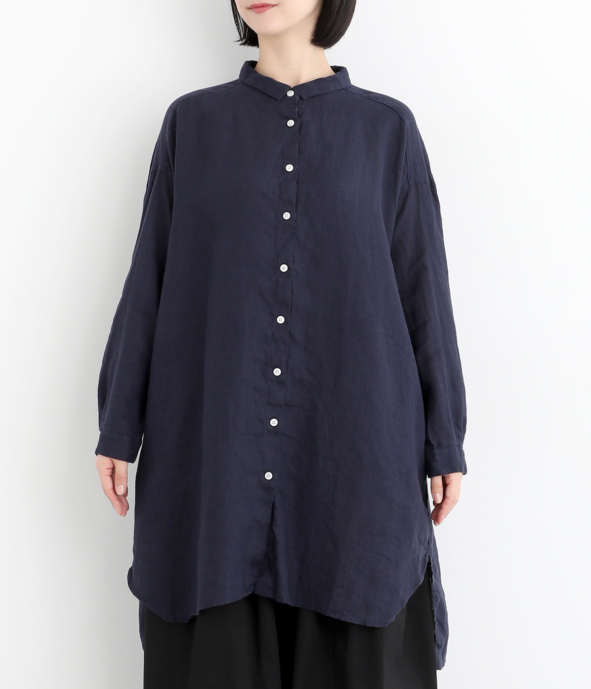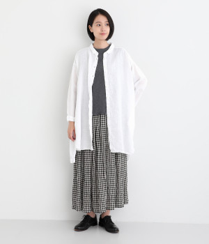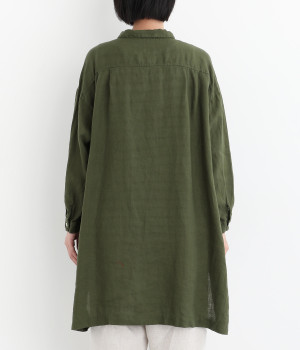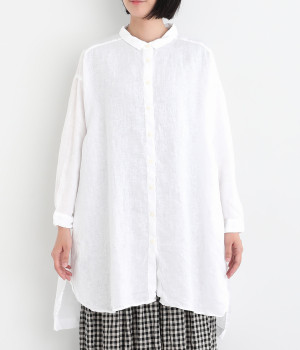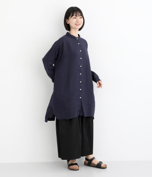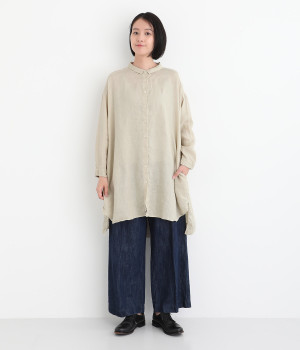 ゆったりとした着心地がうれしい、ワイドシルエットのチュニックシャツです。前後差のある着丈が、こなれた印象を与えてくれます。長袖なので日よけ対策にもおすすめ。ボタンをあけて羽織ってもサマになり、インナー次第で長く着まわすことができます。