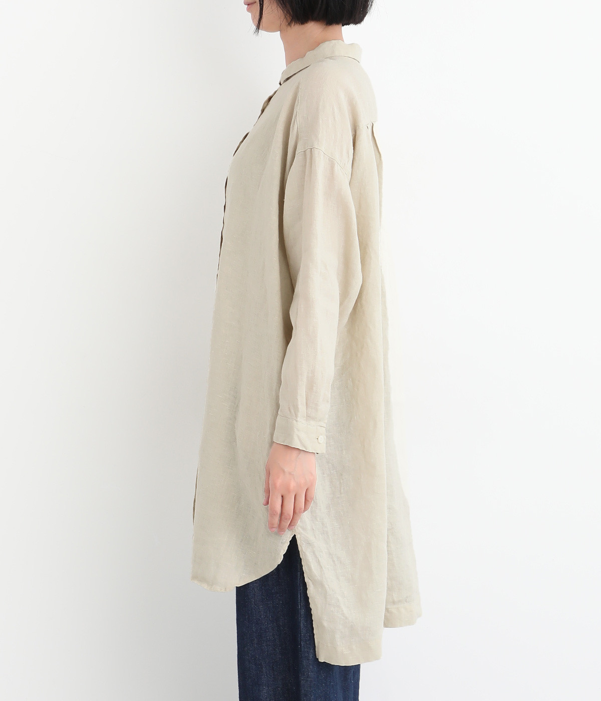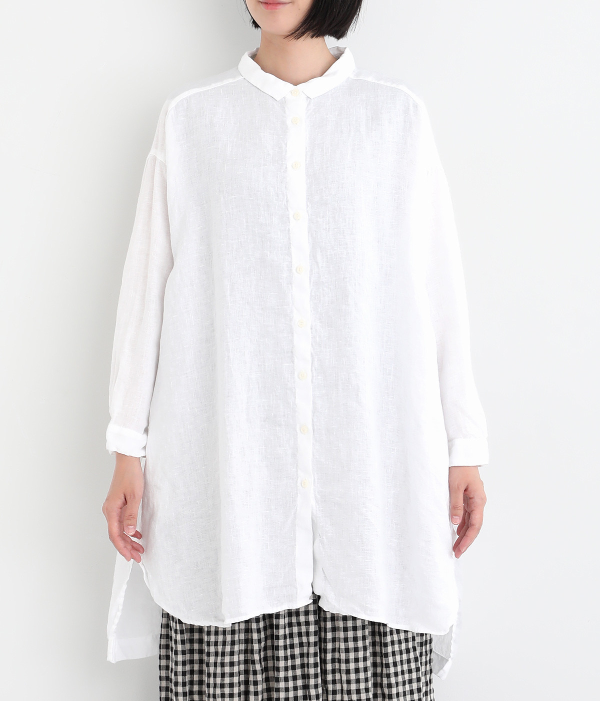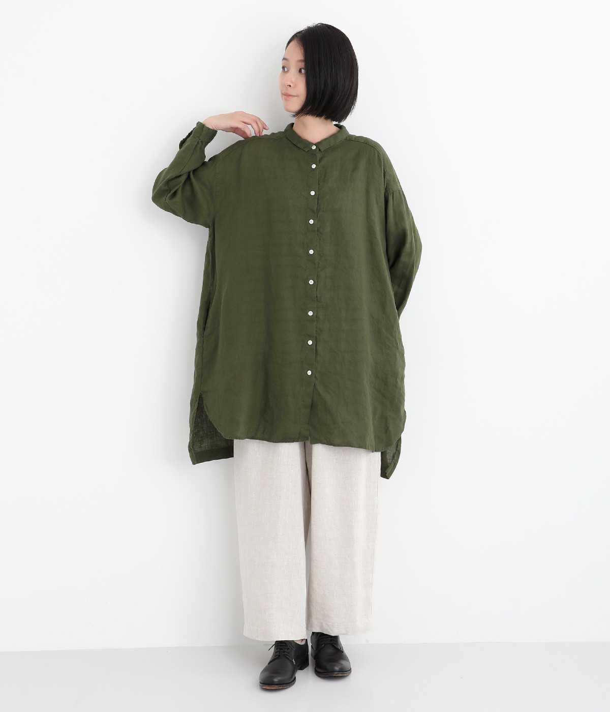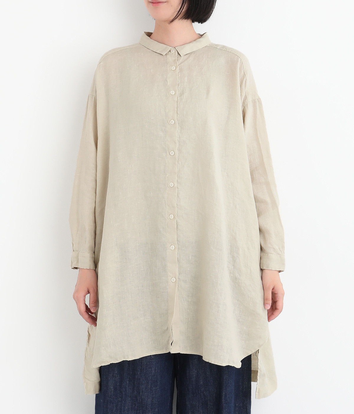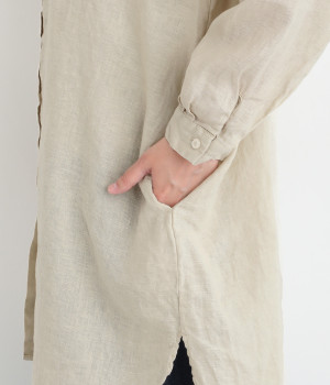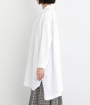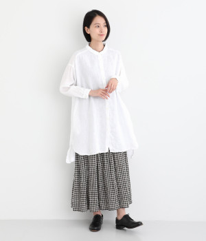 ゆったりとした着心地がうれしい、ワイドシルエットのチュニックシャツです。前後差のある着丈が、こなれた印象を与えてくれます。長袖なので日よけ対策にもおすすめ。ボタンをあけて羽織ってもサマになり、インナー次第で長く着まわすことができます。